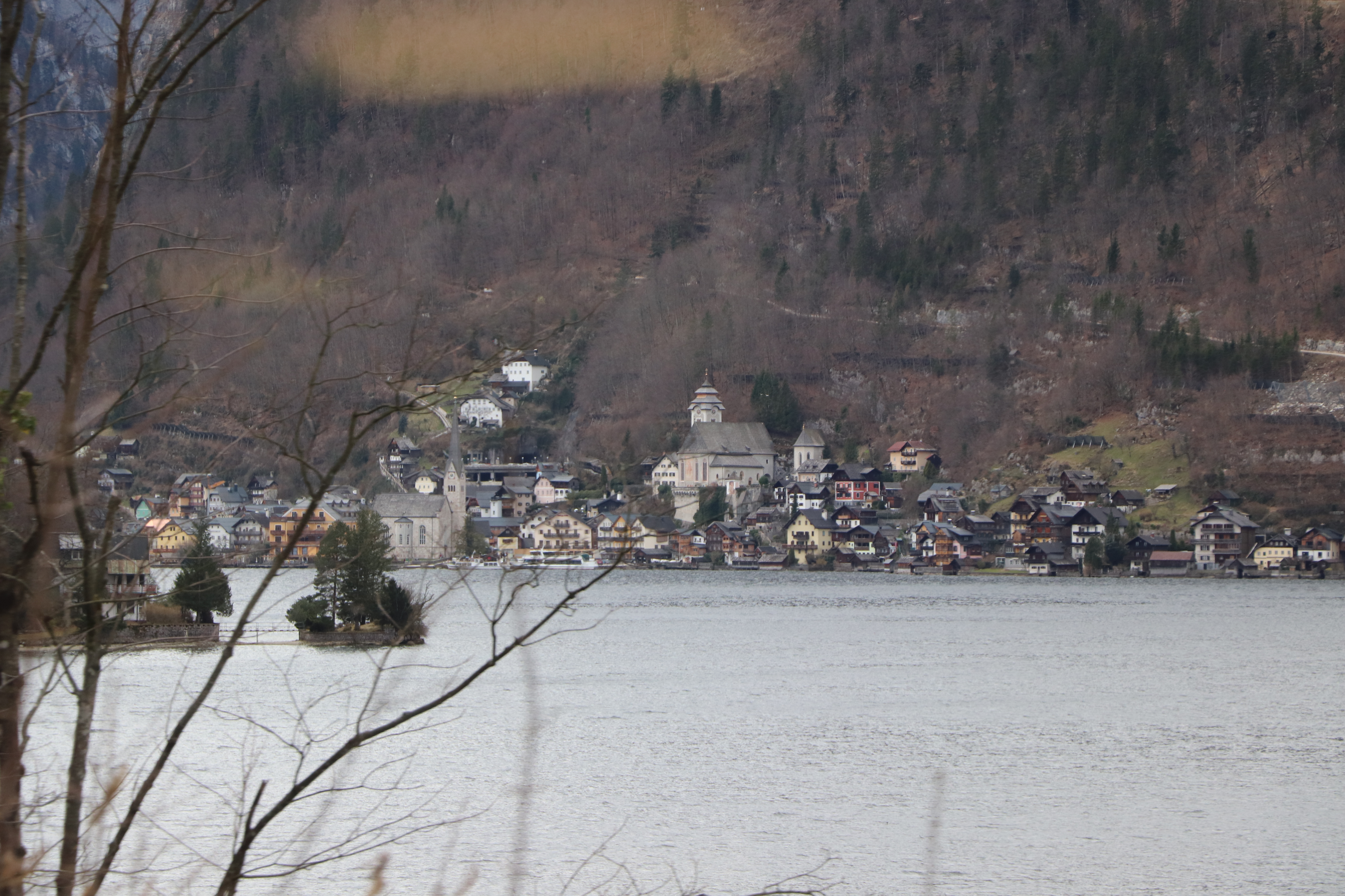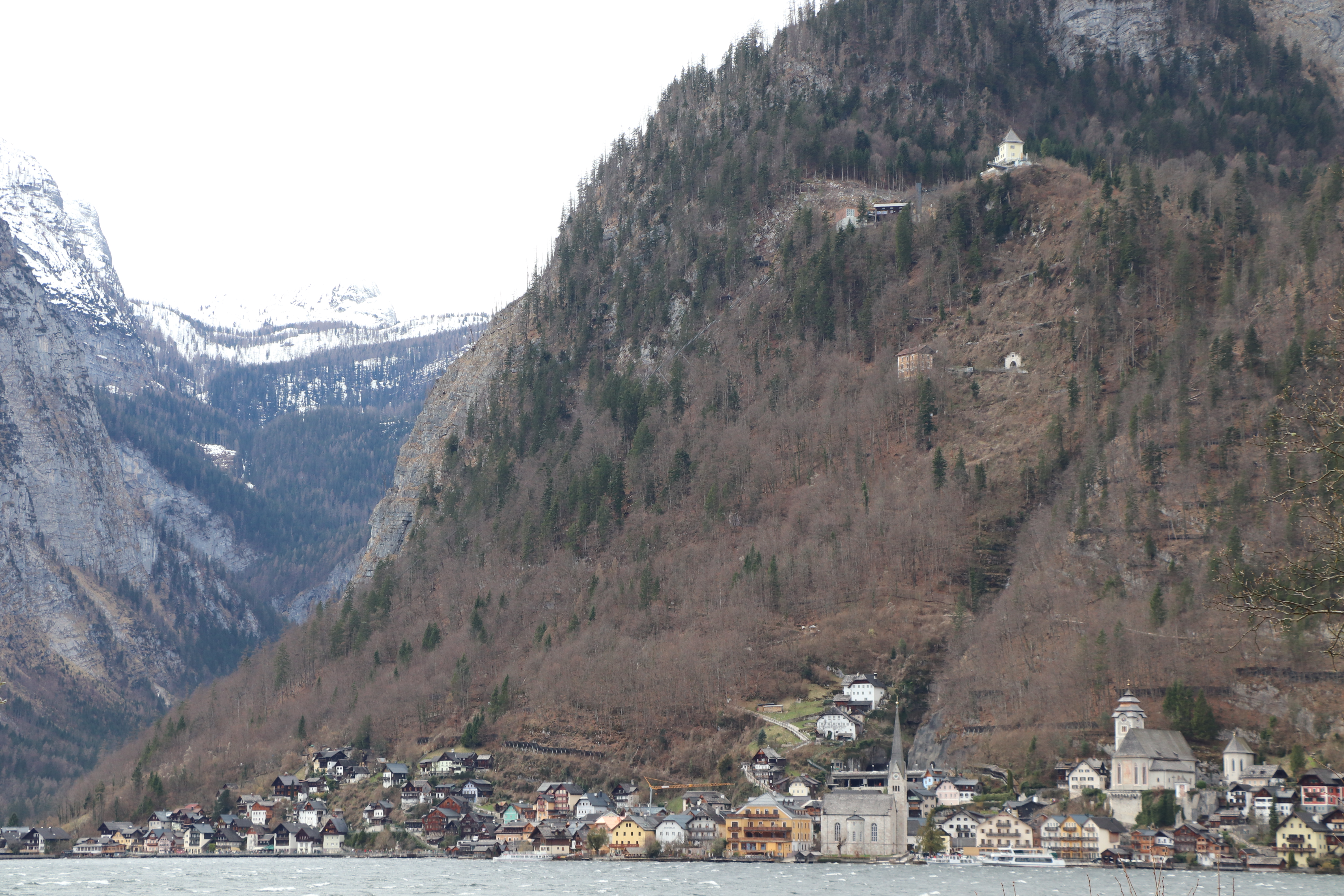 그런데 여기서 문제가 발생했다. 우선 문제라기 보다 "역시" 예상한대로 무척 아름다워 보이는 동네였지만 규모도 작도 이렇게 멀리 와서 봐야하는 정도일까 싶을 정도로 벌써 실망이 조금 들까 말까 했는데 이 놈의 배가 올 생각을 안한다. 가야하는 동네인 건너편의 선착장에 뻔히 배가 정박되어 있는게 보였는데 2시간을 기다렸지만 아무런 방송이나 통지도 없이 배가 운행을 안했다. 나처럼 2시간 정도 기다린 사람들이 상당히 많았다. 대충 추측을 해보자면 할슈타트 마을에 있는 선박장에서는 분명히 오늘 모종의 이유로 (날씨가 너무 안 좋아서 배를 띄우기 힘들다던지 파업을 했다던지 뭐 이런저런 이유로) 배가 운행하지 않는다는 걸 알렸을 것 같은데 건너편에 기차역에 있는 사람들에게는 전달한 방법이 마땅치 않았을거라 생각했다. 이 가치역이 선로가 하나밖에 없고 직원 하나 없는 간이역 수준이라서 충분히 가능한 시나리오이지 않을까 싶었다. 어쨌거나 오지 않는 배를 2시간 기다리다가 포기를 했다. 떠나기 전 멀리서 보이는 마을의 모습 그리고 그래도 아기자기하게 예뻤던 간이 기차역의 모습만 사진에 담아봤다.