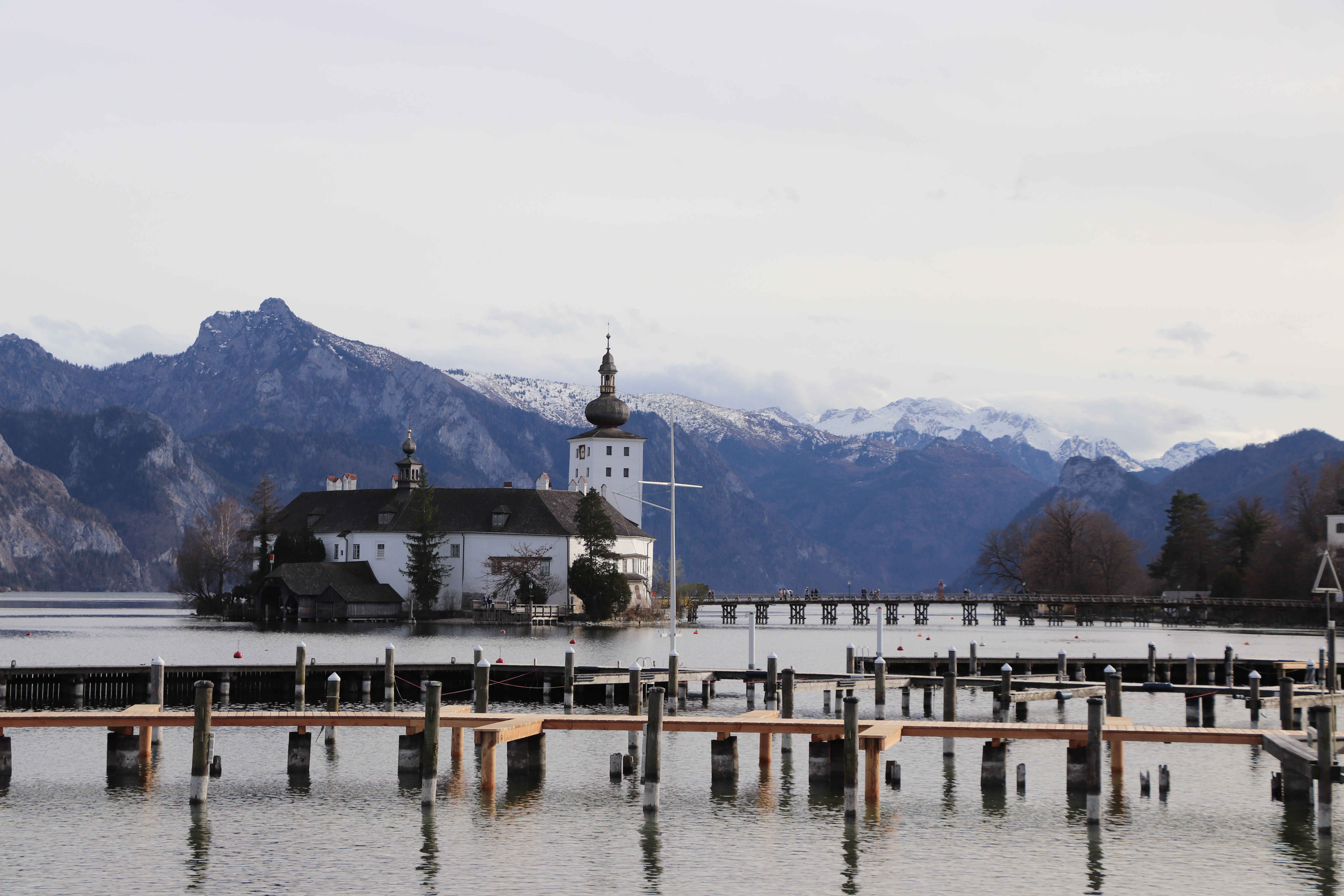 호수변의 산책로가 있었고 아직 걸어서 10여분은 가야하는 거리였는데도 불구하고 여기서 보는 호수에 떠 있는 오르트성과 뒷배경으로 보이는 호수와 설산 - 정말 솔직히 아쉬움은 있었지만 할슈타트가 벌써 잊혀질 정도였다.