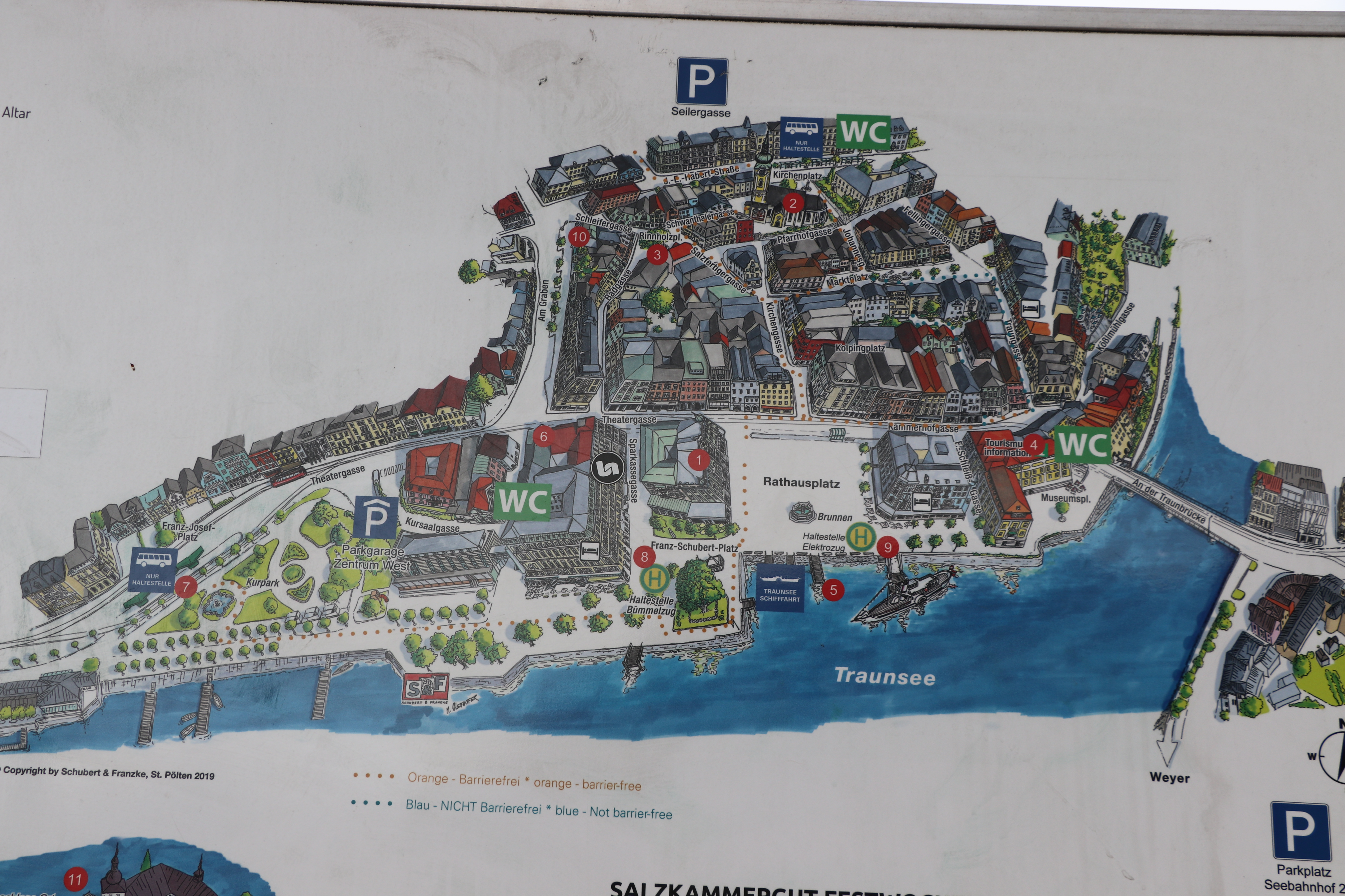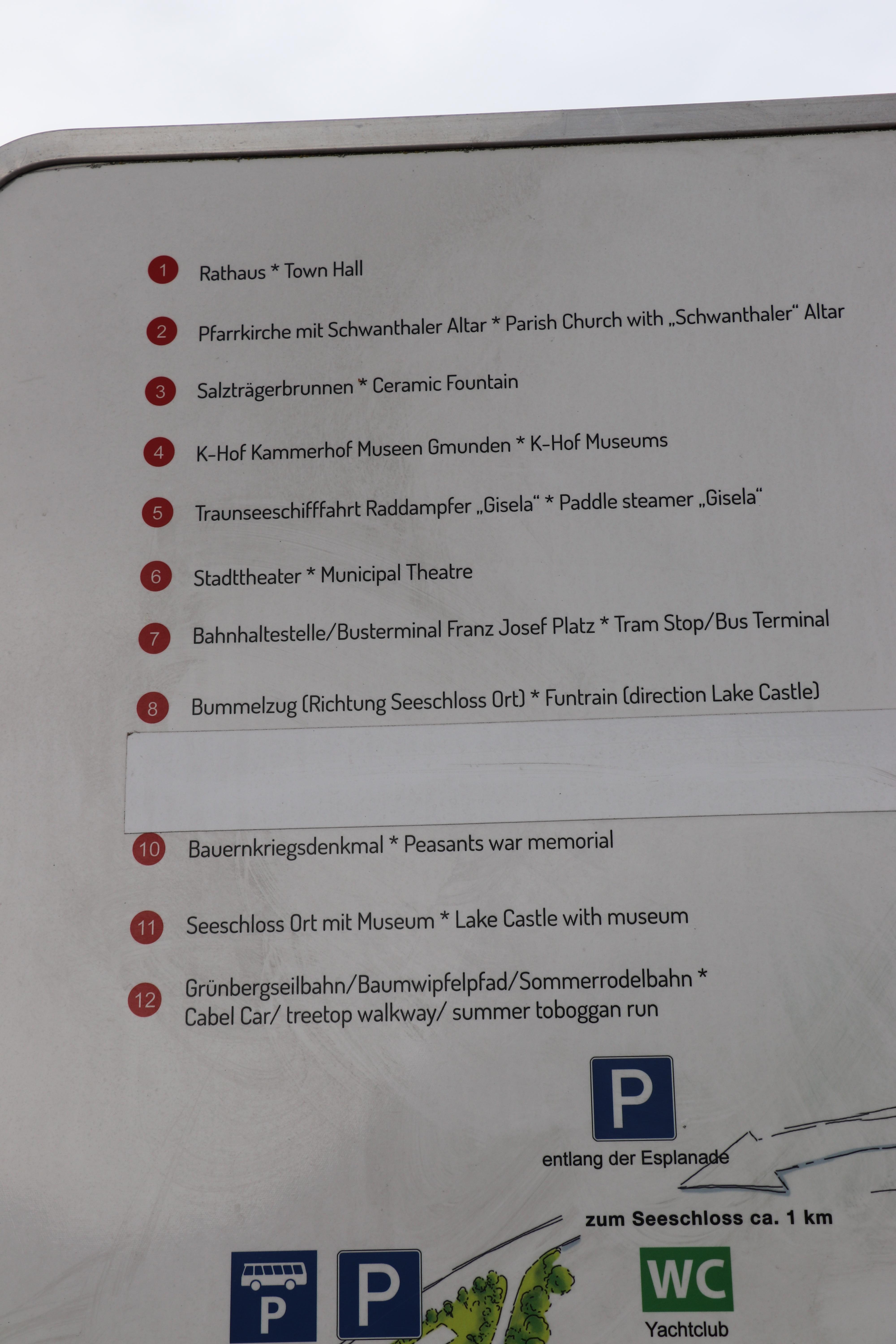 할슈타트 행이 무산되면서 뭘해야 하나 고민을 하다가 오면서 봤던 호수의 모습이 인상적이서 그쪽으로 가보면 어떨까 싶었다. 대충 인터넷으로 찾아보니 오면서 봤던 호수의 이름은 트라운 호수 (Traunsee)였고 할슈타트가 끼고 있는 호수인 할슈타트 호수보다도 훨씬 더 큰 호수였다. 트라운 호수를 접하고 있는 마을 중에 기차를 타고 오면서 봤던 그문덴 (Gmunden)과 에벤제 (Ebensee) 중에 하나를 가볼까 싶었다. 에벤제는 트라운제의 최남단의 마을이고 그문덴은 최북단에 위치한 곳이었다. 조금 더 찾아보니 그문덴에 있는 관광지 중에 하나인 오르트성 (Schloss Ort)의 모습이 눈에 들어와서 망설이지 않고 그문덴으로 향했다. 다행히도 기차표가 그날 같은 행선지라면 아무 기차만 타면 되는 것이어서 더 망설이지 않고 이런 결정을 했던 것 같다. 그리고 시간이 벌써 점심 시간은 한참 지나서 저녁을 먹어야 할 시간이 다가오고 있어서 마을에서 식사를 하고 싶었다.