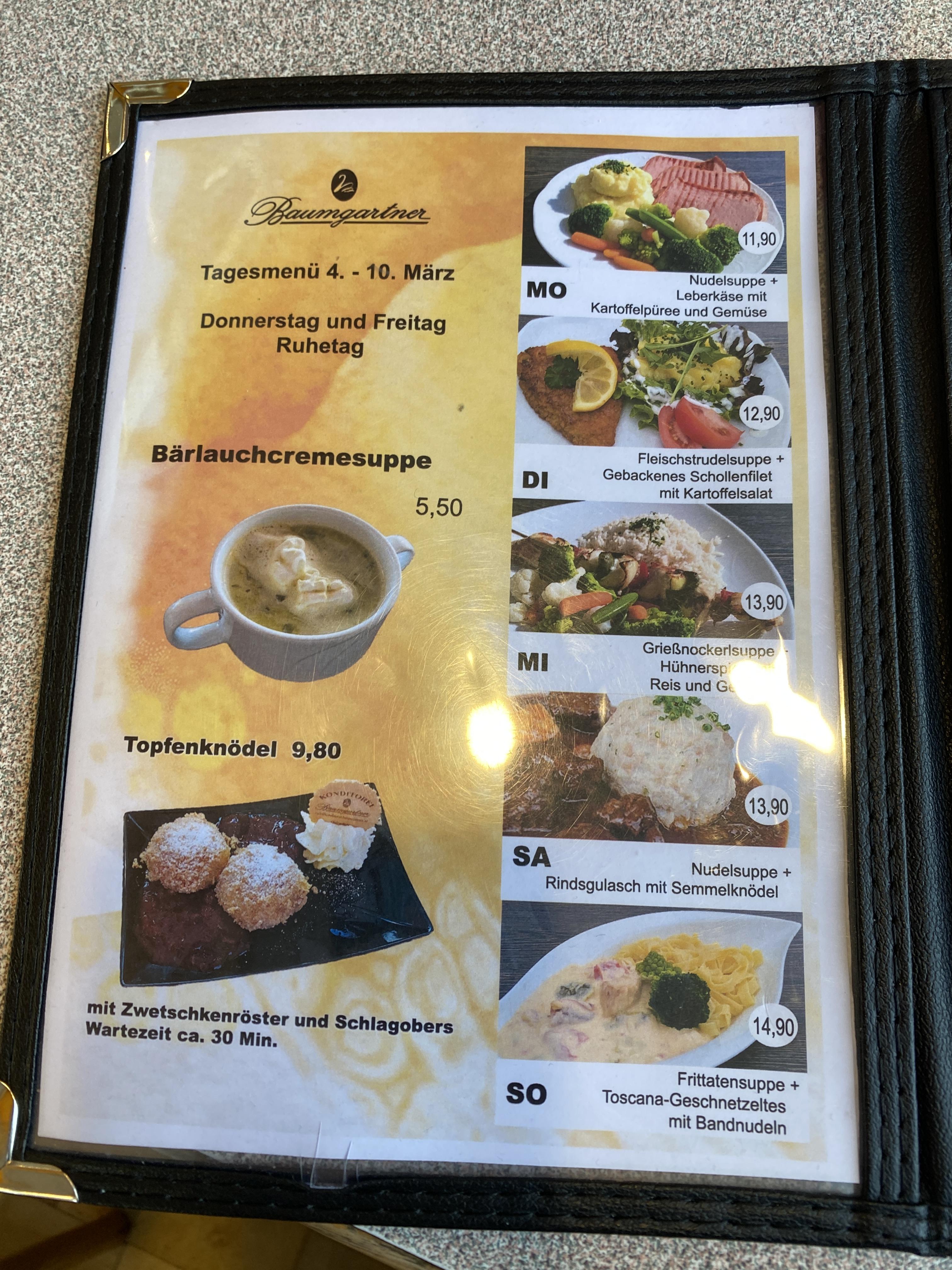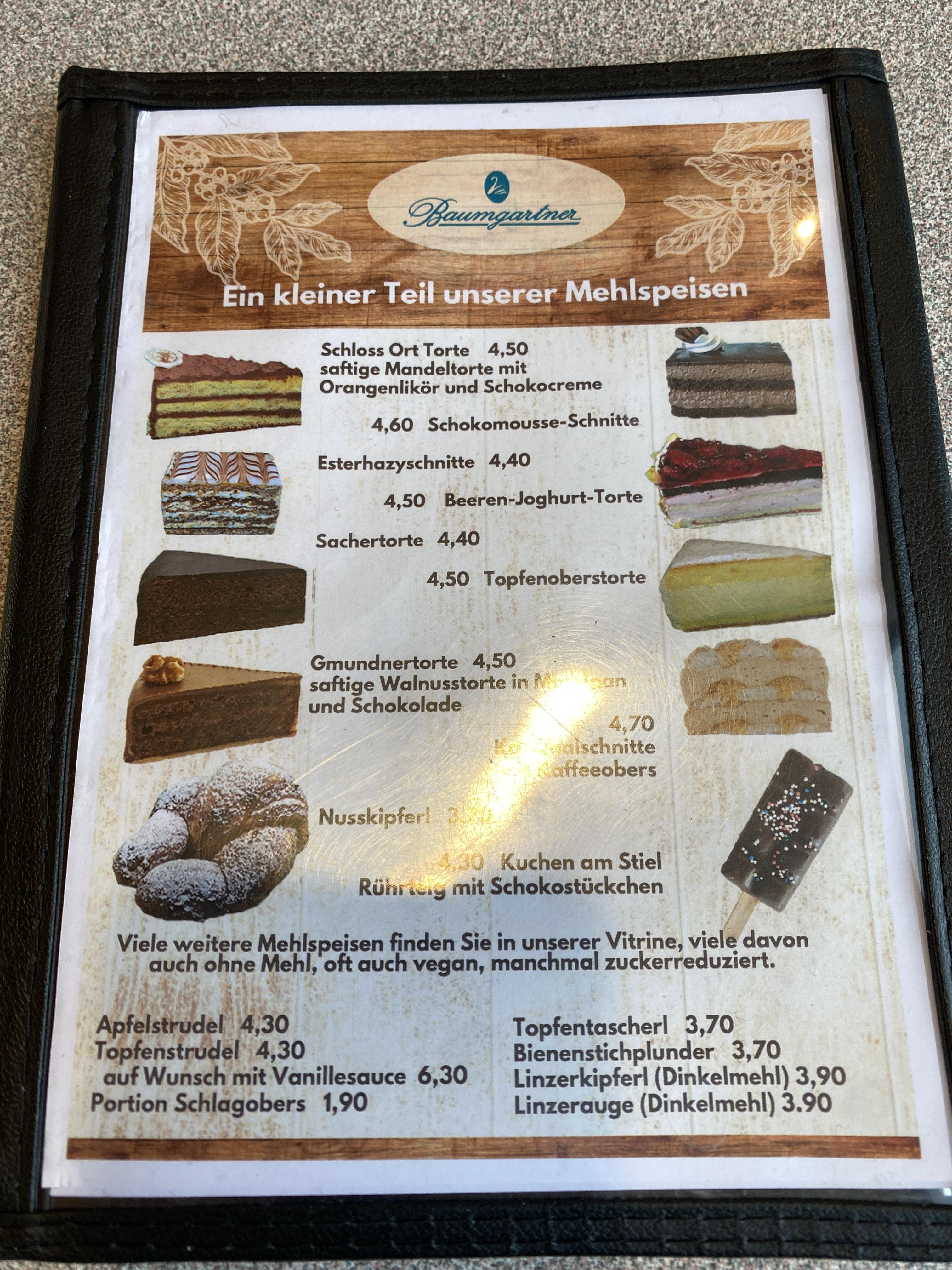 이렇게 오르트성을 보고선 저녁을 먹을 식당을 찾아서 간 곳은 Baumgartner라는 곳이었다. 위치가 바로 호숫가여서 경치도 좋았고 음식은 특별히 많은 종류는 없었지만 관광지 물가를 고려해서는 많이 비싸지도 않았다.