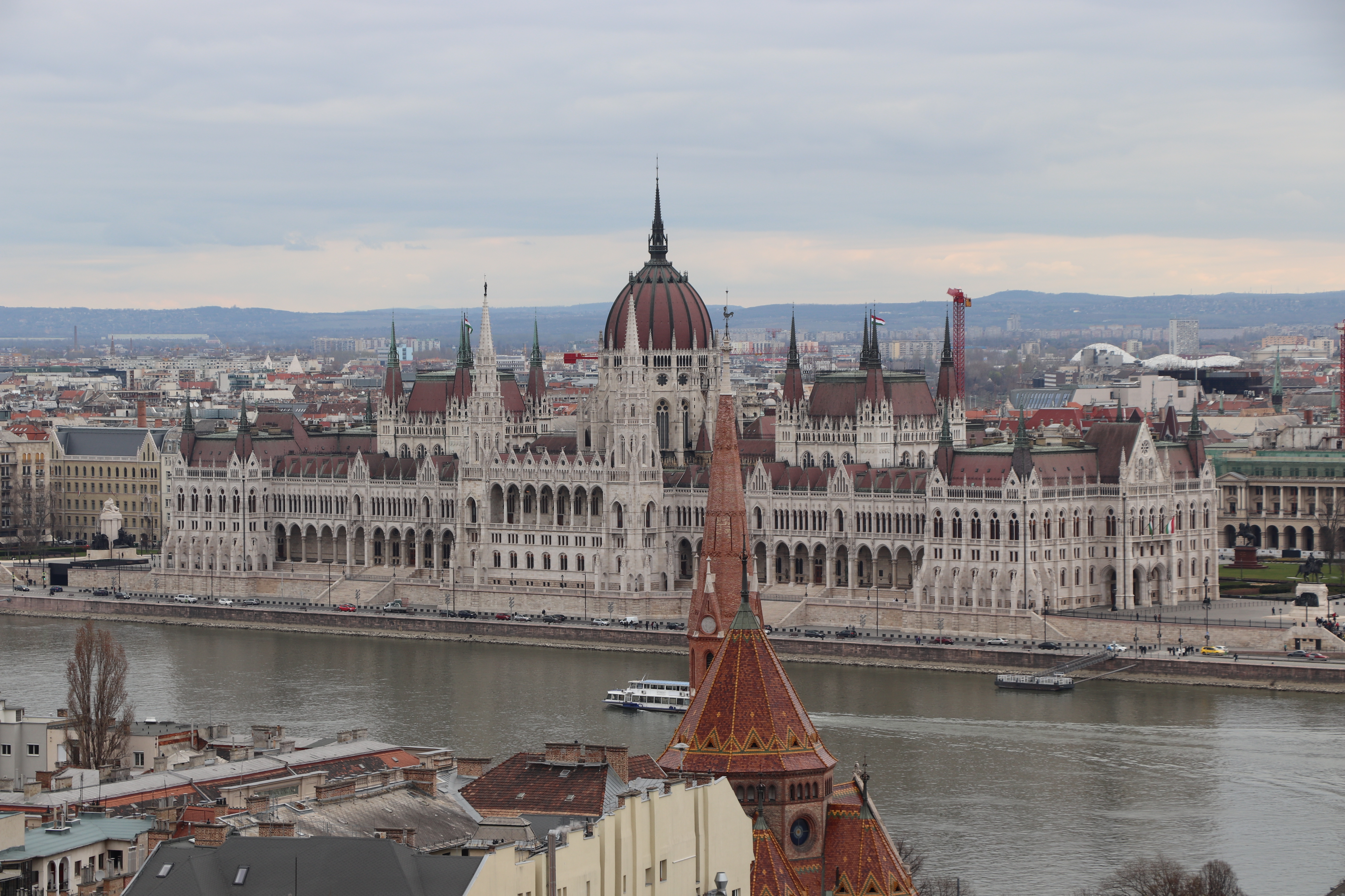 그런데 여기서 약간의 문제가 생겼다. 성당 안에서 생각보다 시간을 많이 보내게 되어서 유람선 출발까지 시간이 별로 남지 않은 것이었다. 재빠르게 걸음을 옮겨 전차를 타고 예약한 유람선이 출발하는 Dock 10을 향해서 갔다. 다행히도 출발시간 10분 전 정도까지 도착해서 무사히 승선에 성공하긴 했다. 야경이 아니기 때문에 유람선에 손님이 많지 않아서 여유롭고 너무 좋았다. 낮이어도 유람선에서 볼 수 있는 경치가 너무나 아름다워서 좋았다. 부다페스트에 다녀온 사람들의 사진에서 가장 많이 볼 수 있는게 유람선에서 바라본 불빛이 화창한 국회의사당 (Országház) 건물인데 낮에 봐도 충분히 화려한 모습이다.