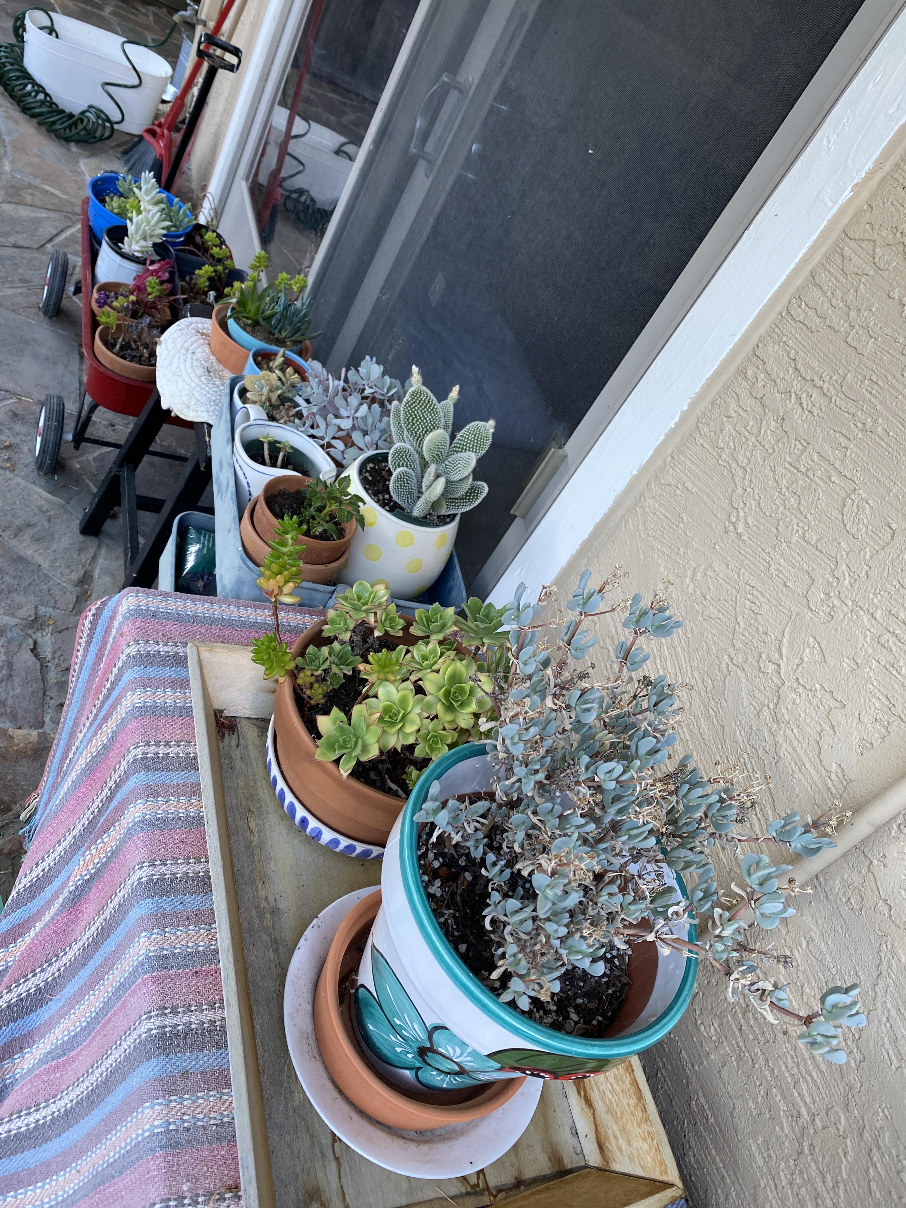 그래서 집에서는 밖에 나둬서 햇볕도 잘 받게 하고 물은 최대한 적게 (1-2주에 한 번 정도) 그리고 잔디에 뿌리는 물을 직간접적으로 맞게 해서 어떻게 하면 최대한 손이 덜 가고 멀쩡하게 키울 수 있는지 이제 한 3년 정도 실험 중이다. 아직까지는 대부분의 선인장과 다육식물들이 잘 버텨주고 있다.