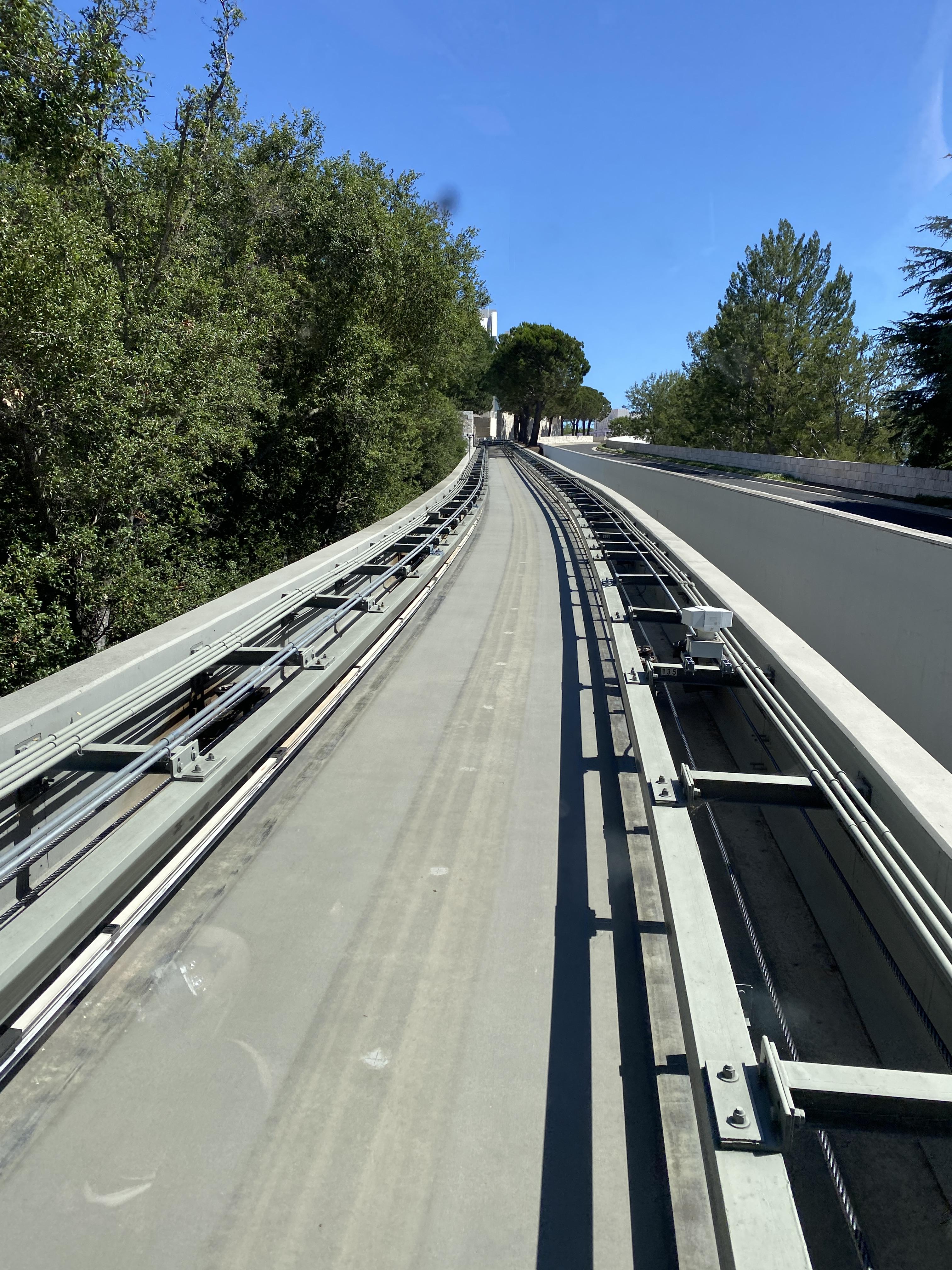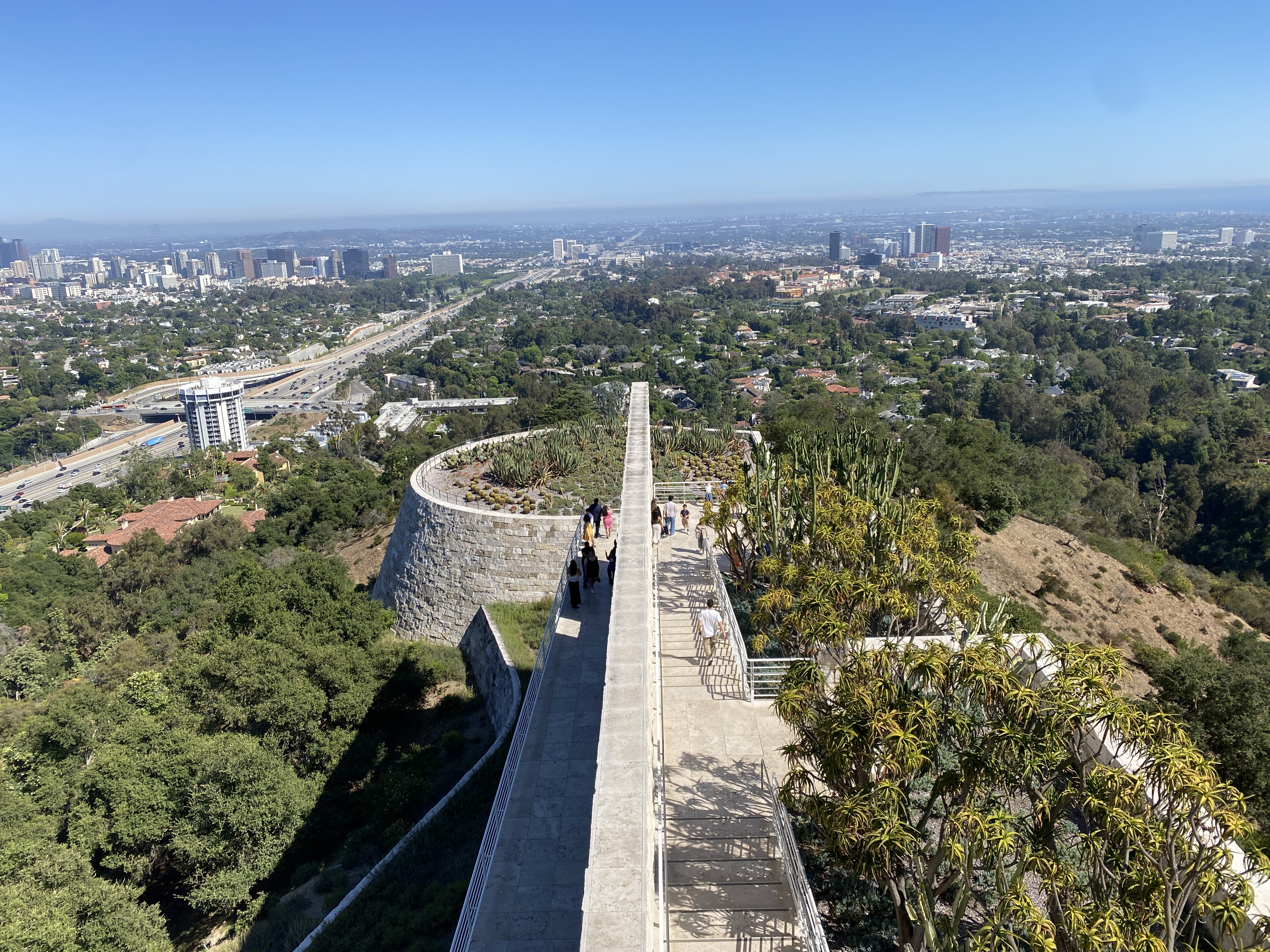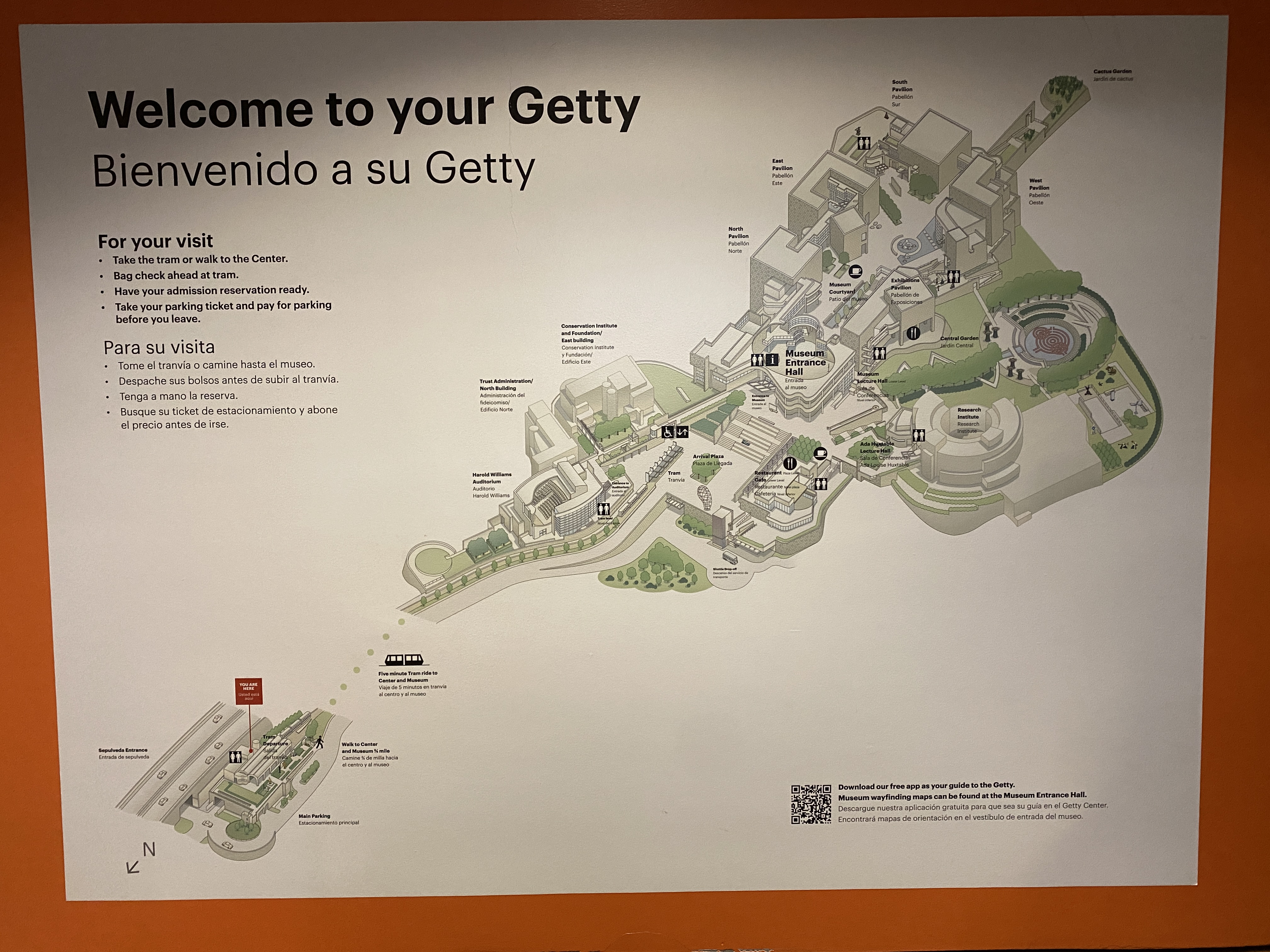 게티센터는 아주 오래 전에 (몇 년인지 기억은 잘 안난다) 두세번 온적이 있는 곳이다. 미술에 조금 더 취미가 생긴지가 오히려 요즘이라 그때는 그림들을 대충 본 기억이 있어서 이번에 LA에 온 김에 게티센터를 가보기로 했다. 무료 입장이지만 예약을 하는 게 좋다고 해서 예약을 하고 왔다. 주차장에 차를 대고 트램을 이용해서 올라가는 방식이다. 게티센터는 유명건축가인 리처드 마이어 (Richard Meier)가 디자인했다고 한다. 마이어는 흰색과 네모난 모양을 미친듯이 사용하는 건축가라서 게티센터의 외양의 이미지가 딱 그렇다.