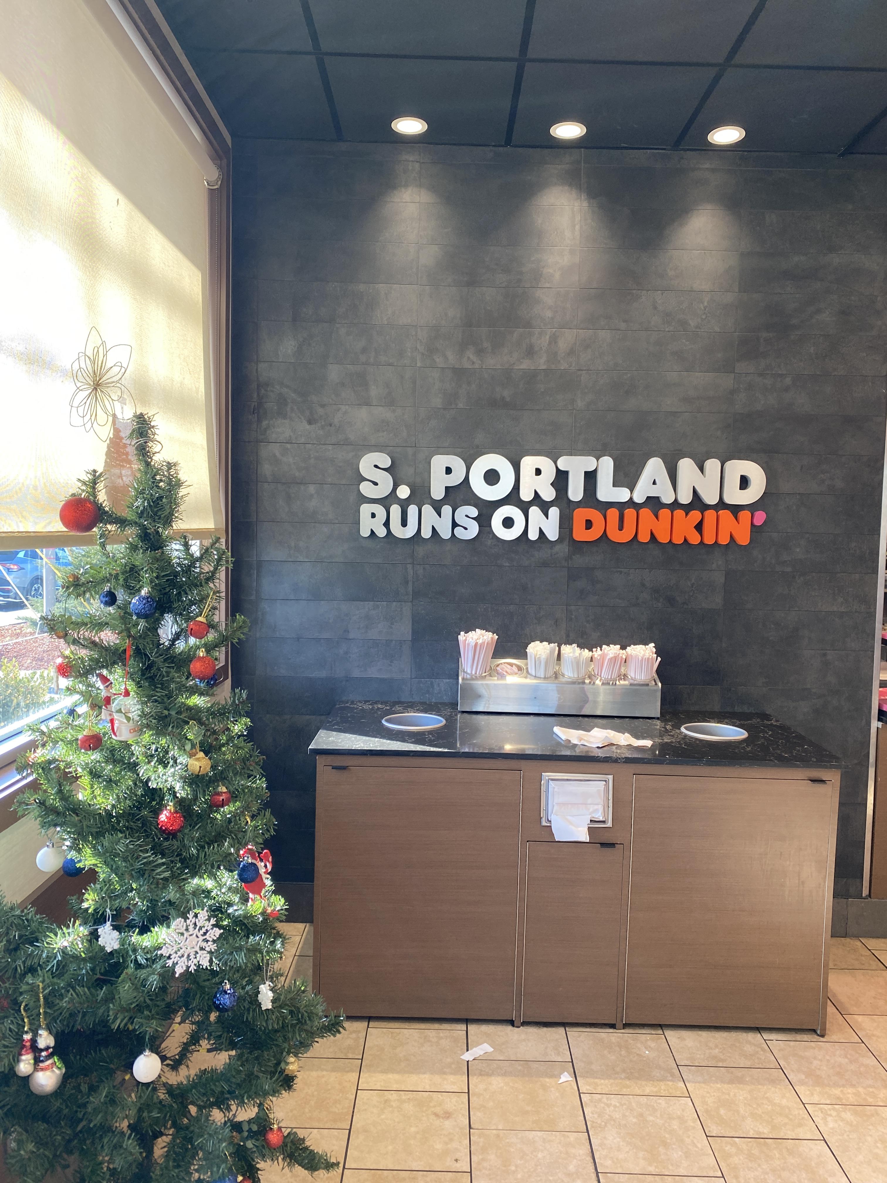 시간이 시간인지라 구경가는거보다 먼저 브런치를 해야 해서 보스턴 지역에 정말 무수히 많이 있는 던킨 (Dunkin')이 보이길래 고민도 하지 않고 들어갔다. 재미있는 건 Boston runs on Dunkin'이라는 캐치프레이즈를 따라한 S. Portland runs on Dunkin'이 붙어있어서 재미있었다. 개인적으로 던킨 (이제는 도너츠가 아니라 다른 음식, 커피 등을 더 주력으로 하는 듯해서 도너츠라는 이름이 빠졌다)의 커피도 도너츠도 별로 좋아하진 않지만 어쨌거나 브런치 정도로는 딱 적당한 듯 하다.