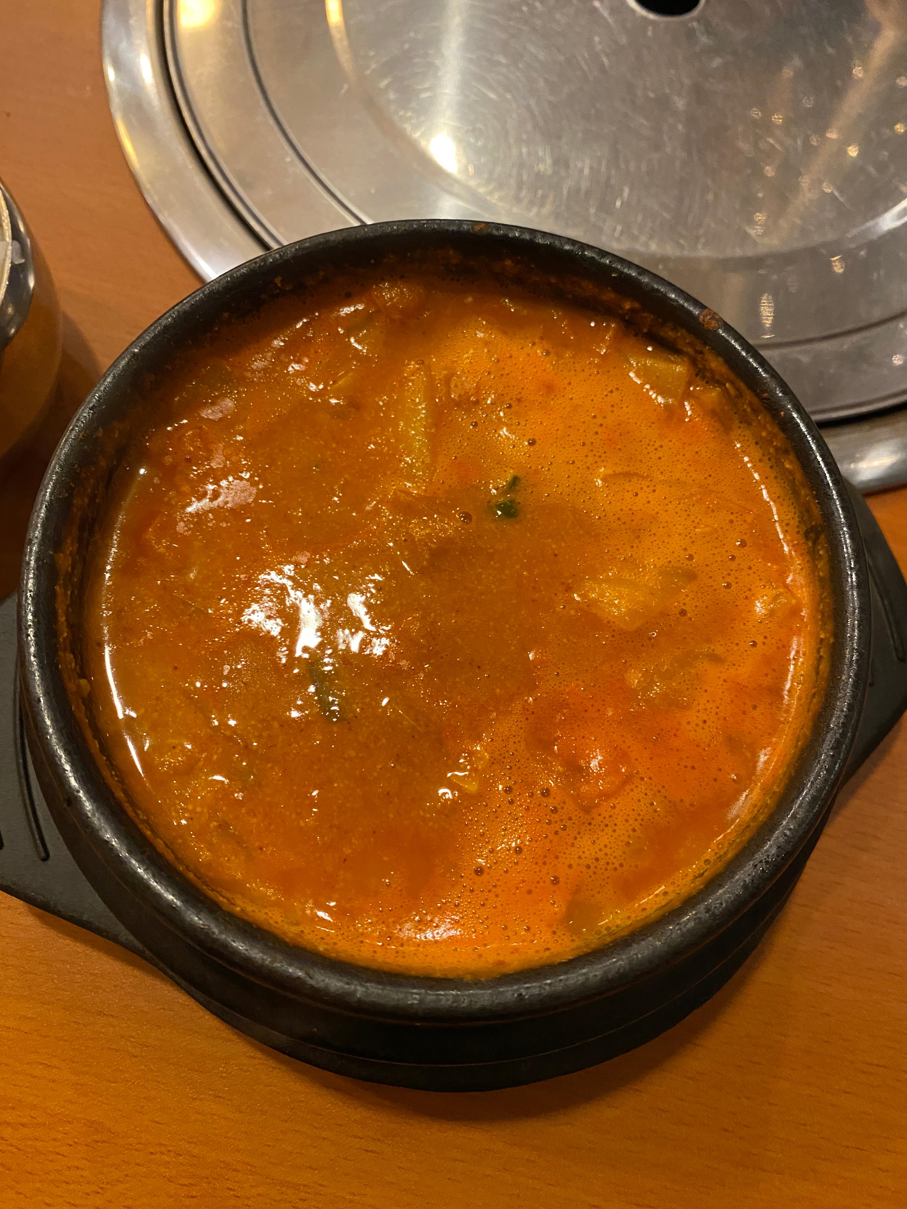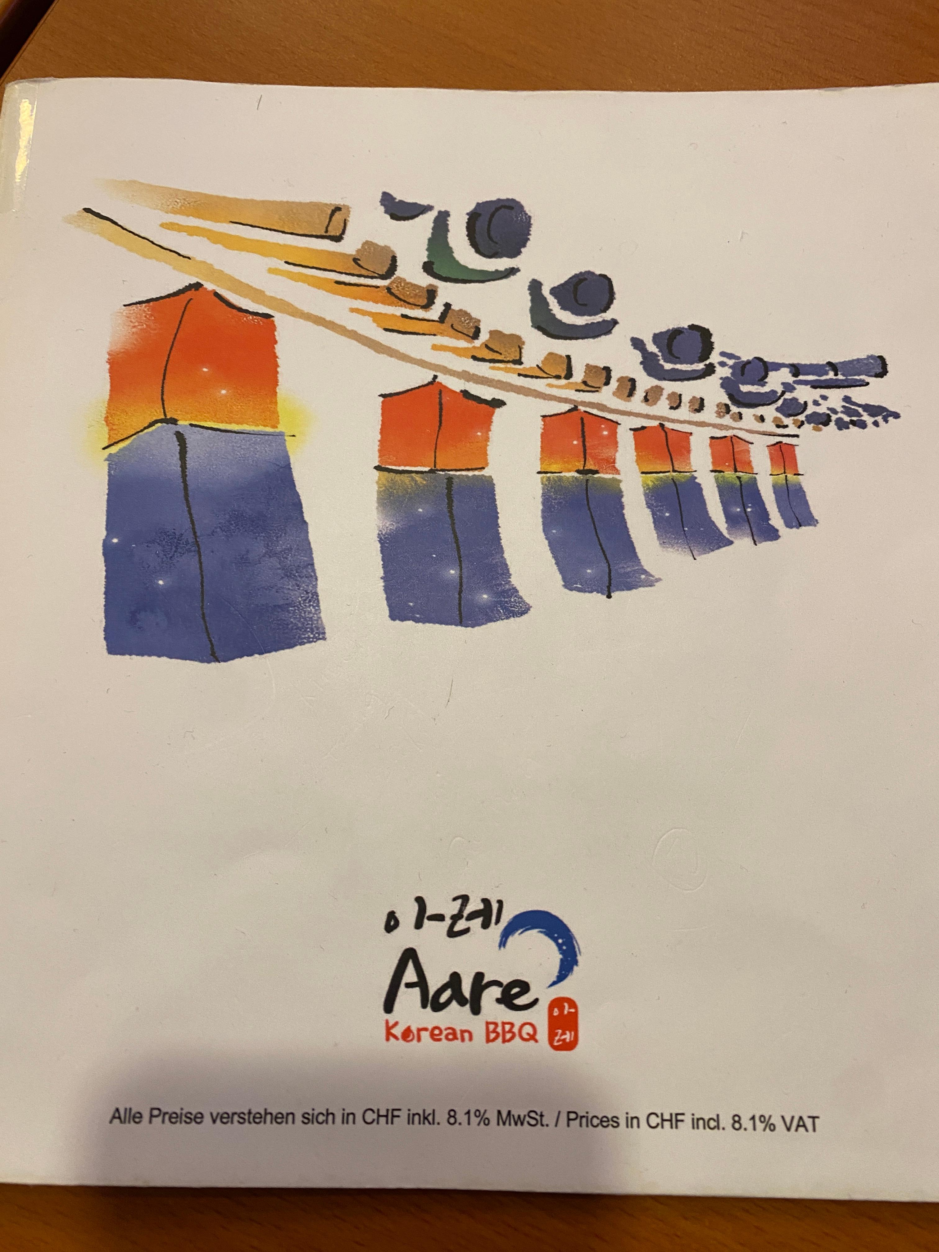 어쨌거나 기차는 자주 오지 않아서 한참을 기다려서 기차로 그 다음역으로 이동해서 주차장까지 갔다. 주차장에서 이제 숙소가 있는 베른까지 갈 생각을 하는데 저녁시간이 다 되어서 인터라켄에 있는 한국식당을 한번 가보기로 했다. 워낙에 리뷰가 좋은 한식당이라 괜찮을거라고 생각했다. 식당에 도착해서 무료주차도 가능하다고 해서 지정된 자리에 주차를 하고선 들어갔다. "아레" (Aare)라는 이름의 한식당인데 나중에 보니 베른을 관통하는 강의 이름도 아레였다. 비지찌개가 있길래 주문해서 맛있게 먹었다. 콩비지의 양은 얼마 없었고 내용물은 좀 부실한 편인데다가 반찬도 그냥 그랬는데, 솔직히 음식은 맛이 있는 편이다. 솔직히 물가를 고려하면 꽤 만족할 만한 식사를 했다. 여기서도 창문밖으로 멀리 융프라우가 보인다.