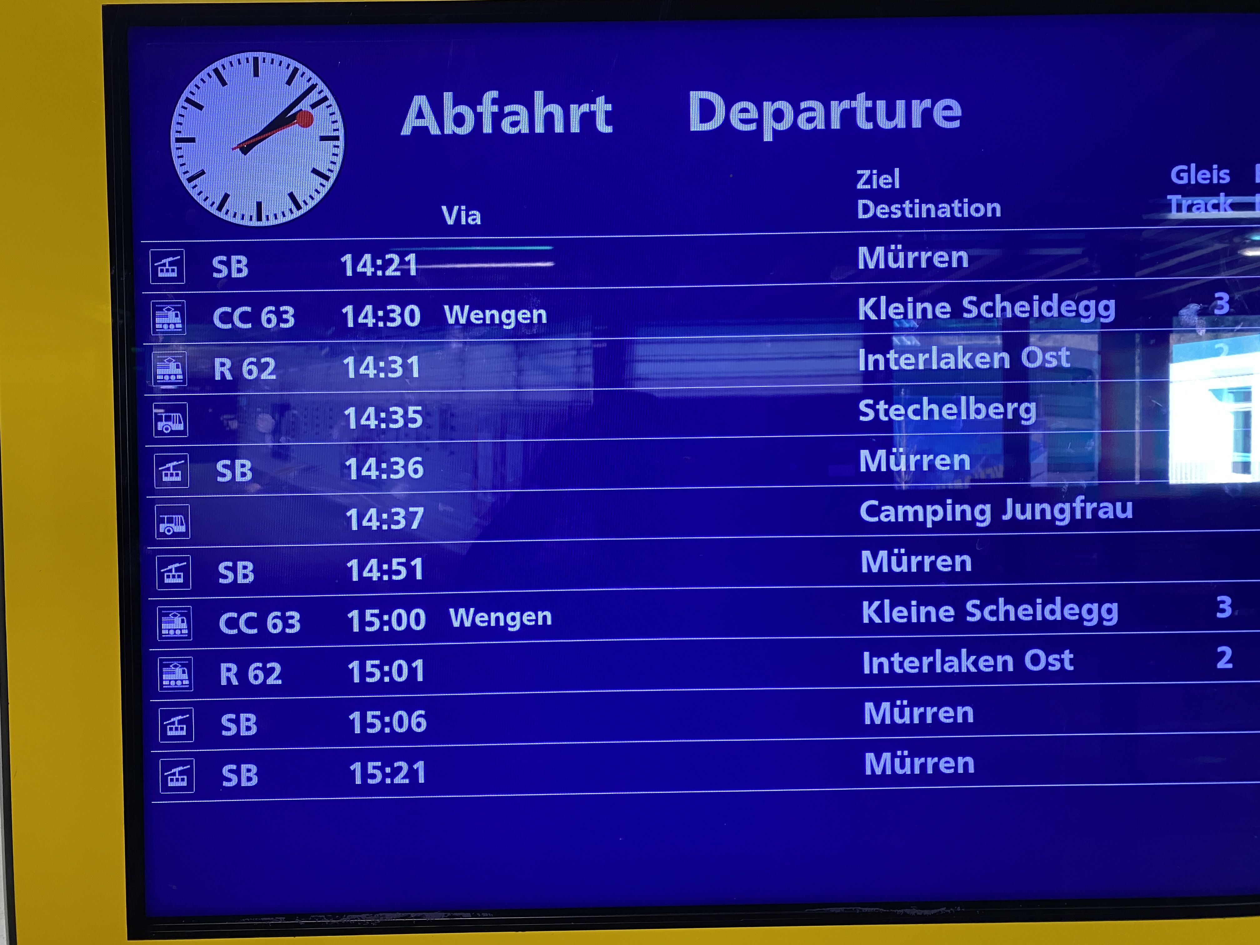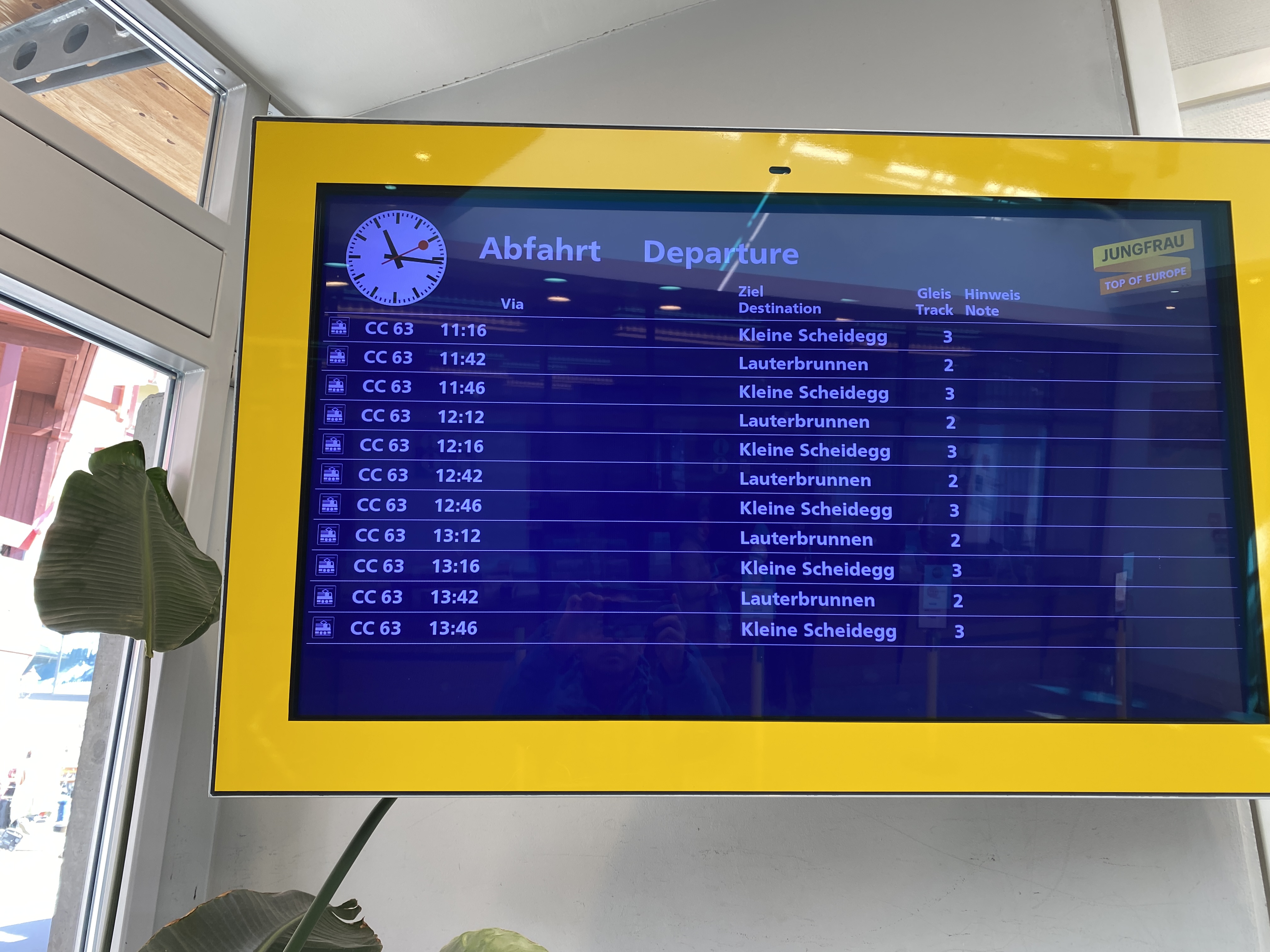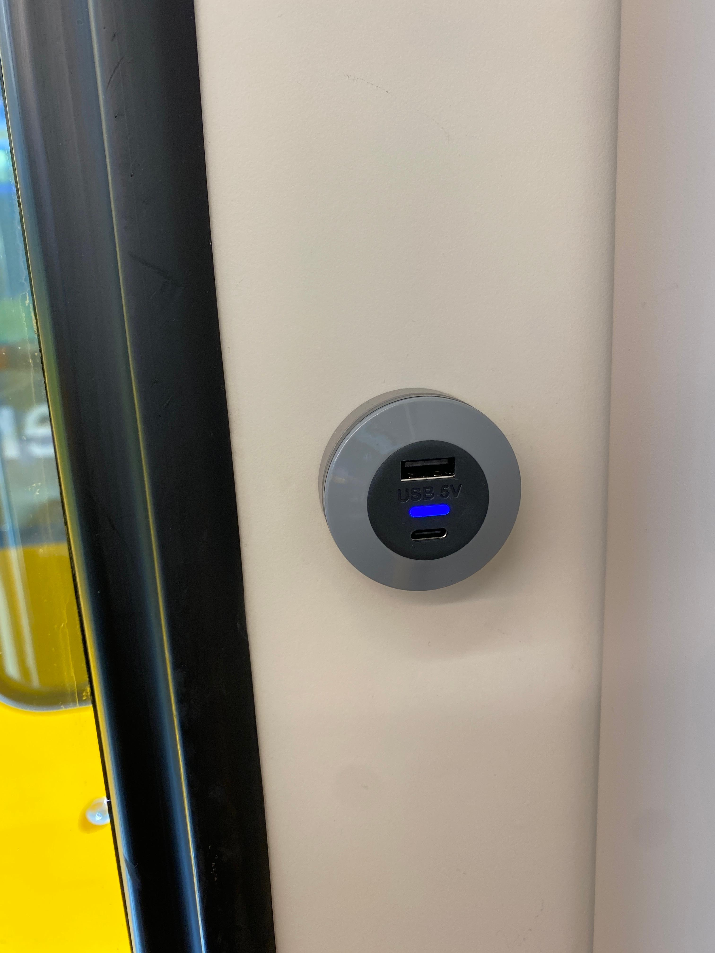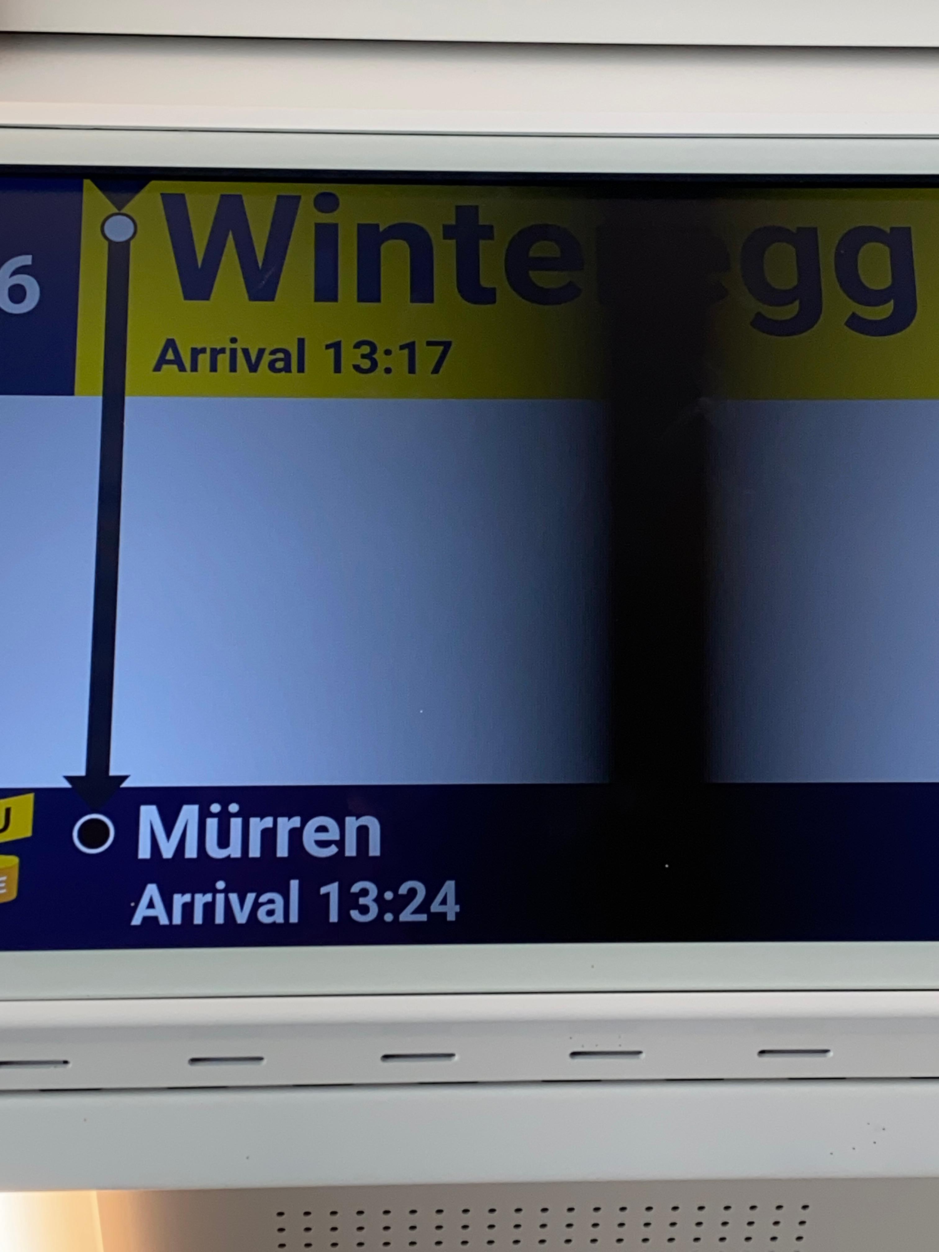 그뤼츠칼프에서 뮈렌으로 가는 기차는 다른 산악열차와 마찬가지이지만 뮈렌까지 오래 걸리지 않아서 좋았다. 중간 기착지인 빈터에그 (Winteregg)를 지나면 바로 뮈렌에 도착한다. 이번 기차에서는 같은 기차여도 눈여겨 보지 않아서 몰랐던 게 보였다. USB충전하는 곳에 USB A와 C가 하나씩 있는게 확실히 만들어진지 얼마 안 된 기차라고 알게 되었다.