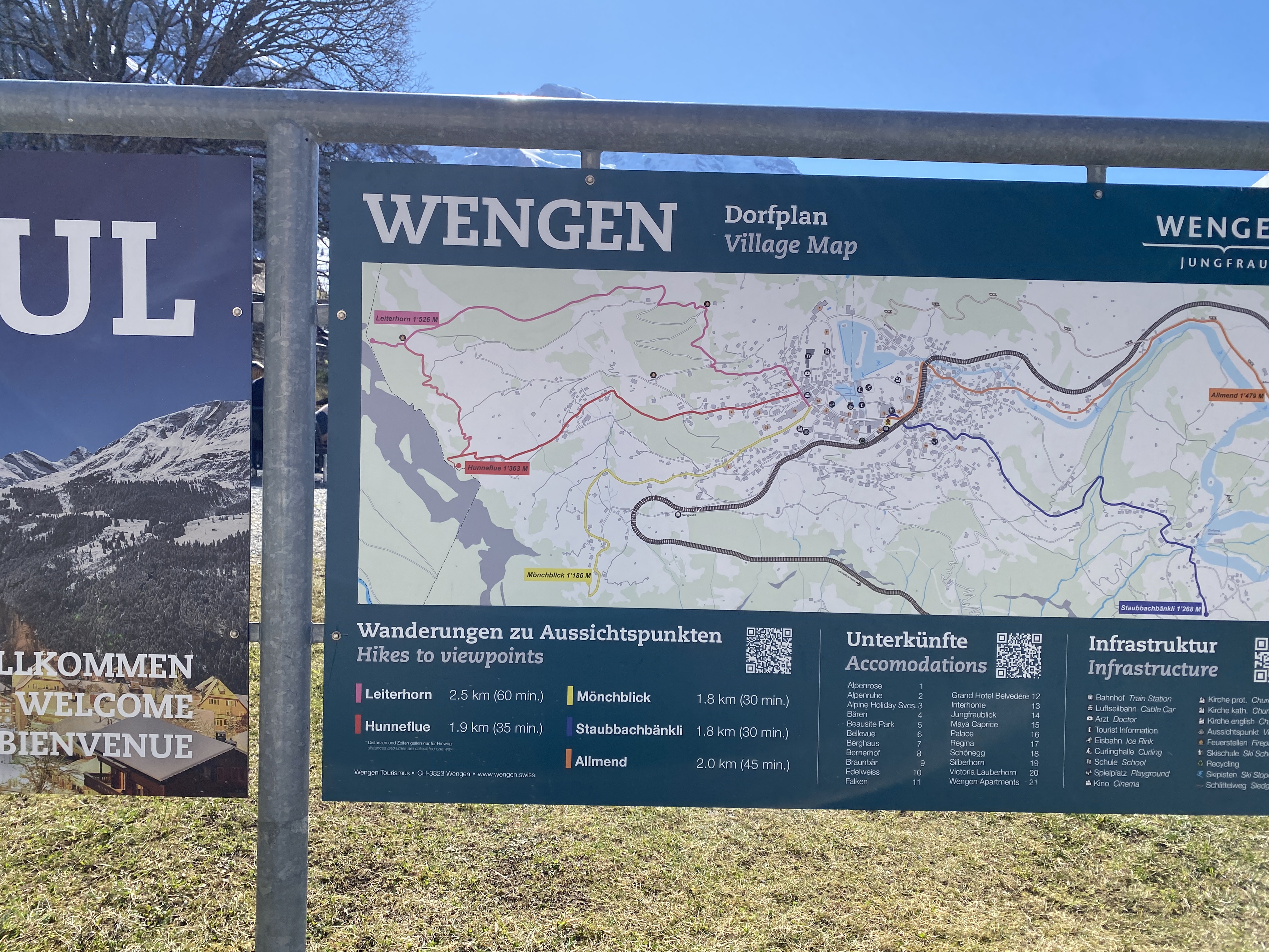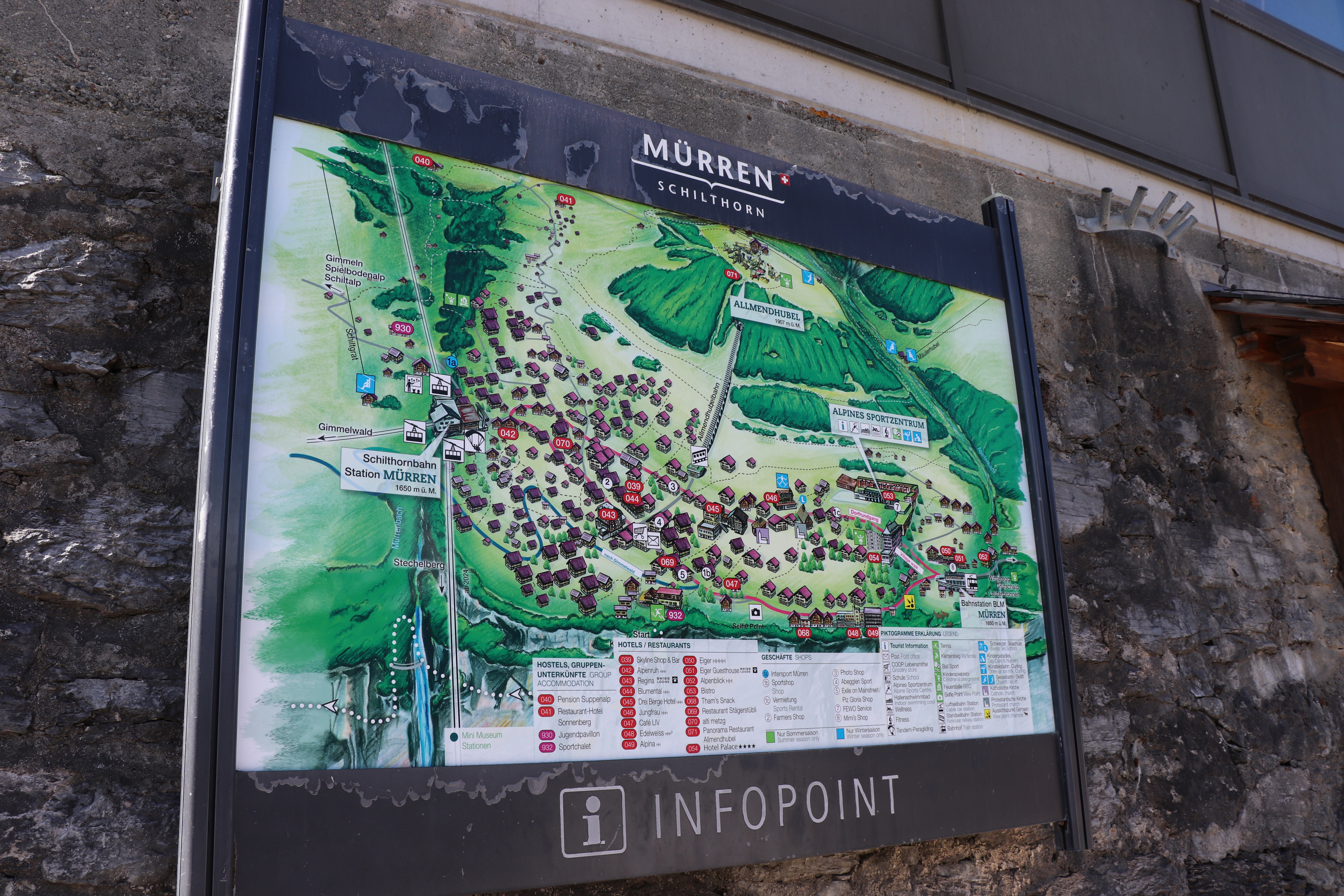뮈렌 역에서 기차를 내리면 좀 당황할 수가 있다. 여기가 워낙에 작은 마을인게 가장 당황스럽다. 하지만 그런 당황스러움은 금방 잊혀지는게 여기에서 볼 수 있는 경치가 독특하다. 반대쪽인 피르스트 (First)에서 보는 것과 완전히 반대로 여기서는 융프라우가 가장 가깝게 보이는 곳 중에 하나다.