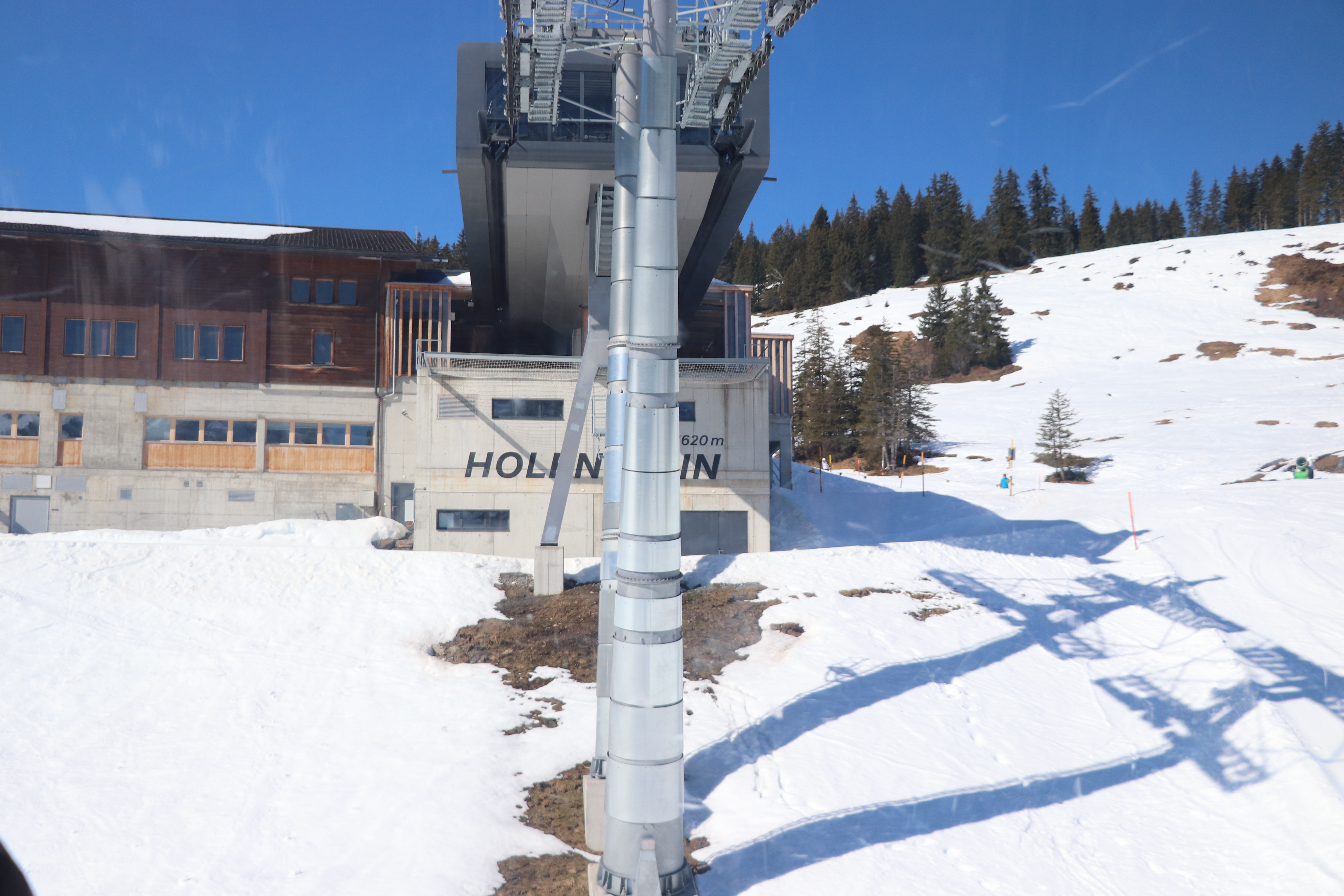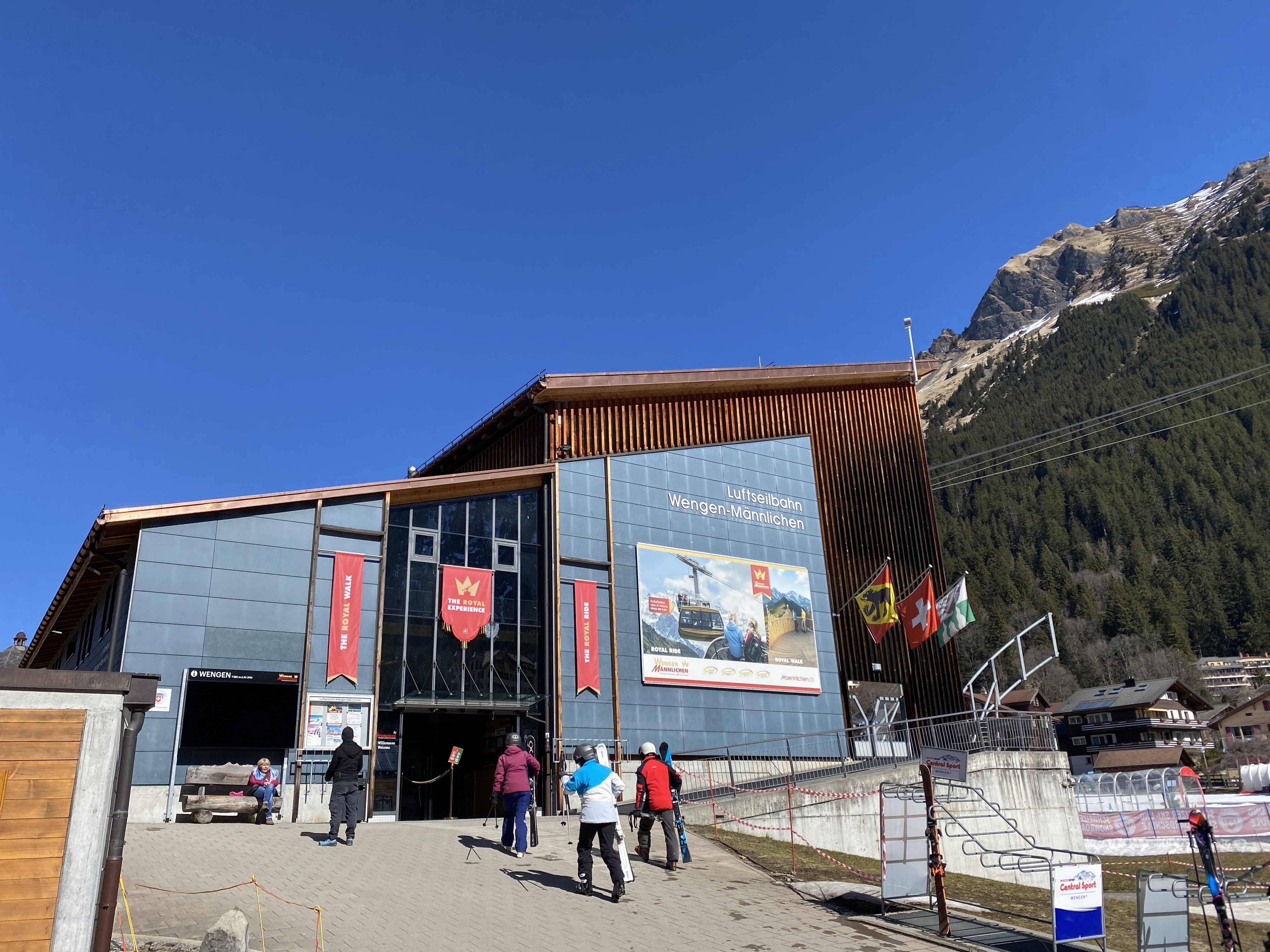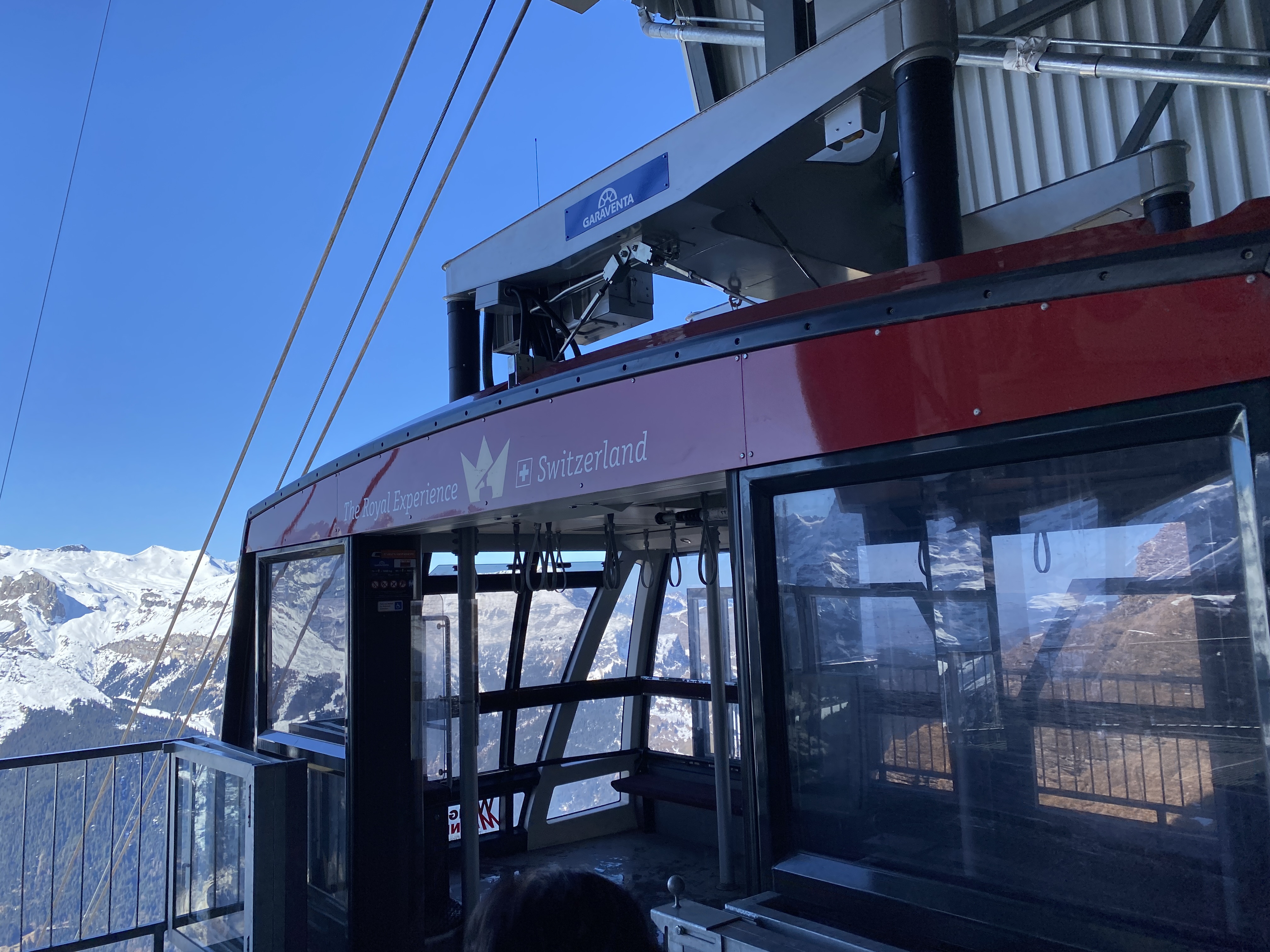 이제는 벵엔 (Wengen)으로 내려가야 한다. 멘리헨에서 로프웨이/케이블카를 타야하는데 곤돌라에서 내리 곳에서 가까운 거리지만 약간 걸어가서 이동을 한다. 눈길인데 미끄러울까 걱정했지만 별 문제없었다. 케이블카는 기차보다는 수용인원이 적지만 곤돌라보단 커서 조금 기
