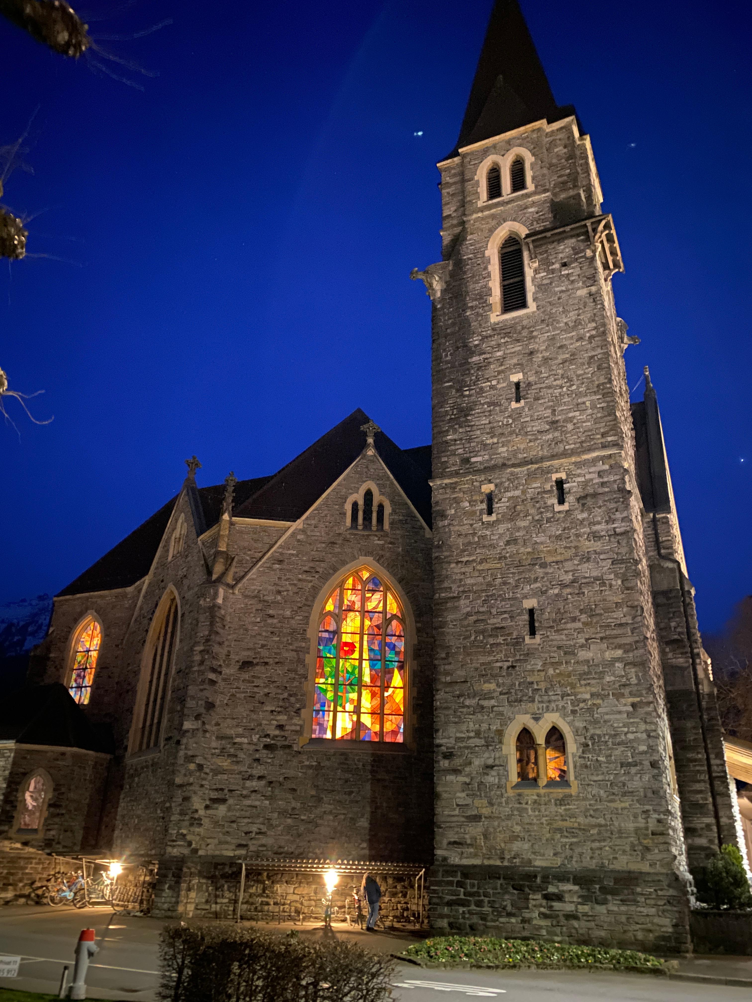 저녁을 먹고 났더니 해가 져버렸다. 베른으로 가기 전 껌껌해도 한식당을 가면서 본 교회건물이 인상적이어서 잠시 멈췄다 가기로 했다. Katholische Kirchgemeinde라는 이름을 가진 교회다. 13년전에도 꽤 인상이 남았던 교회였다. 들어가 볼 수 있었으면 좋았을텐데 라고 생각하며 이번 융프라우 일정은 마무리 하고 다시 베른으로 돌아갔다.