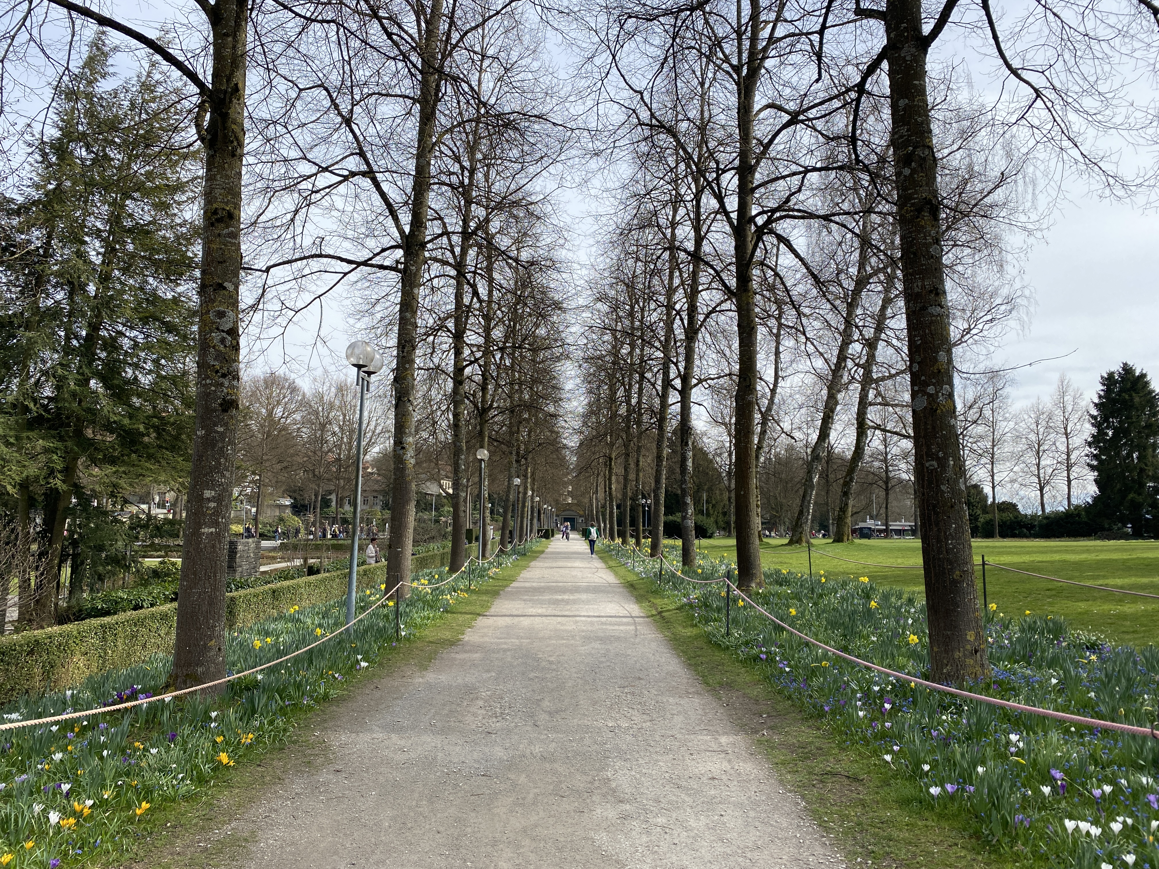 언덕길이어서 주차를 근처 동네에 했는데 이게 얼마 동안 주차를 할 수 있는지 아니면 아예 일반 주차가 금지되어 있는지 몰라서 정원에서의 시간은 짧게 보낼 수 밖에 없었다. 장미가 필 시즌이 되면 장미가 피어있을 곳에도 가보긴 했다. 장미정원에서 나와서 그 다음 행선지인 (바로 근처라서 대개는 그냥 걸어가는 것 같지만) 곰공원 (BärenPark)을 가기 위해 차를 다시 길가에 주차를 했다. 언덕길에 나처럼 많은 차들이 주차가 되어 있어서 여기는 확실히 주차를 해도 되는 것 같아서 좀 더 안심했다. 여기도 언덕이라 장미정원 안에서 보던 구시가지의 모습과 비슷한 경치가 있었는데 오히려 난 그냥 여기 언덕길에서 보는 구도가 더 좋았던 것 같다.
