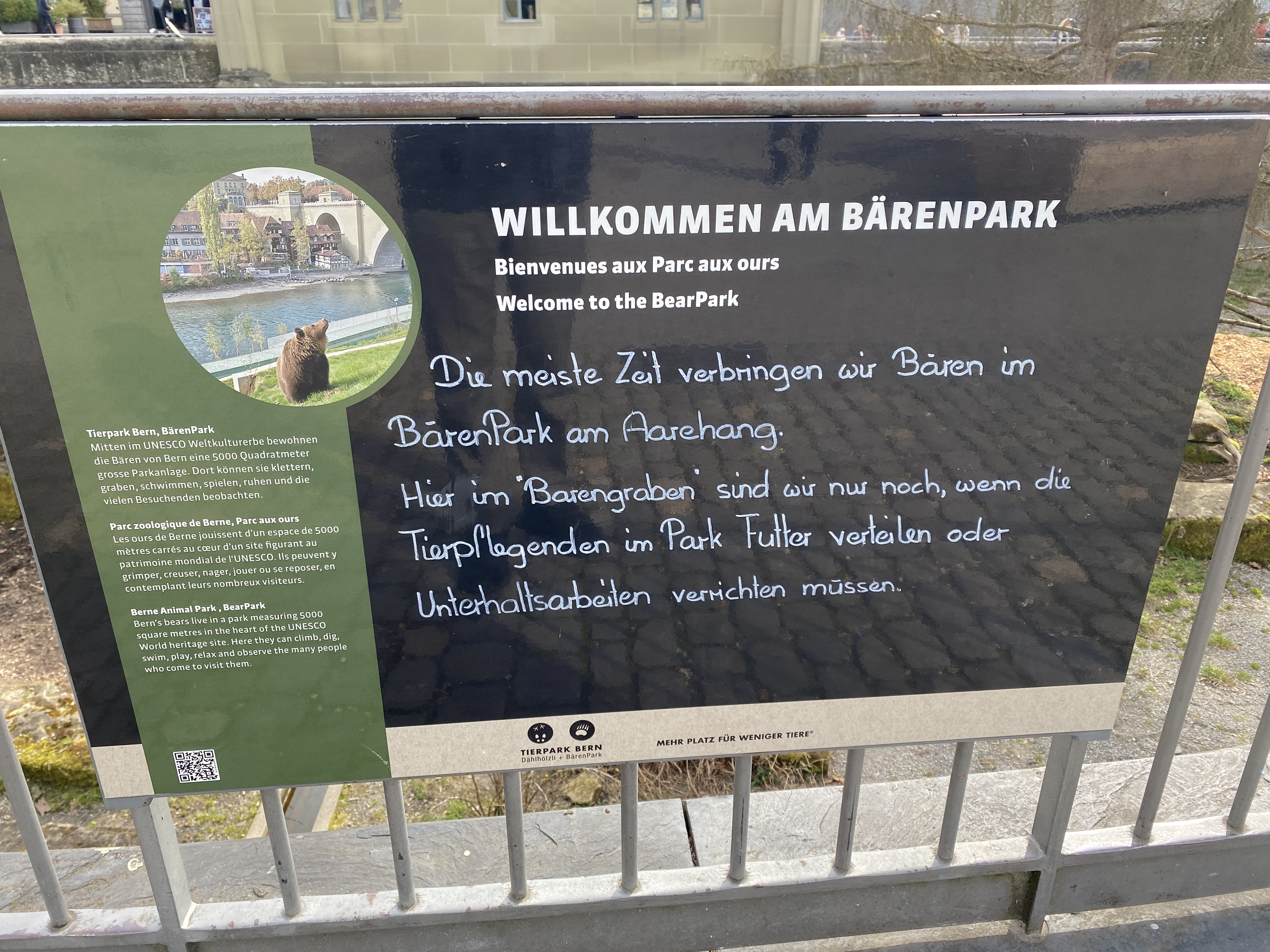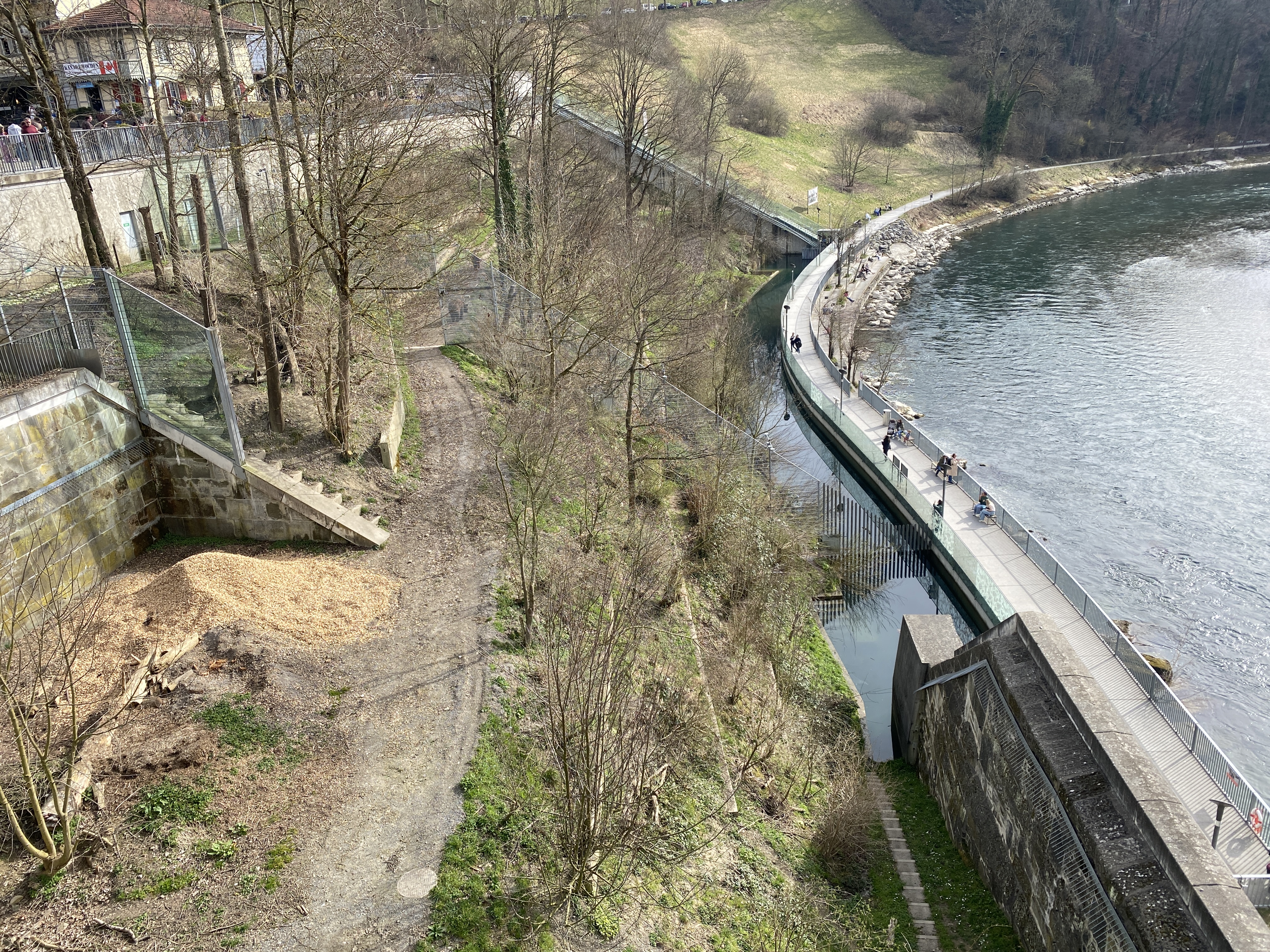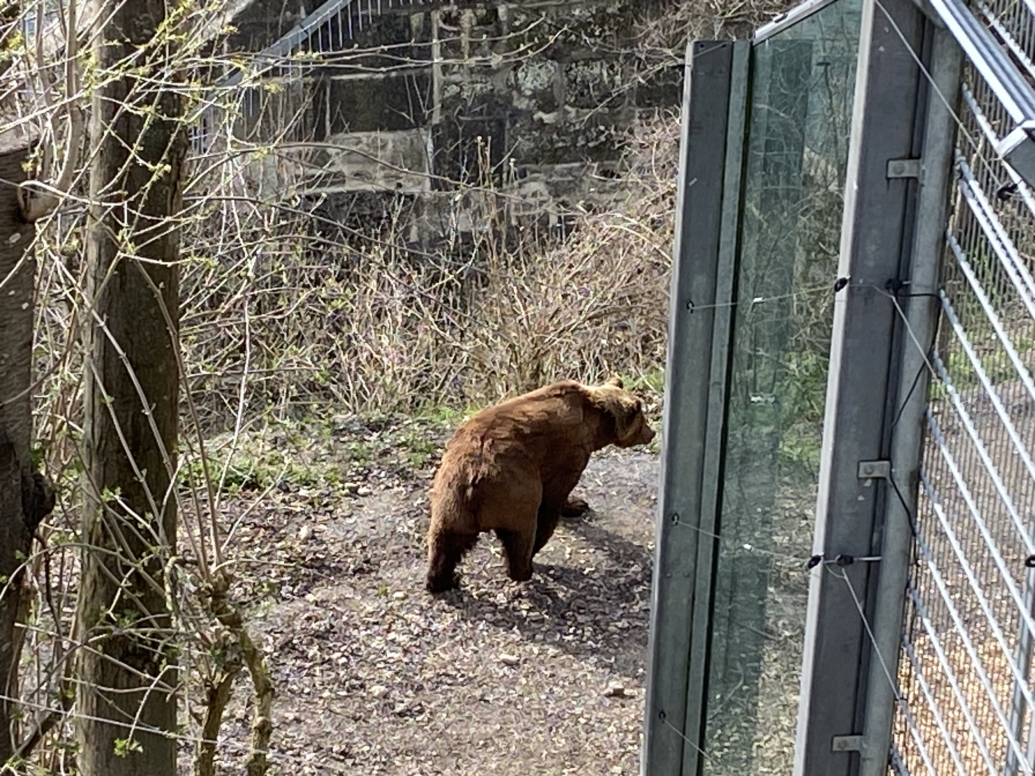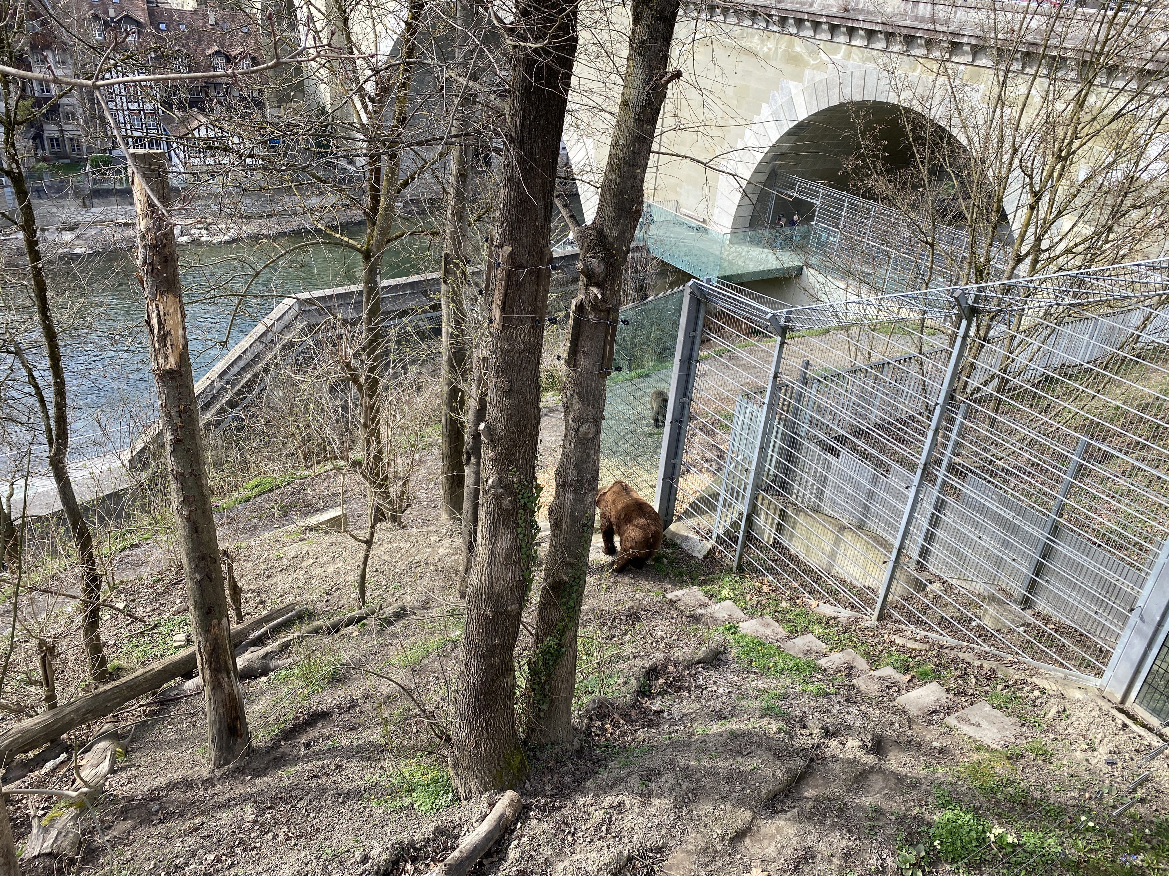 언덕길에서 조금 걸어서 곰공원에 도착했다. 이게 "공원"이 "곰"을 위한 거라서 사람이 공원에서 시간을 보내는게 아니다. 2마리의 곰이 놀고 있는 모습을 다리 위의 난간에서 밑으로 구경하는 구조이다. 내가 간 날은 다행히도 곰들이 돌아다닌걸 잘 볼 수가 있었다. 2마리 중 하나는 사이즈가 좀 작은 걸로 보아 아기곰인 듯 했다.