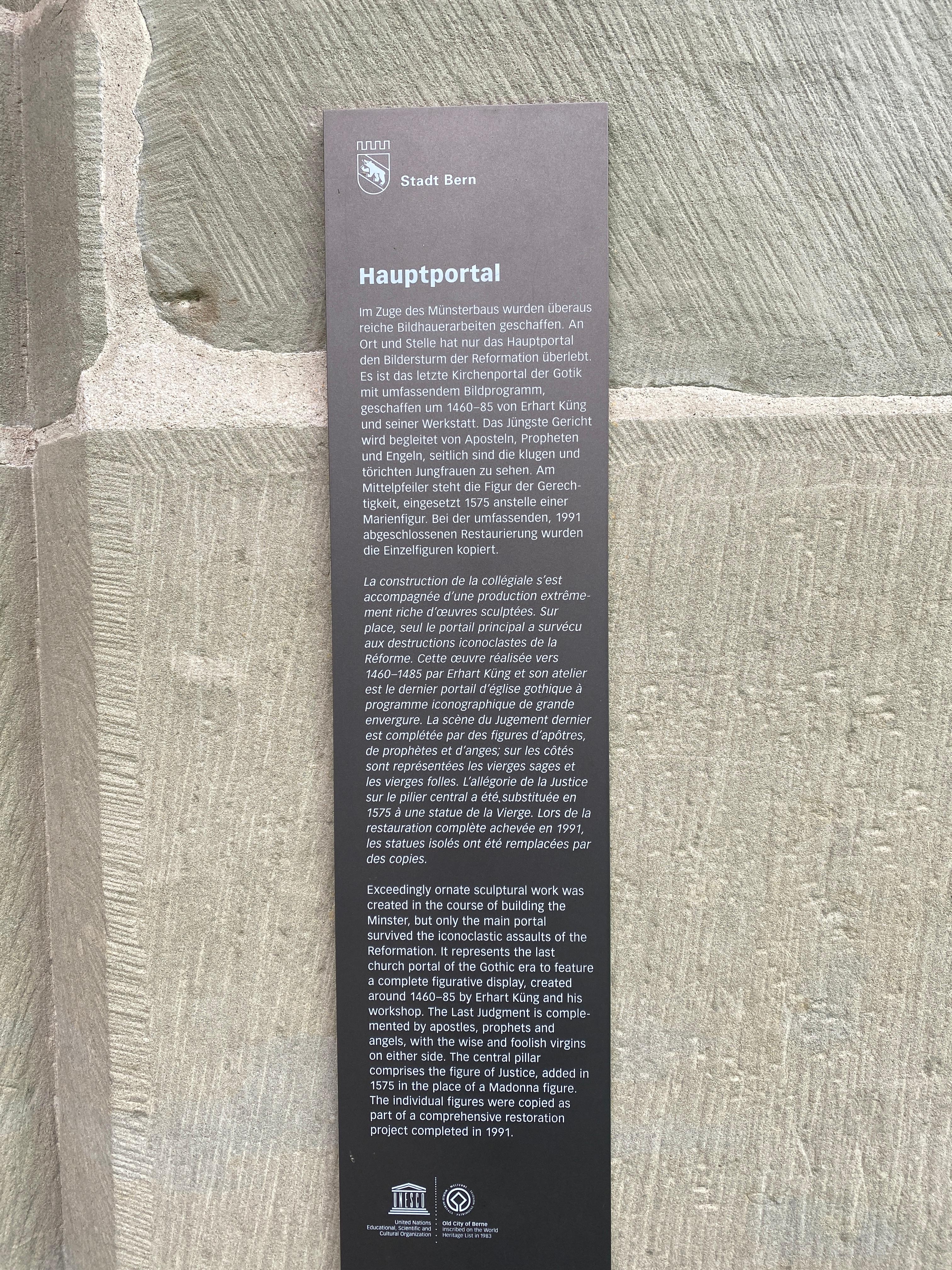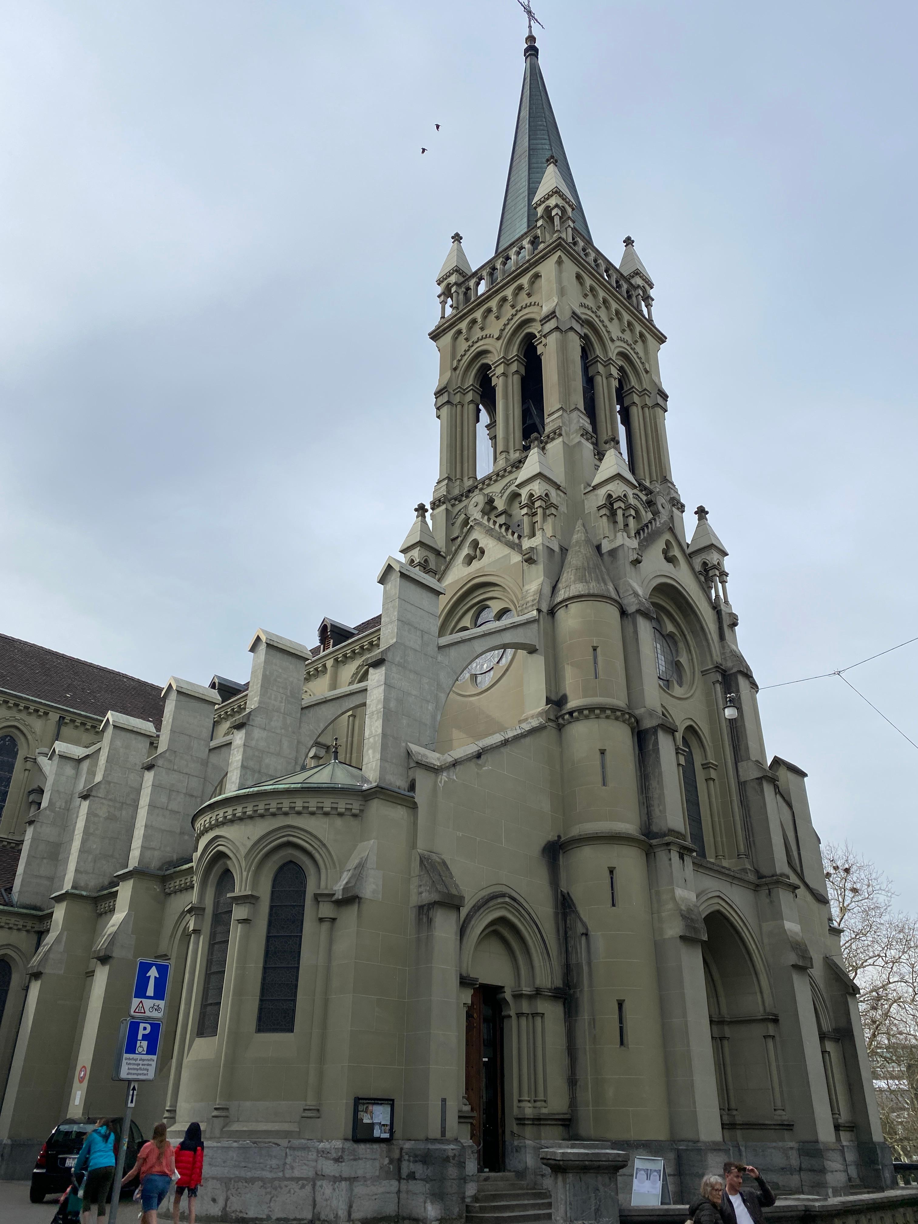 벌써 시간이 저녁으로 접어드는 시간이어서 마지막 장소로는 베른 대성당 (Münster)을 방문했다. 눈에 확띄는 높은 첨탑을 자랑하는 곳이다. 성당도 내부공사를 하는지 들어가 볼 수는 없었다. 천장화가 아주 인상적이라고 한다. 사진이 아예 공사현장에 붙어있는 것으로 보아 실제로 보지 못해 아쉬워하는 나같은 사람들에게 도움이 되긴 했다. 성당 옆으로 시민들이 쉴 수 있는 공원이 조성되어 있는데 사람들이 많이 모여 있었다. 아마 베른에서 여유를 느끼며 산책하기에 가장 좋은 곳 중에 하나가 아닐까 한다.