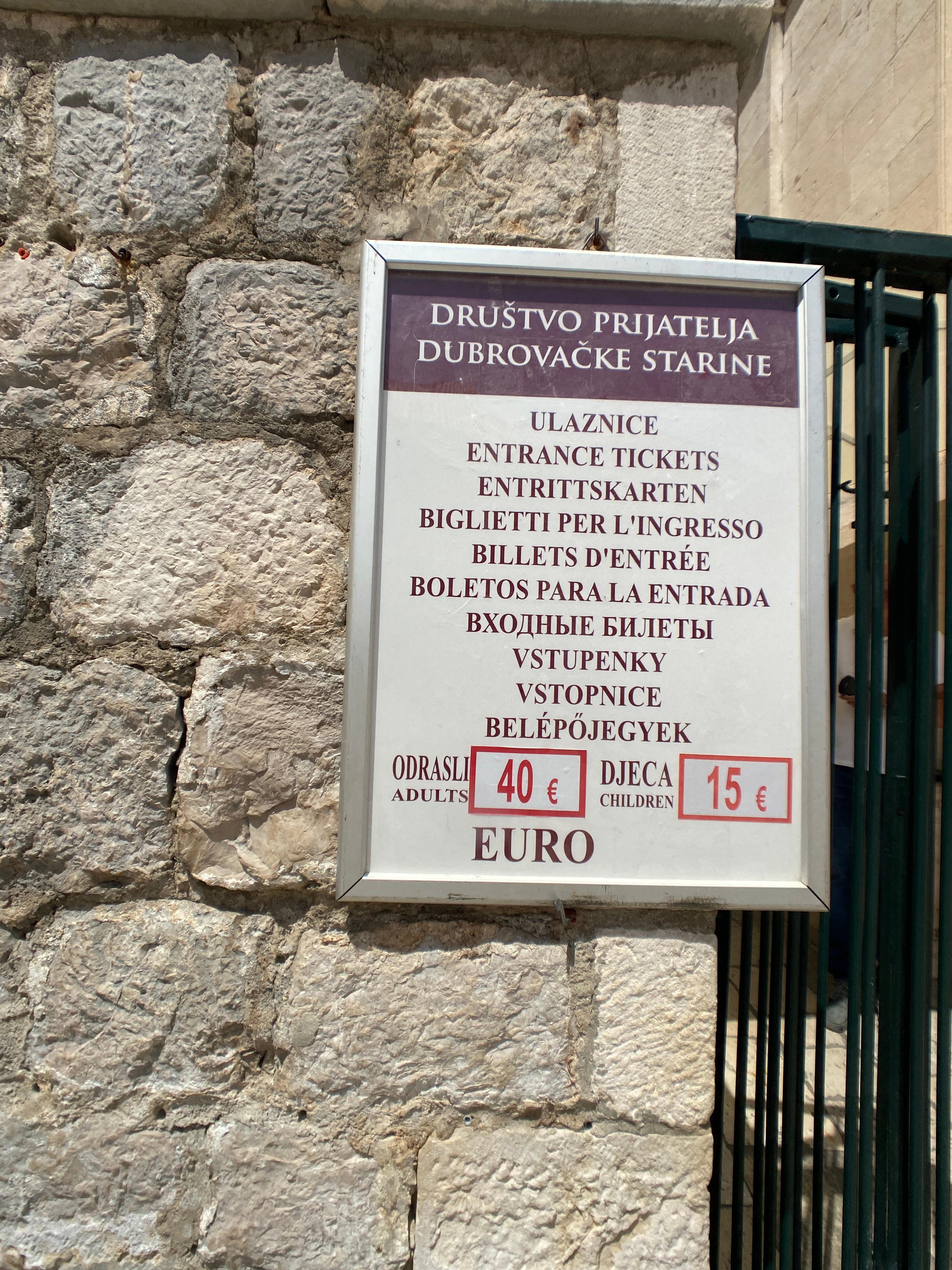 한 10여분간 걸어가니 이제 성벽이 눈 앞에 보인다. 입장료가 40유로"나" 해서 망설일 거라고 생각을 하면 오산이다. 여기까지 왔으니 무조건 해야 한다. 성벽투어를 하기 위해서는 "게이트" 즉 입구를 찾아야 하는데 가장 사람이 많이 몰리는 곳이 이 곳 (필레/파일, Pile Gate)이라고 한다. 다른 입구가 두 군데 더 있다고 한다. 예전 블로그 글들을 찾아보니 입장료가 굉장히 많이 올랐다. 보호 명목보다는 거의 유일한 관광자원이다보니 한 몫 챙겨야 해서 그렇다고 본다.