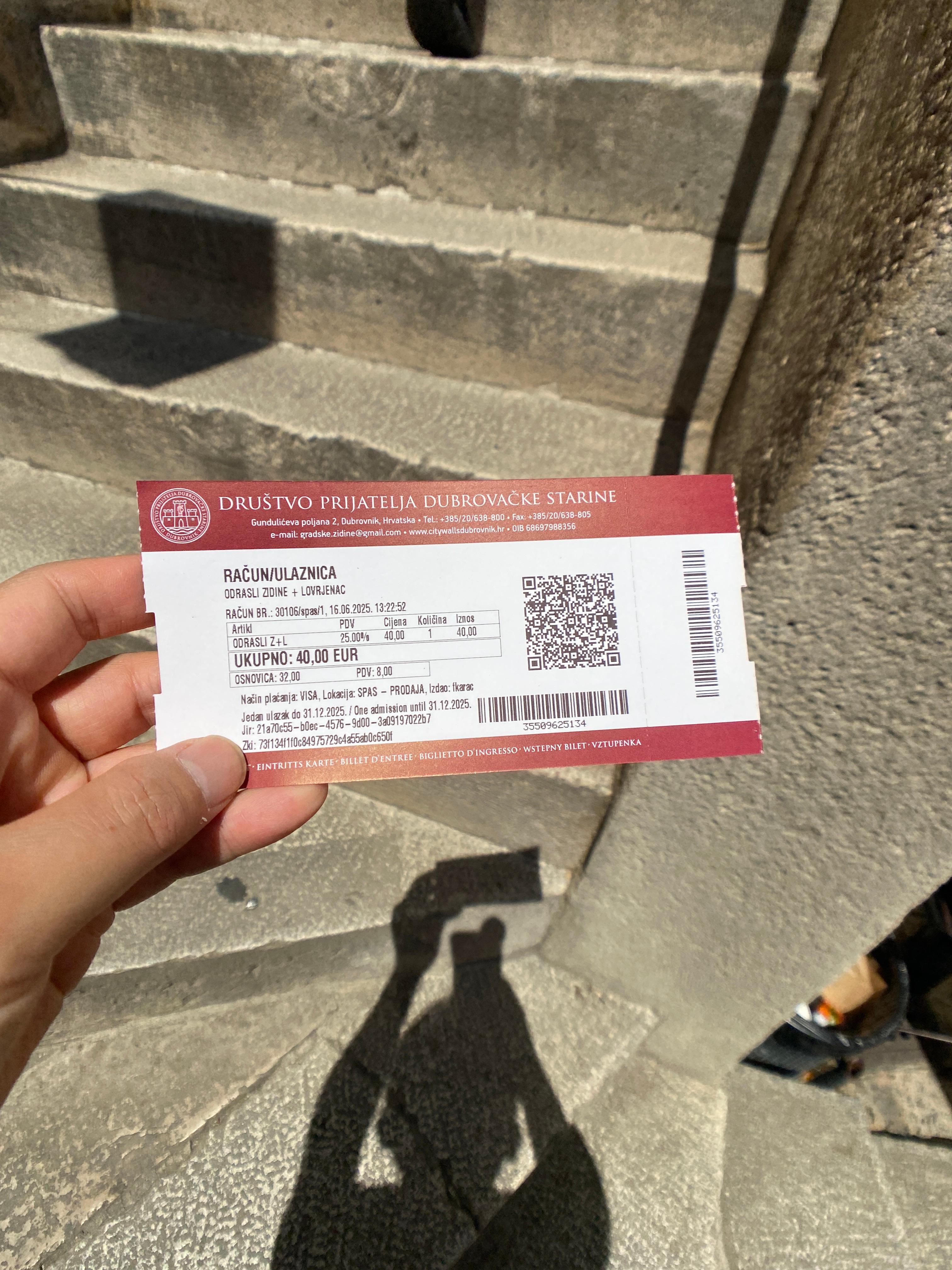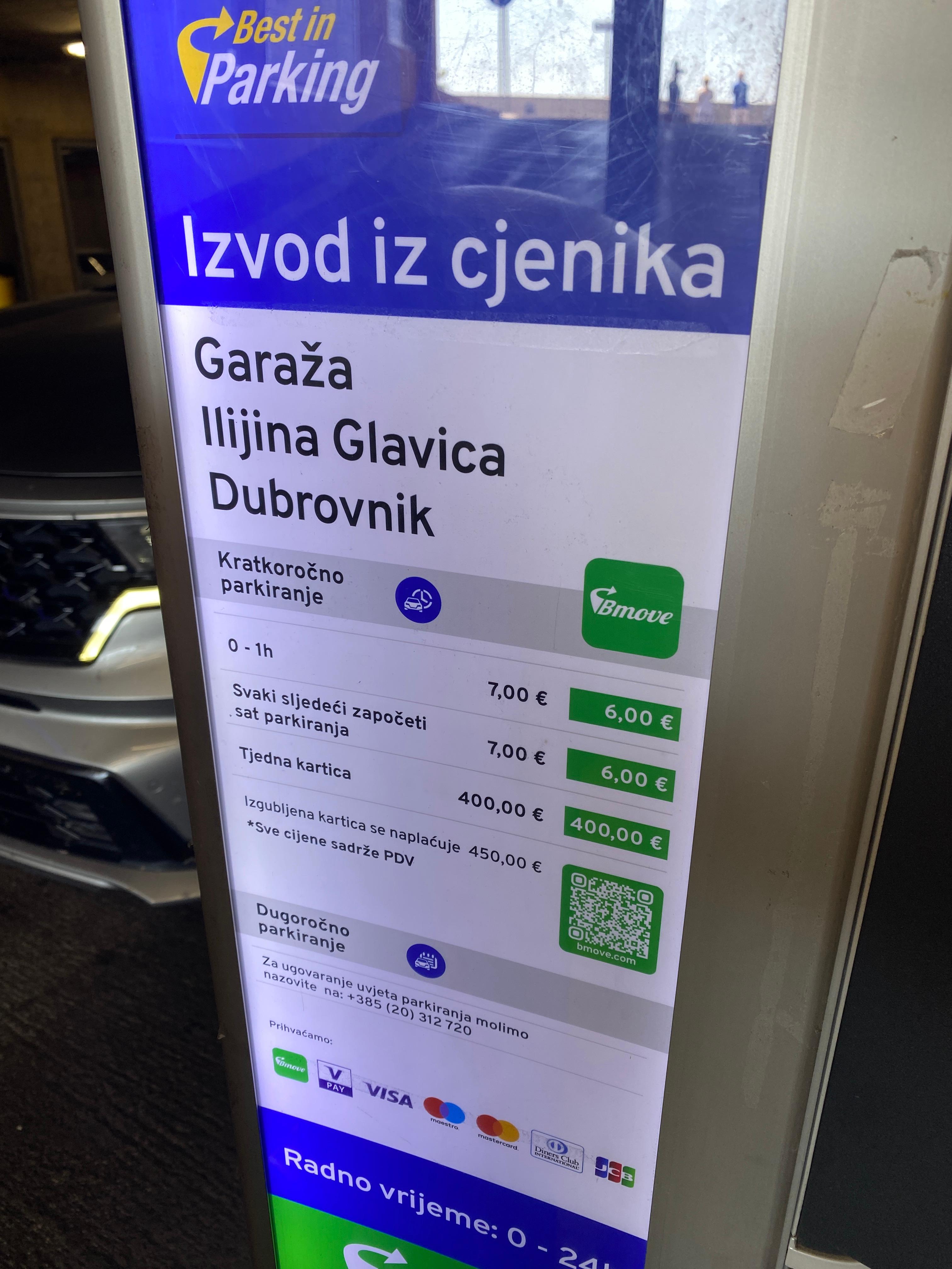많은 사진과 영상을 본 게 있어서 별로 고민을 하지 않고 성벽투어를 해보기로 했다. 렌트카를 빌렸기 때문에 우선 주차를 해야한다. 성벽과 가까운 곳은 더 비싸다고 해서 충분히 알아보고 간 곳도 꽤 비싼 주차비를 받는 곳이었다. 그래도 한시간에 7유로면 나쁘지 않다. 크로아티아의 물가는 지역마다 많이 다르다고 하는데 가장 비싼 지역이 이곳 두브로브니크 지역이라고 한다. 아무래도 관광객이 가장 몰리는 곳이라 그렇다고 이해가 된다.
