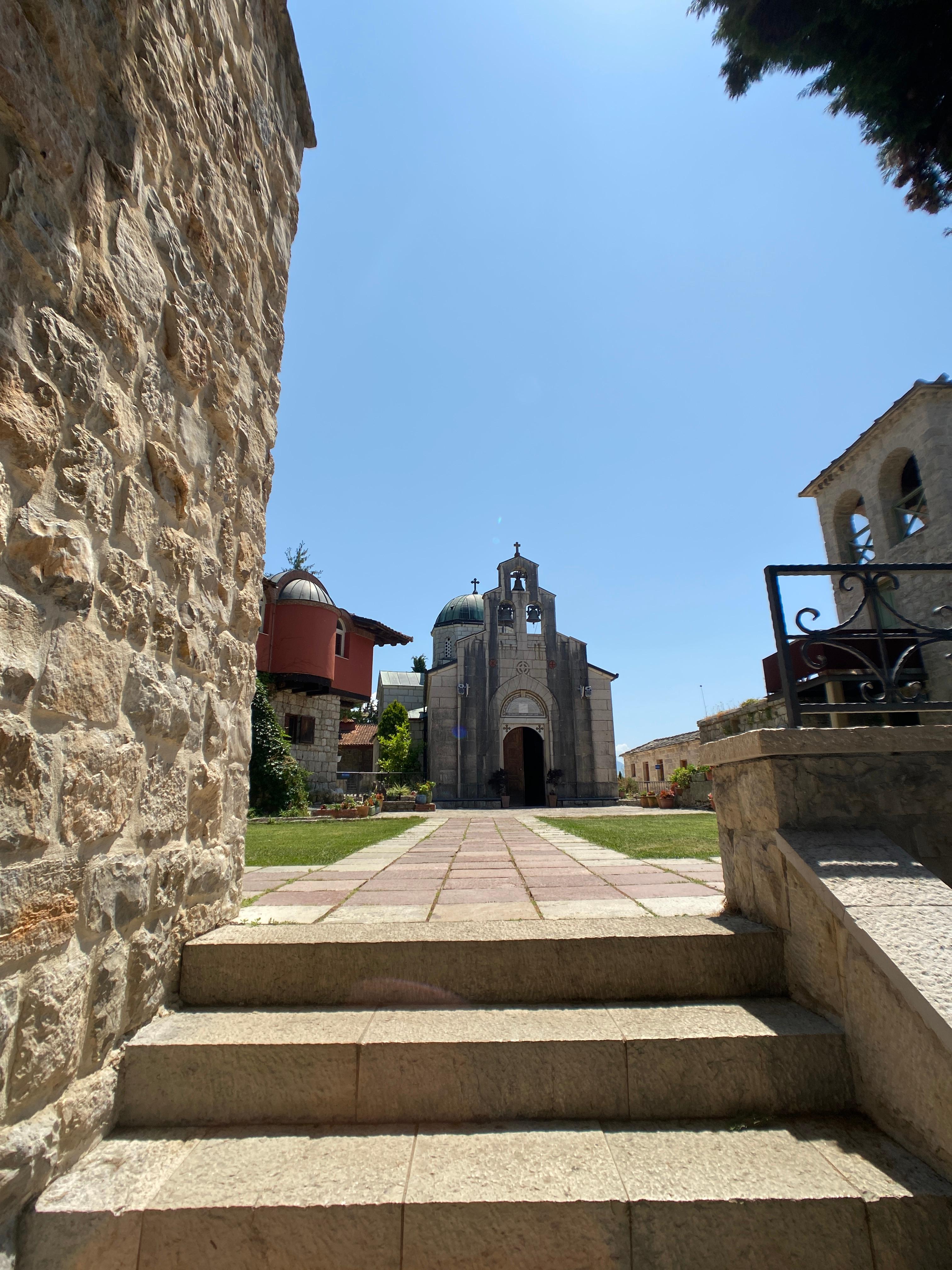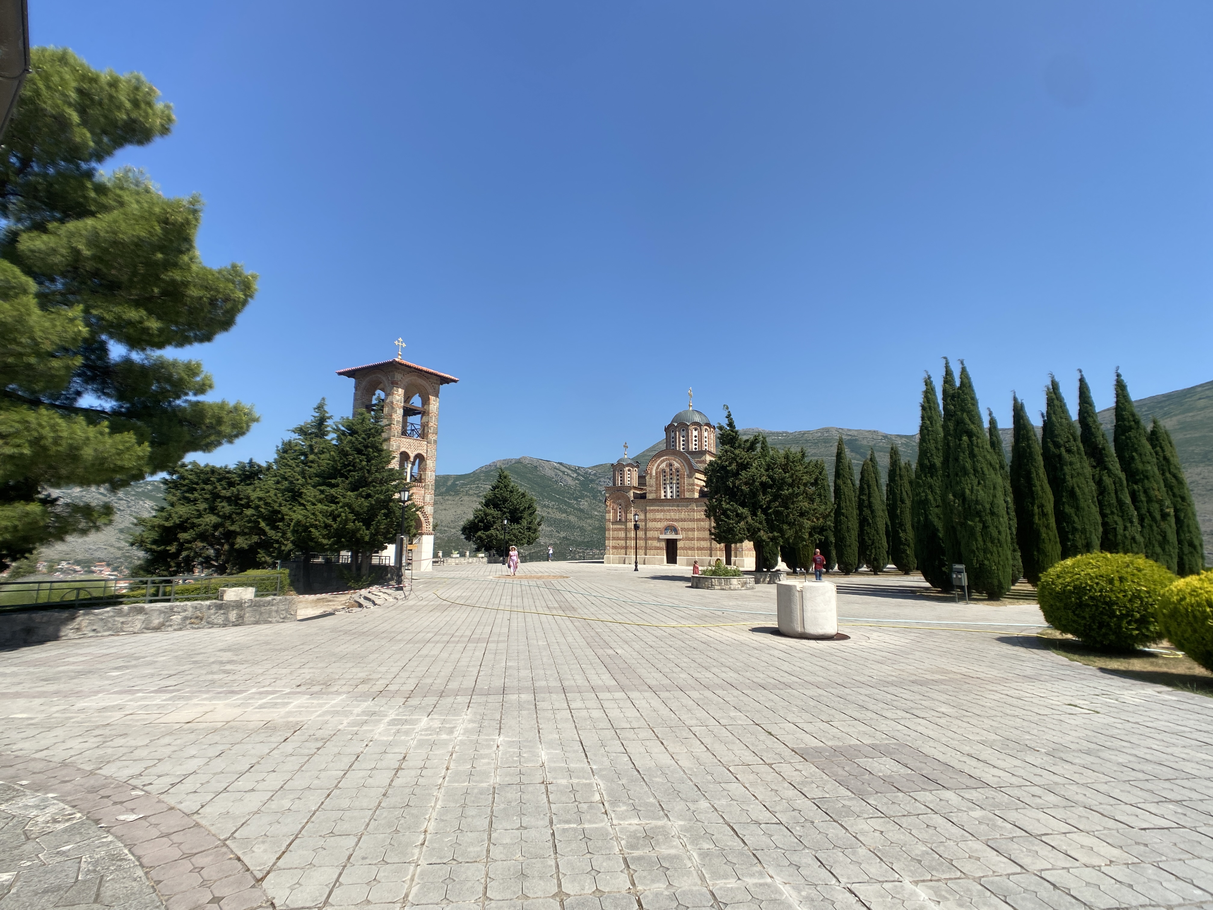 트레비녜에서 가장 유명(?)한 관광지는 Tvrdos 수도원 (Tvrdos Monastery)였던 것 같다. 여기 저기에 표지판이 있는걸 봐서는 확신한다. 걸어서 갈 수는 없고 차를 타고 조금 이동을 해야 한다. 동네가 크지 않아서 외곽지역에 있다고 해도 차로 5분 정도 가면 된다. 포도밭과 교회, 수도원이라서 수도를 하는 분들도 곳이라 정숙하게 입장을 해야 한다. 더워서 반바지를 입고 있었는데 복장 규정도 엄격해서 가릴 수 있는 걸 줘서 그렇게 입고 입장을 했다.