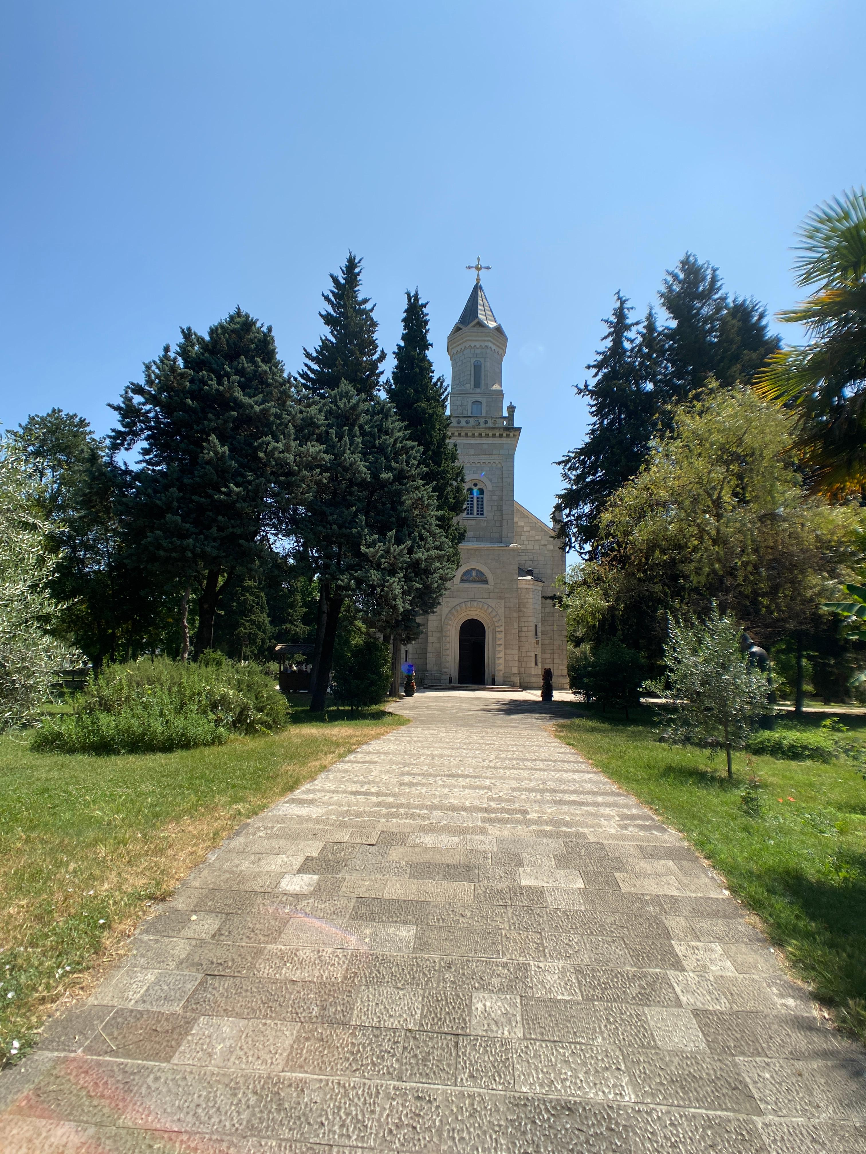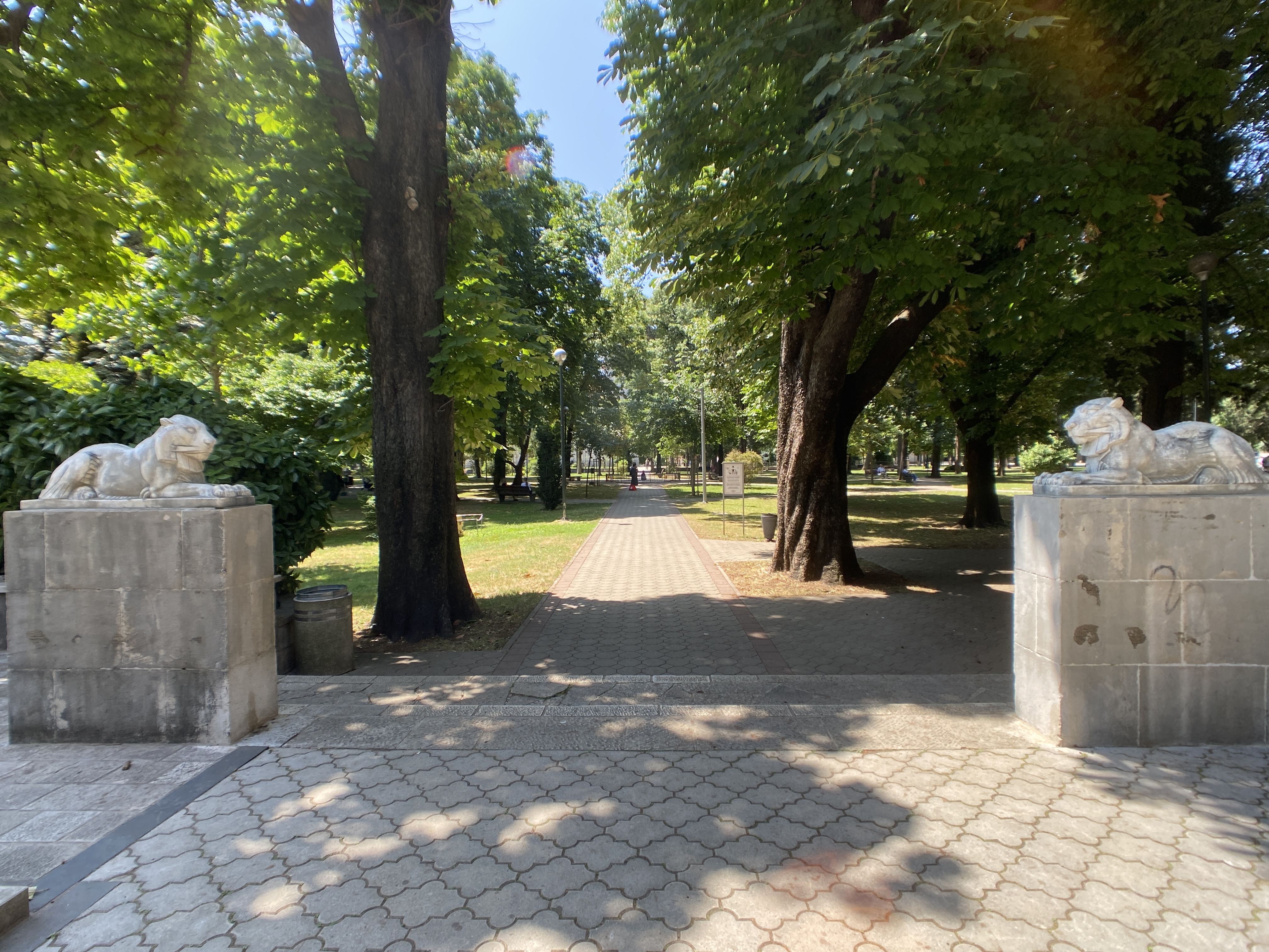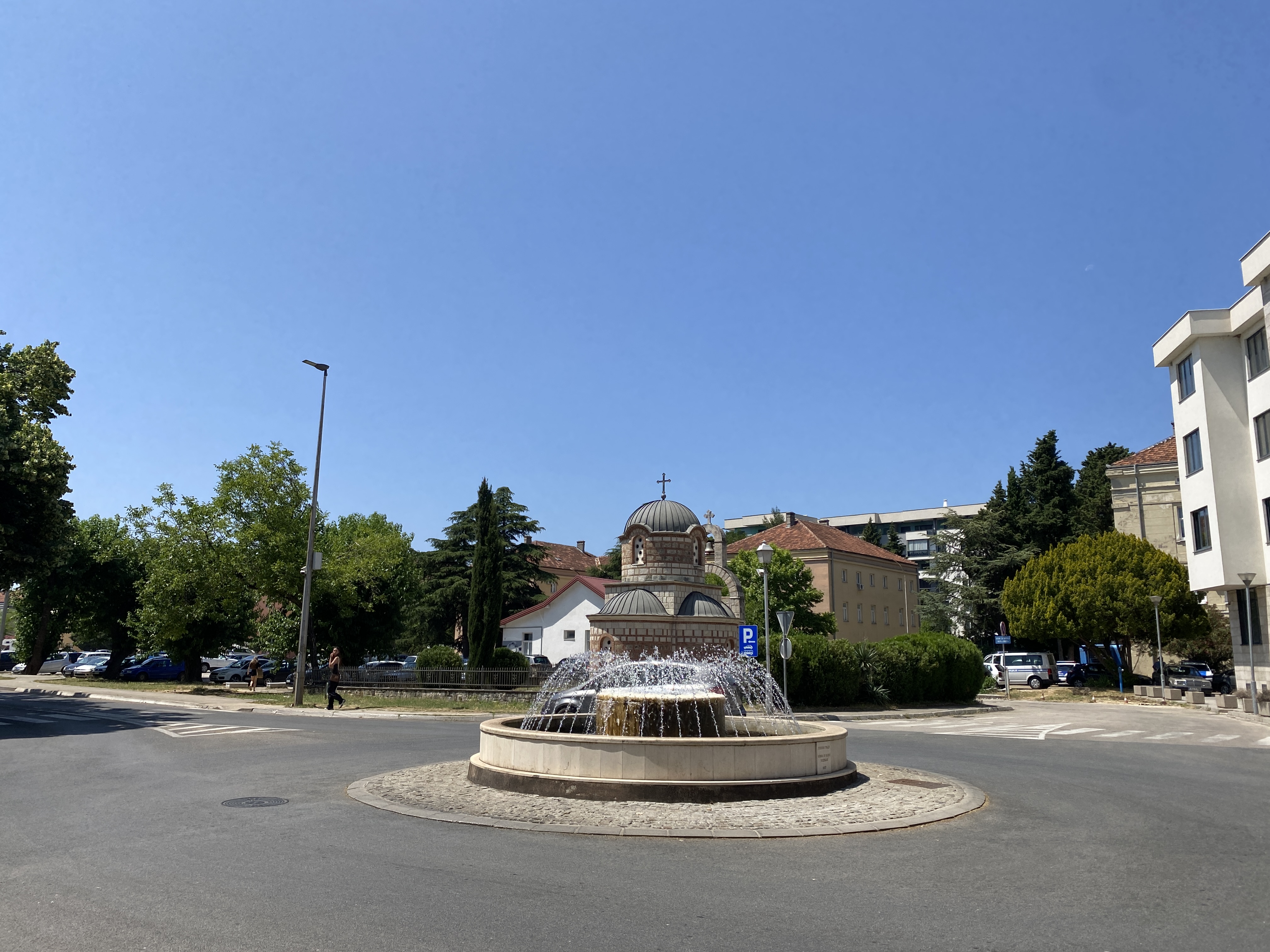 몬테네그로와 마찬가지로 여기에도 크고 작은 교회가 정말 많이 있었는데 주차시설 코너에도 이렇게 조그많고 어찌보면 귀여운 교회 건물이 있어서 신기했다. 중심가에서도 행선지는 공원의 한 구석에 있는 큰 교회였는데 걸어가는 길이 여유롭다. 근데 썩 아름답게 여겨지는 공원은 아니었다.