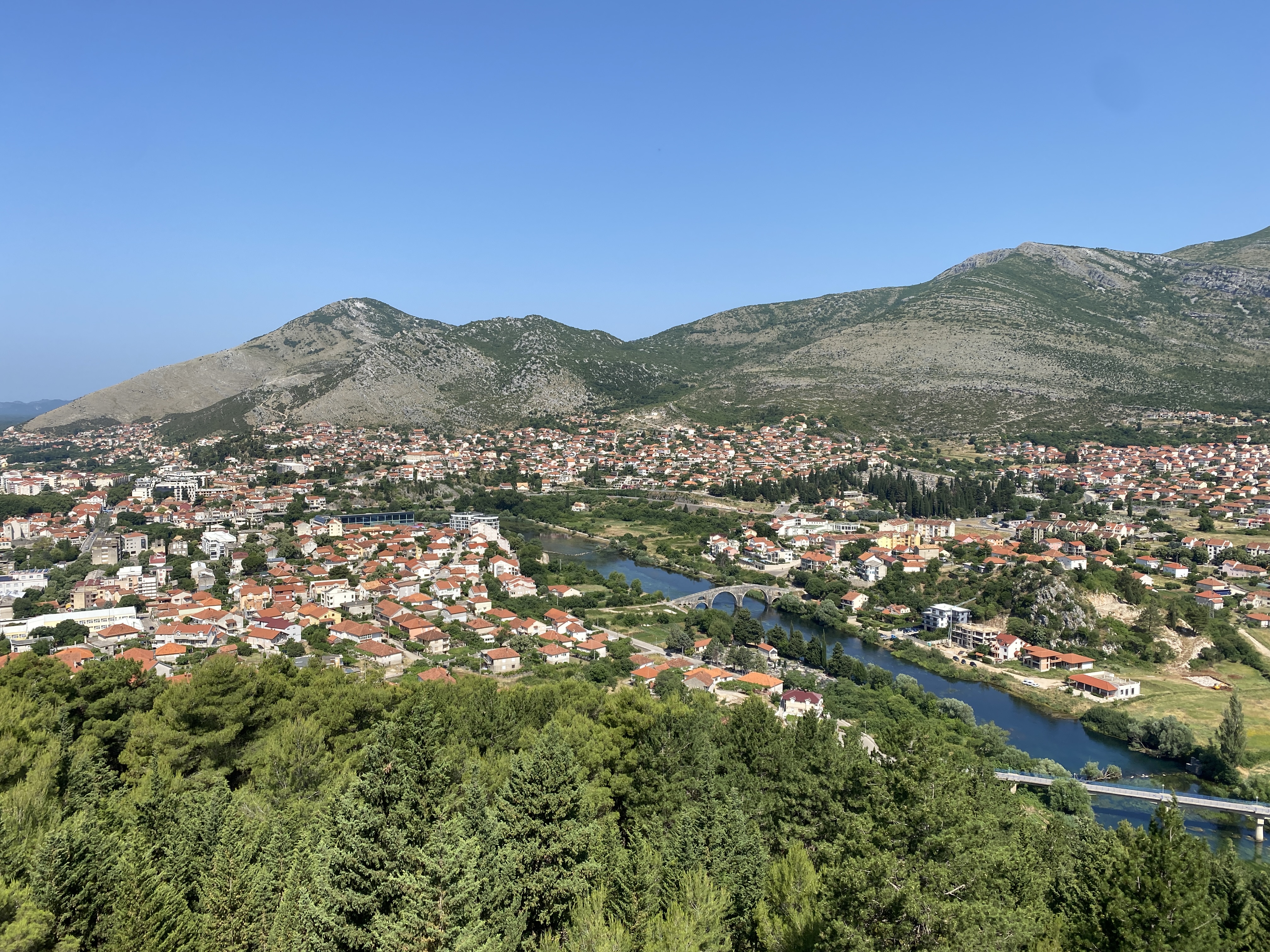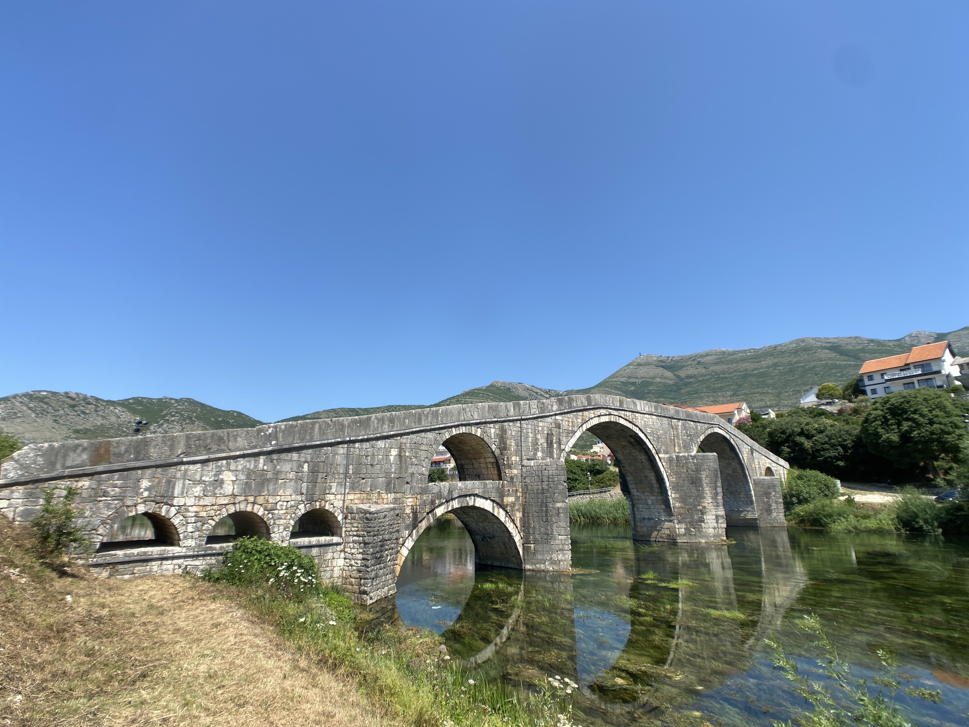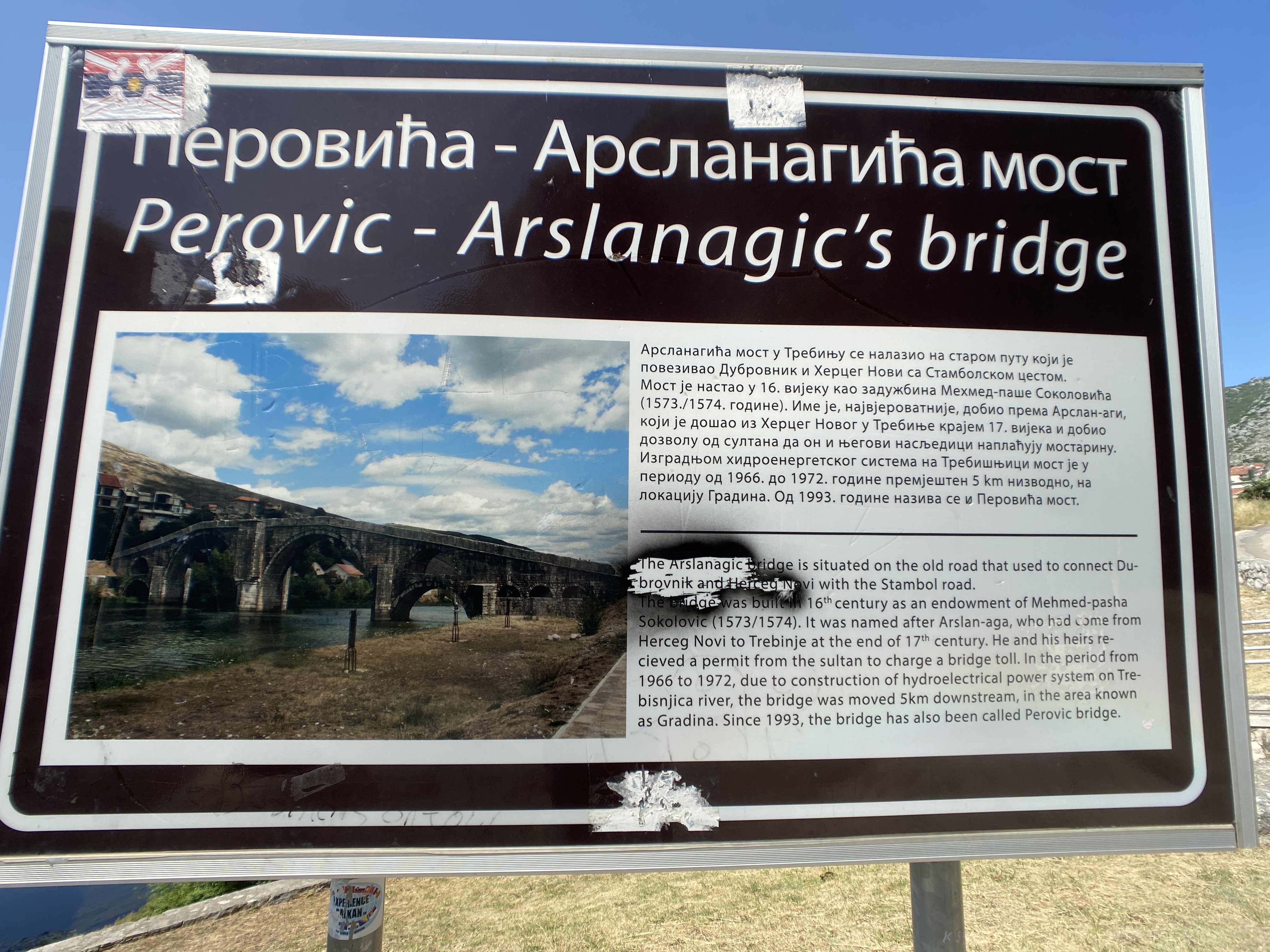 교회는 웅장한 모습이라기보다 좋은 위치에 (낮은 산이지만 정상에) 그리고 트레비네의 전경이 잘 보이는 곳에 깨끗하게 잘 정돈된, 뭐 그런 느낌이다. 교회 말고도 주위의 건물들을 다 같은 스타일이어서 잘 어우러진 느낌이 있다. 트레비네의 전경을 여기에서 보면 (다음 행선지인) Arslanagić Bridge가 잘 보인다. 정말로 오래된 다리라고 하는데 원래 1650-1690년 사이에 지어졌고 1970년에 들어서 원래 있었던 자리에서 현재 자리로 돌을 하나하나 분해해서 옮겼다고 한다.