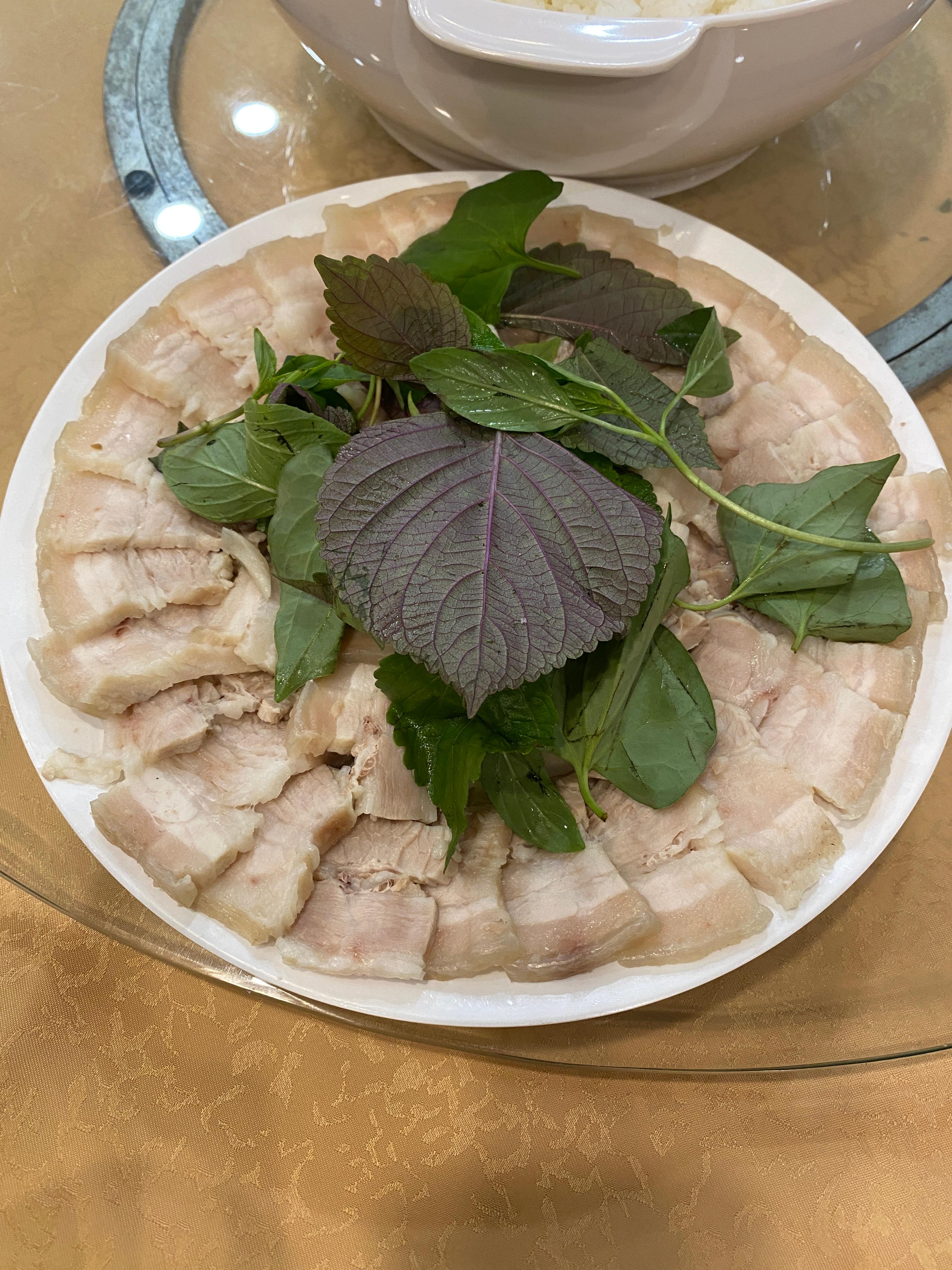 점심으로 먹었던 음식 중에 어린가지 (eggplant)를 염장해서 나온 반찬 같은 음식이다. 가지를 못 먹는데 이건 하나 먹었는데 아무런 문제가 없어서 다행이었다. 돼지고기 수육 같은 것도 나왔다.