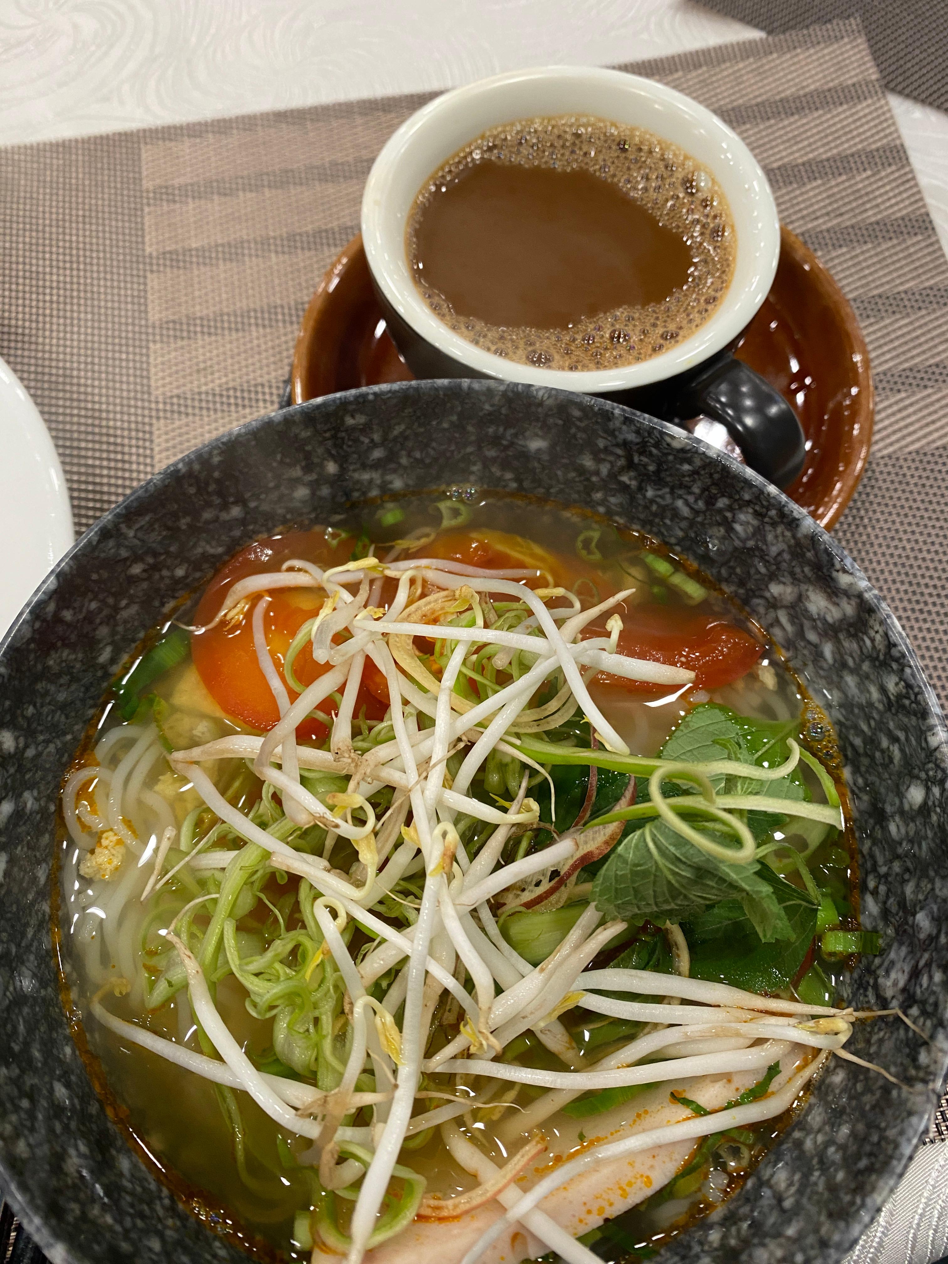아침으로는 적은 양의 국수류가 번갈아 가며 나와서 쌀국수 뿐 아니라 다른 국수들도 원없이 먹었던 것 같다. 베트남식 커피 (커피에 연유)도 자주 마셨다.