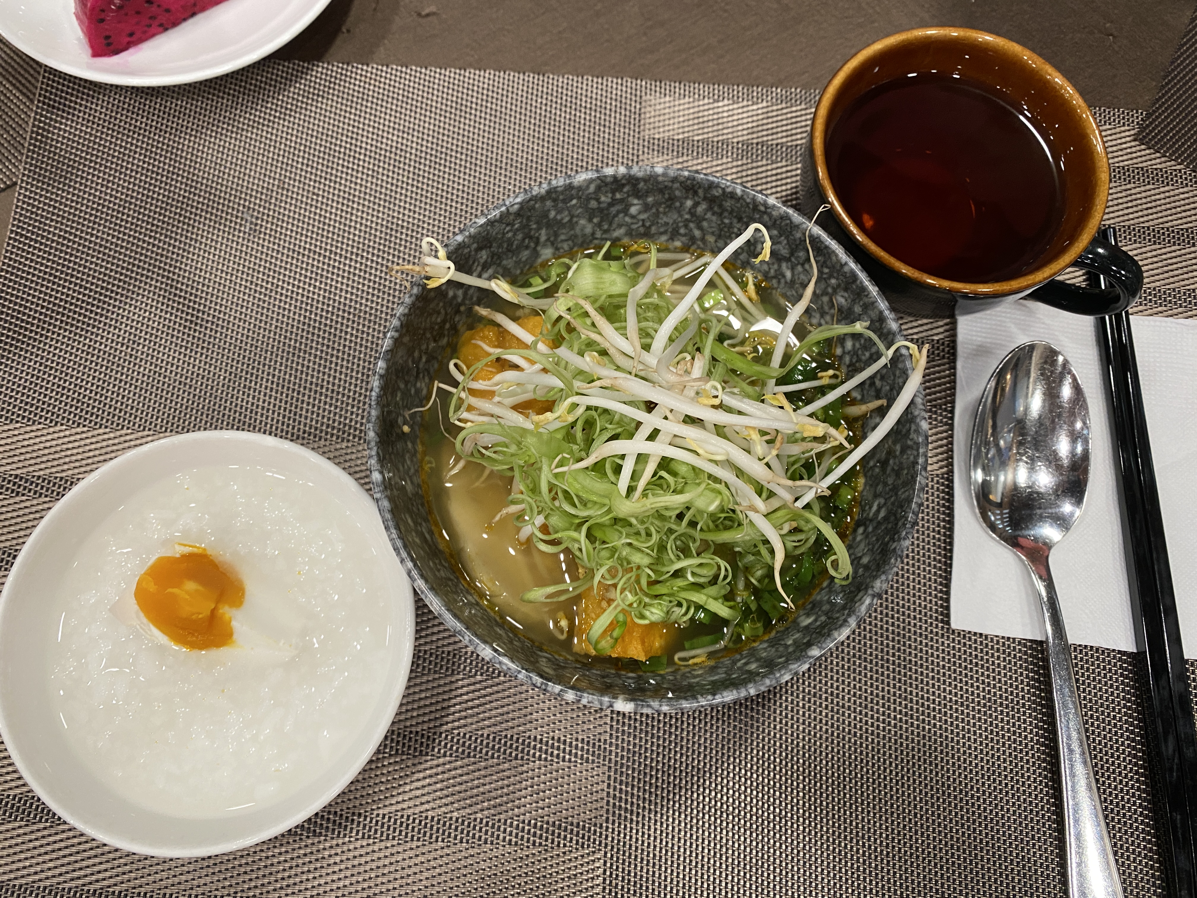 며칠동안 계속 배가 좀 아파서 아침은 계속 죽, 국수, 홍차 이런 식으로 먹었던 것 같다.
