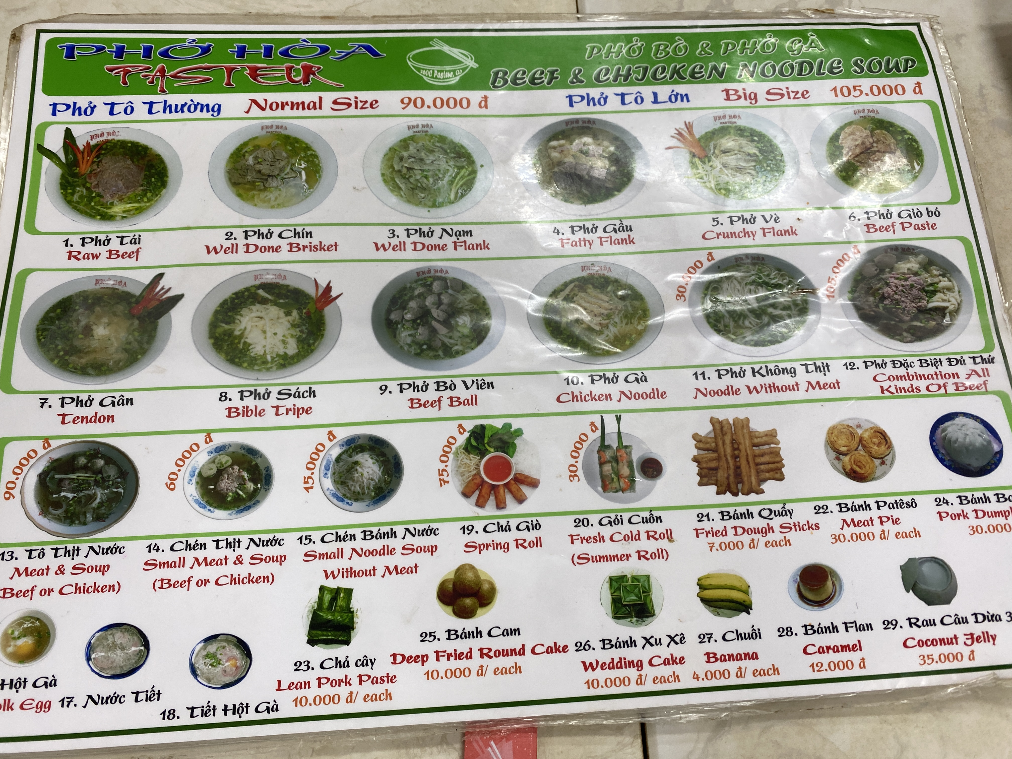 Pasteur라는 이름이 붙은 이 가게는 상당히 유명한 쌀국수 집이라고 한다. 파스퇴르는 이 가게가 있는 길 이름이다.