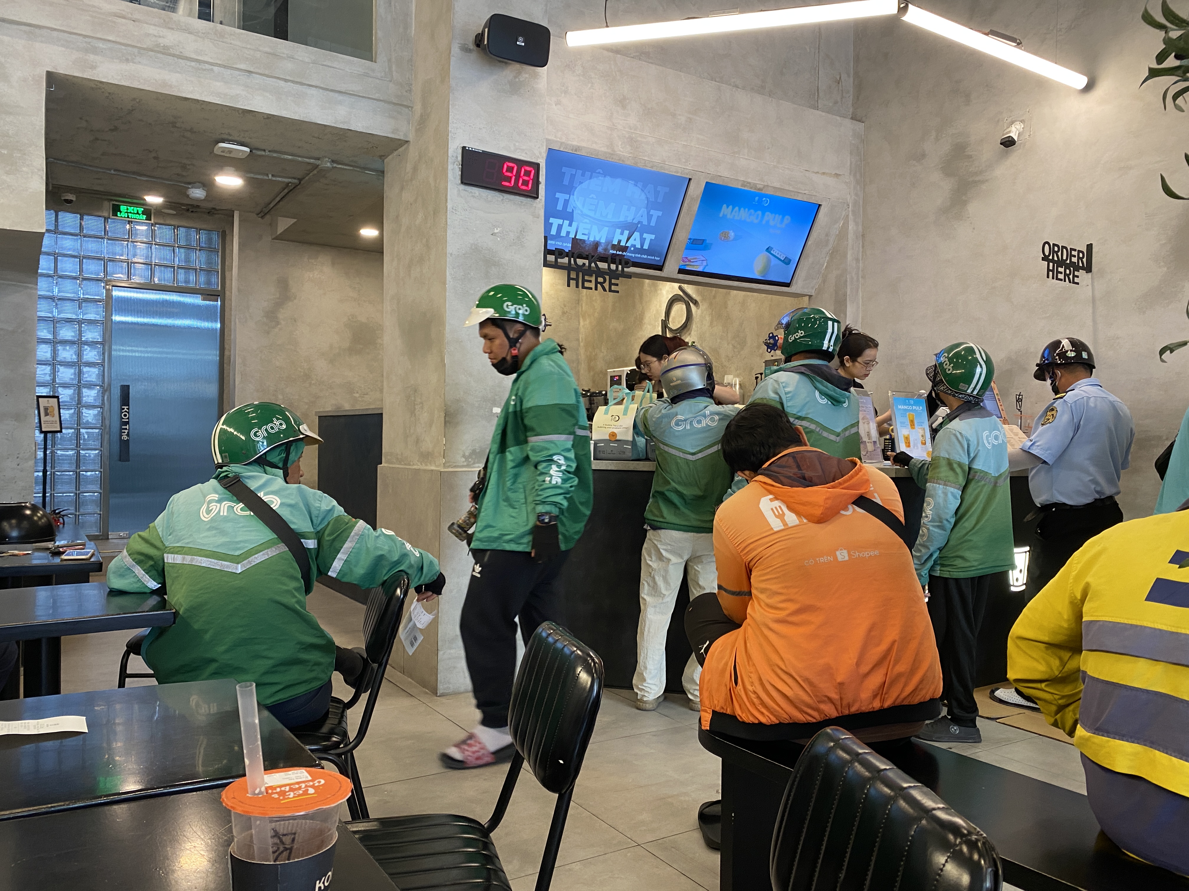 버블티를 파곤 곳이었는데 놀라웠던 점은 배달기사들이 잔뜩 있었다는 거다. 버블티도 충분히 배달이 가능하지만 배달비를 낼 정도로 더운날 버블티가 인기가 있나보다 싶었다.