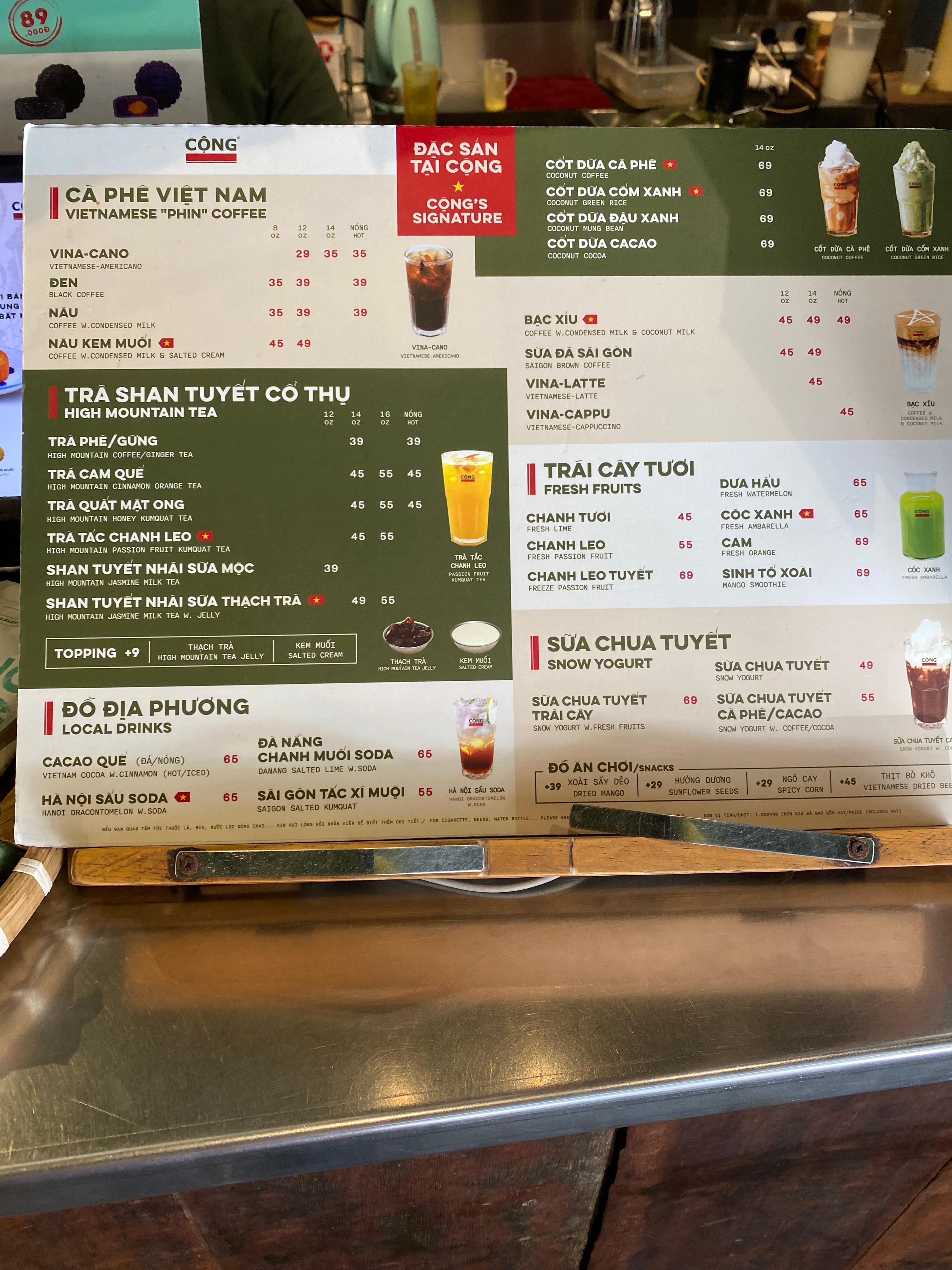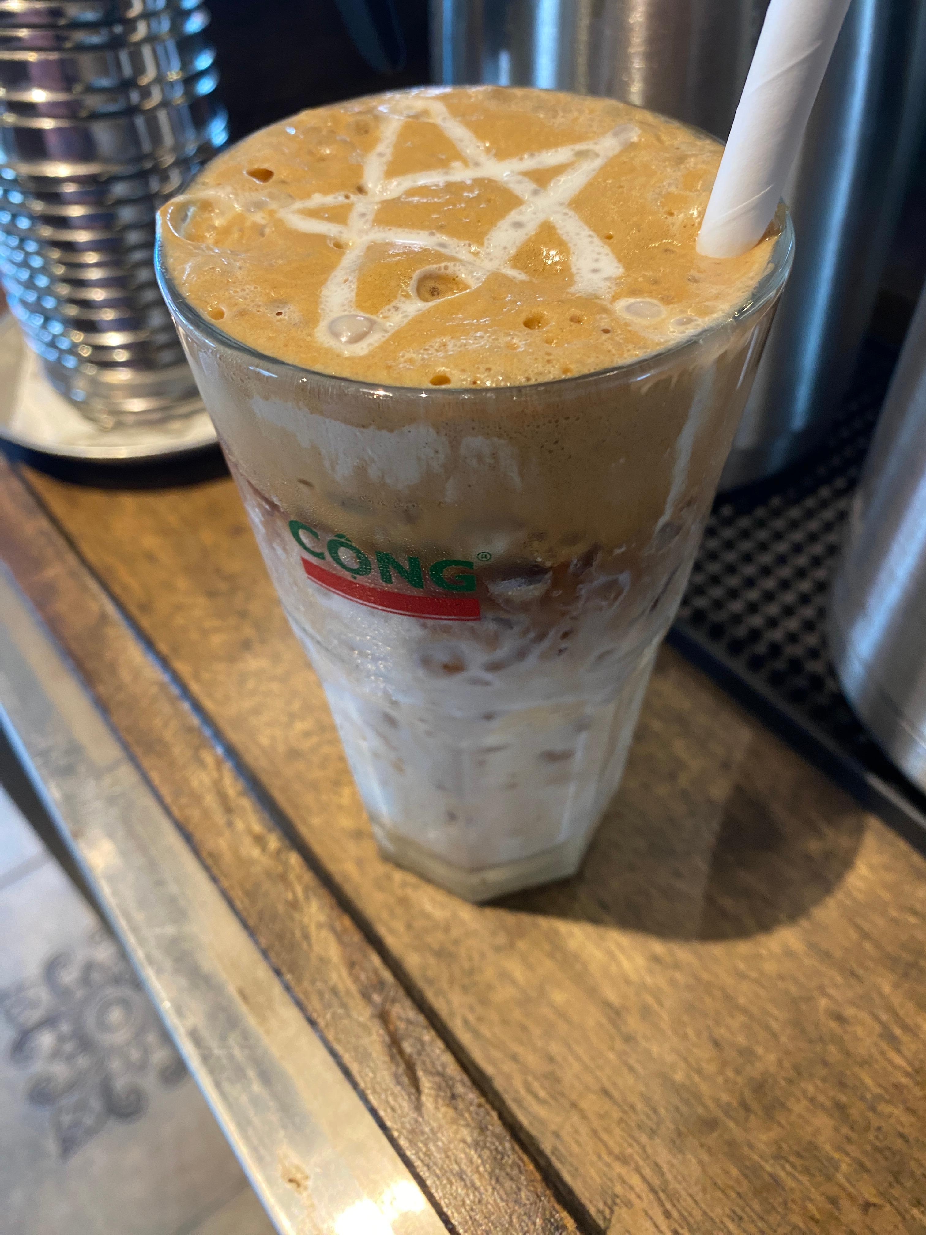 "콩카페"라는 이름을 어디서 들어봤는데 한번도 못 보다가 마지막 날이 되어서 지도에서 찾아서 근처에 있는 콩카페를 가봤다. 여기가 화이트커피/코코넛커피가 유명하다고 해서 아이스로 시켜봤다. 코코넛커피는 별게 아니고 커피에 연유, 그리고 코코넛밀크 이렇게 넣으면 색이 거의 흰색이 되서 그런 거라고 한다. 콩카페는 가격이 꽤나 착한 편이다.
