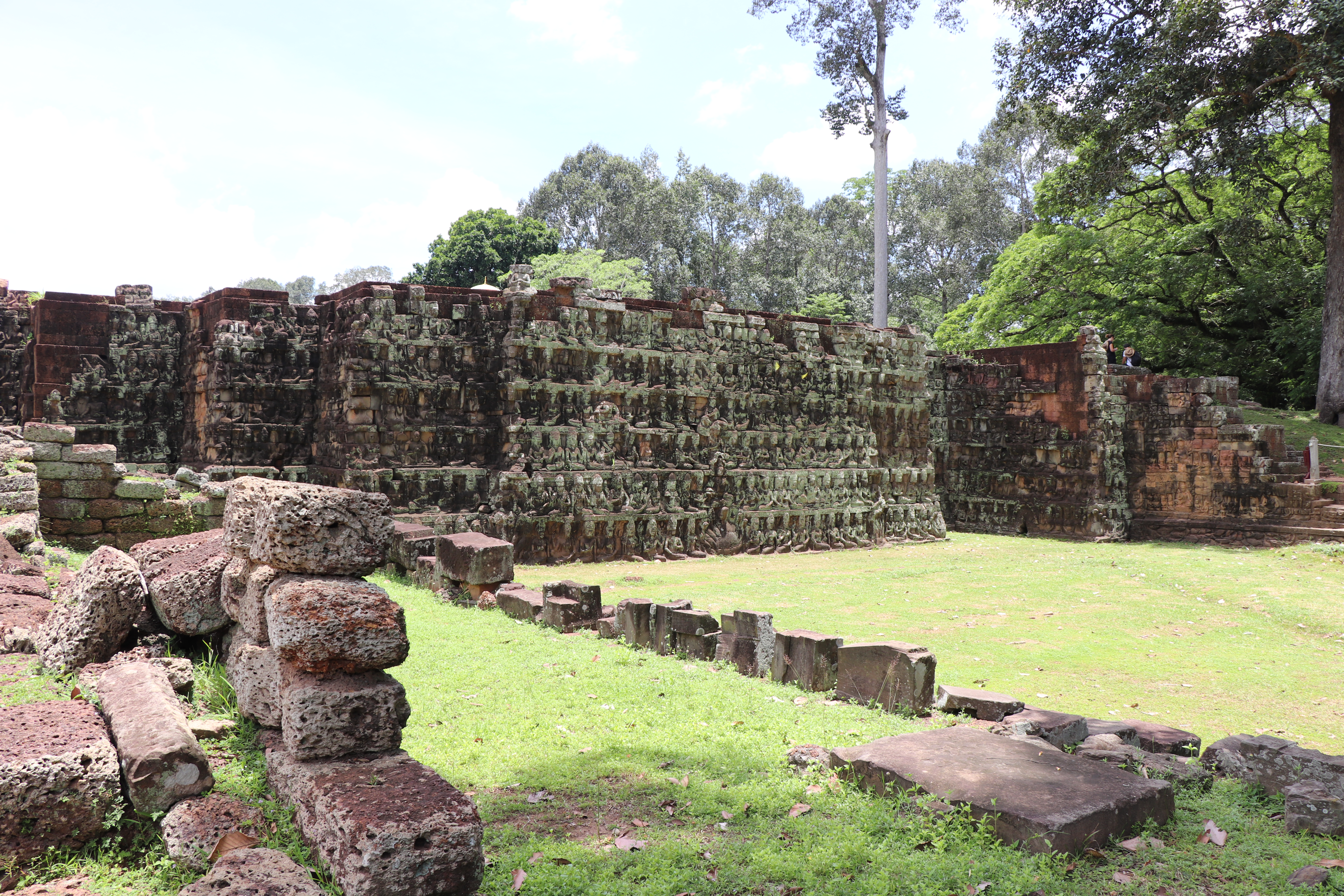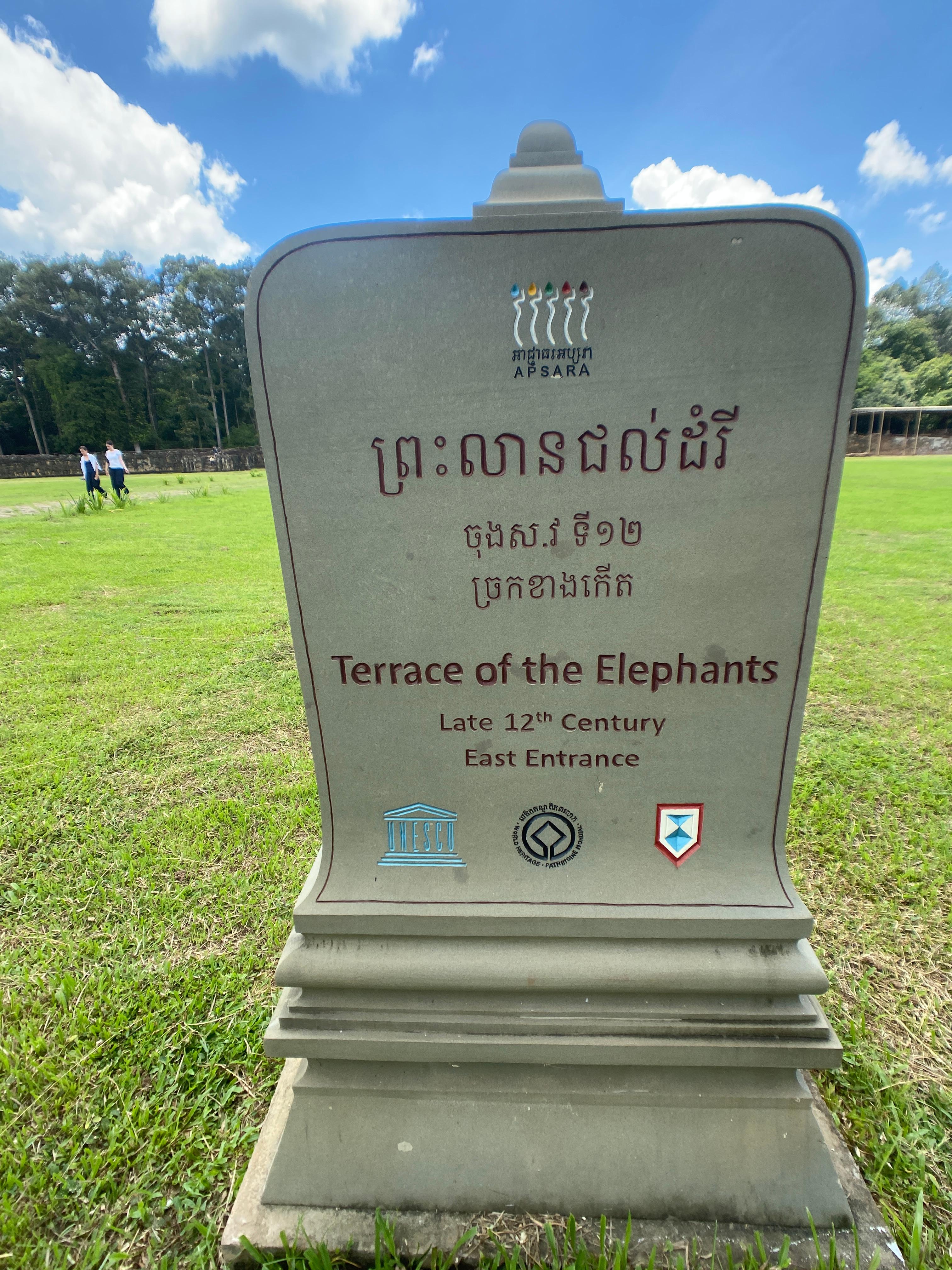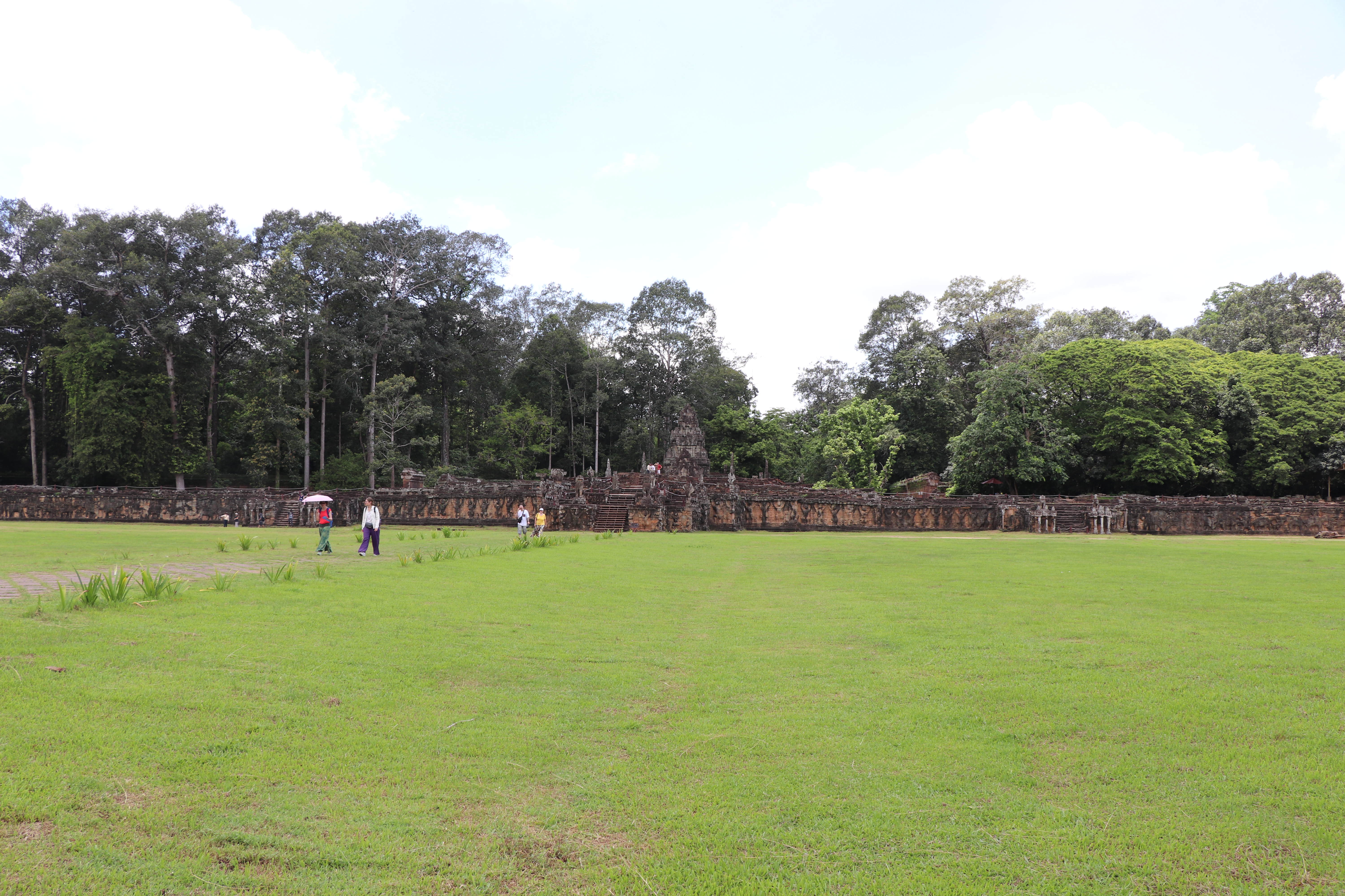 앙코르유적의 앙코르톰 (Angkor Thom)를 구경할 때 대개 마지막으로 들리는 곳이 이 지역이다. 바푸온 (Baphuon)과 연결되어 있는 곳이라 바이욘 (Bayon)에서 시작해서 걸어서 쭉 다 둘러볼 수가 있다. 코끼리 테라스 (Terrace of the Elephants) 라는 이름이 붙은 이유는 코끼리의 조각이 새겨져 있어서 그렇다고 하는데 잘 보이는 곳에 있지는 않다. 지금 보면 플래트폼이 있고 그냥 초원만 보인다. 이 초원에 있었던 구조물은 이미 다 없어지고 말았다.