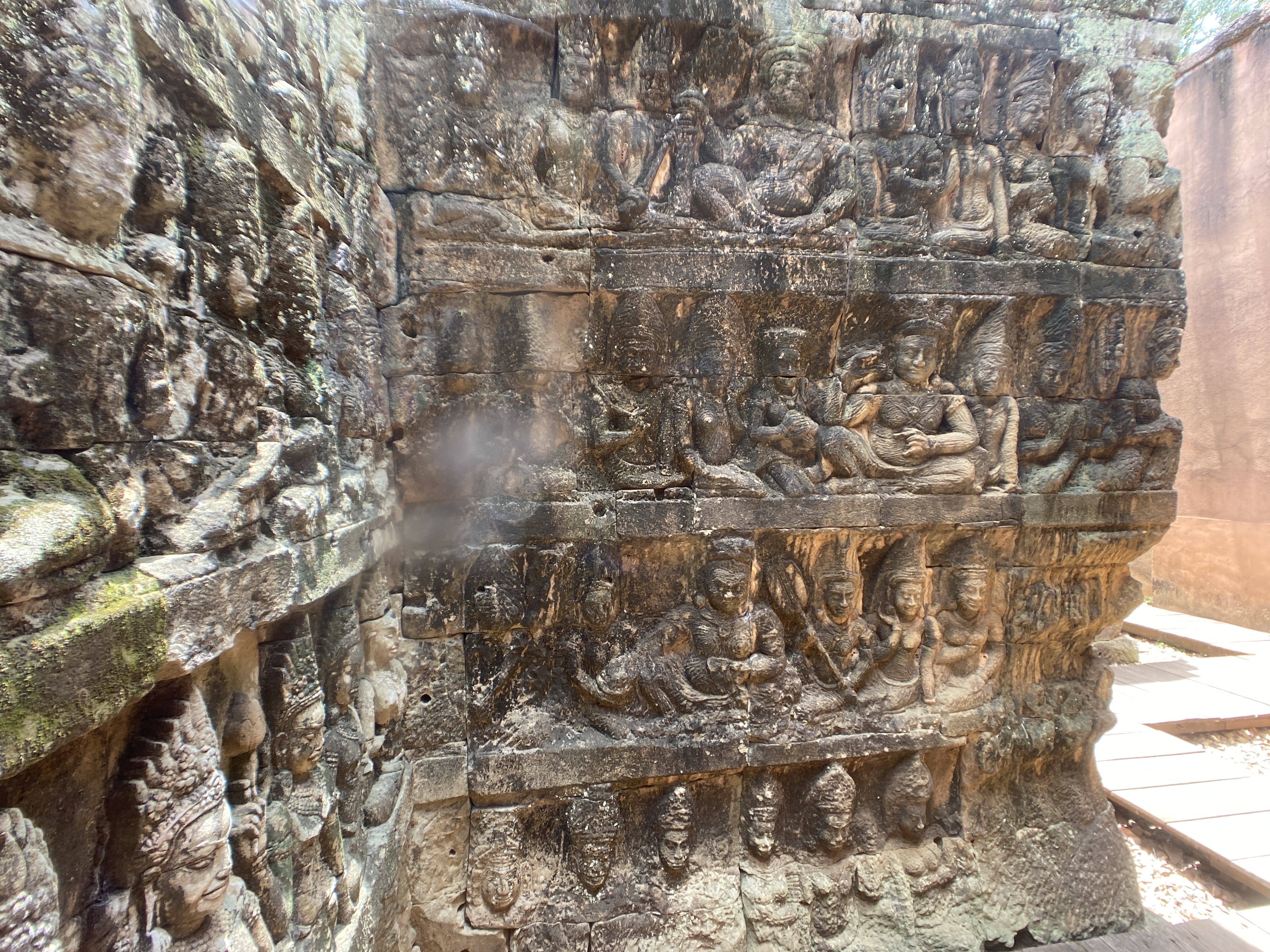 코끼리들의 테라스의 북쪽으로 레퍼 (Leper)왕의 테라스 (Terrace of the Leper King)가 있다. 레퍼 (문둥병/한센병)을 앓았다고 하는 크메르제국의 왕을 기념하는 곳인데 그 왕의 조각상이 있고 그 아래로 이렇게 생긴 미로 같은 곳에 벽면 조각이 복잡하게 얽혀있다.