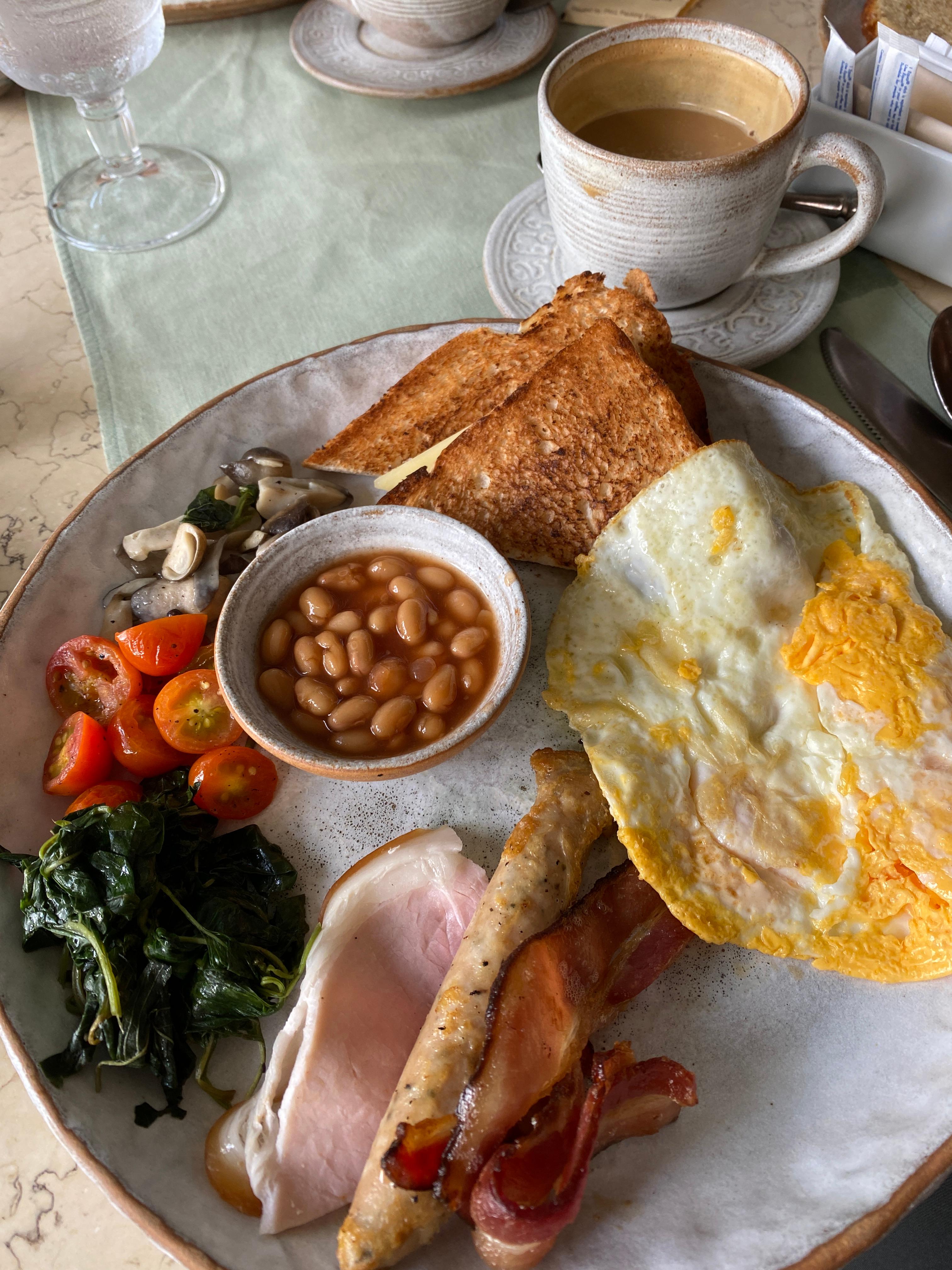 호텔에서 먹을 수 있는 조식은 버페 (buffet) 스타일일거라 예상했는데 메뉴를 보고 시켜서 먹는 형식이었다. 물론 숙박에 포함된 거라 메뉴에 있는 아무거나 다 시켜도 된다. 그리고 그래도 고급호텔이어서 꽤 예쁘게 세팅되어 나온다. 어느 정도 베트남/캄보디아의 향기가 약간 질려갈 시점이라서 아침으로 "잉글리쉬 브렉퍼스트 (English Breakfast)"를 시켰다. 예전 영국 런던에 갔을 때 고급호텔에서 먹었던 음식과 어느 정도 비슷하긴 하다.