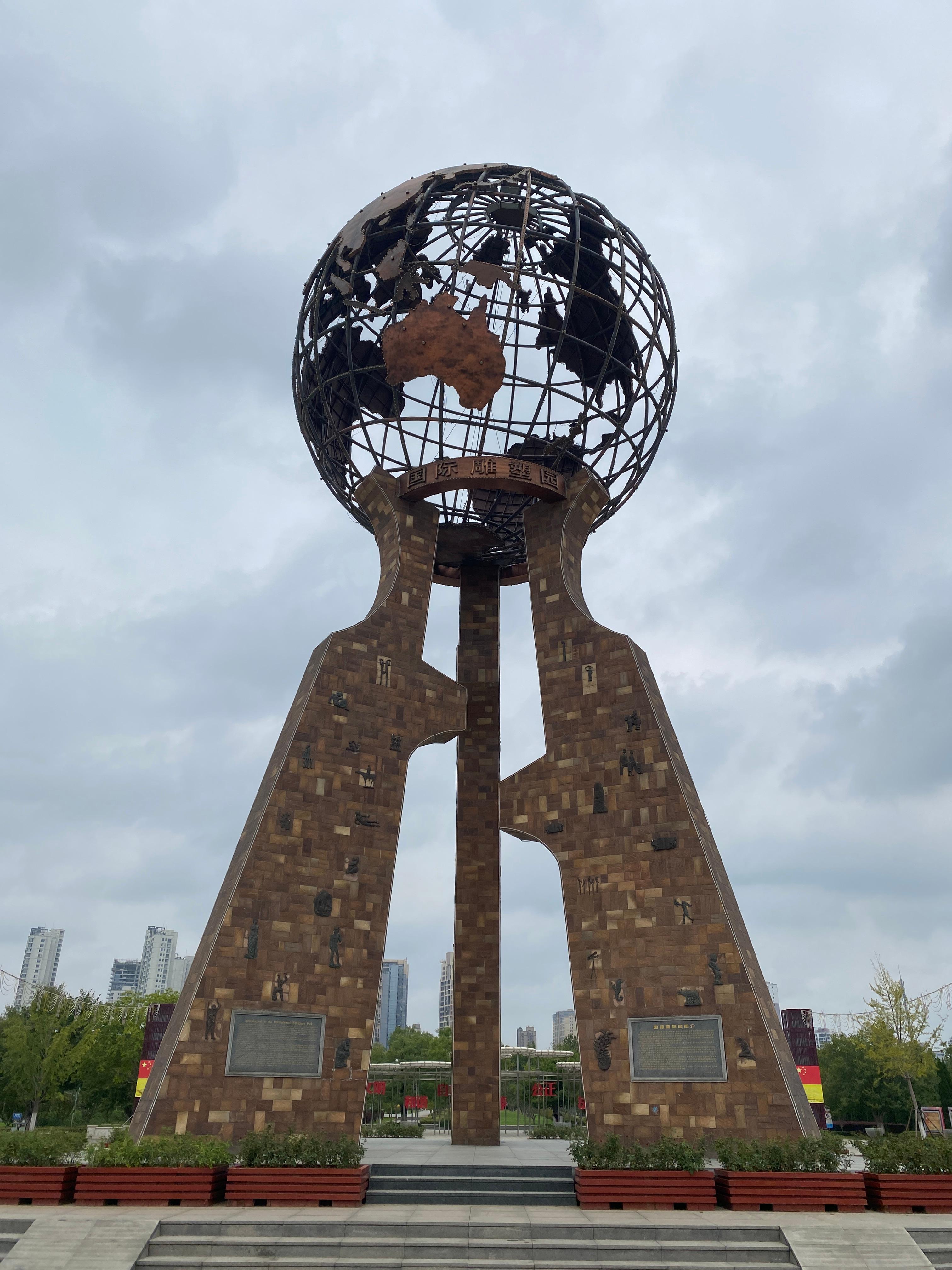 메인 입구가 아니라 북쪽에서 공원으로 들어왔는데 메인으로 보이는 입구쪽으로 가면 가장 눈의 띄는 작품이 보인다 지구본을 높이 세워놓은 작품이다. 이것도 어디선가 본 적이 있는 듯 한데 어디인지는 정확히 기억나지 않았다.
