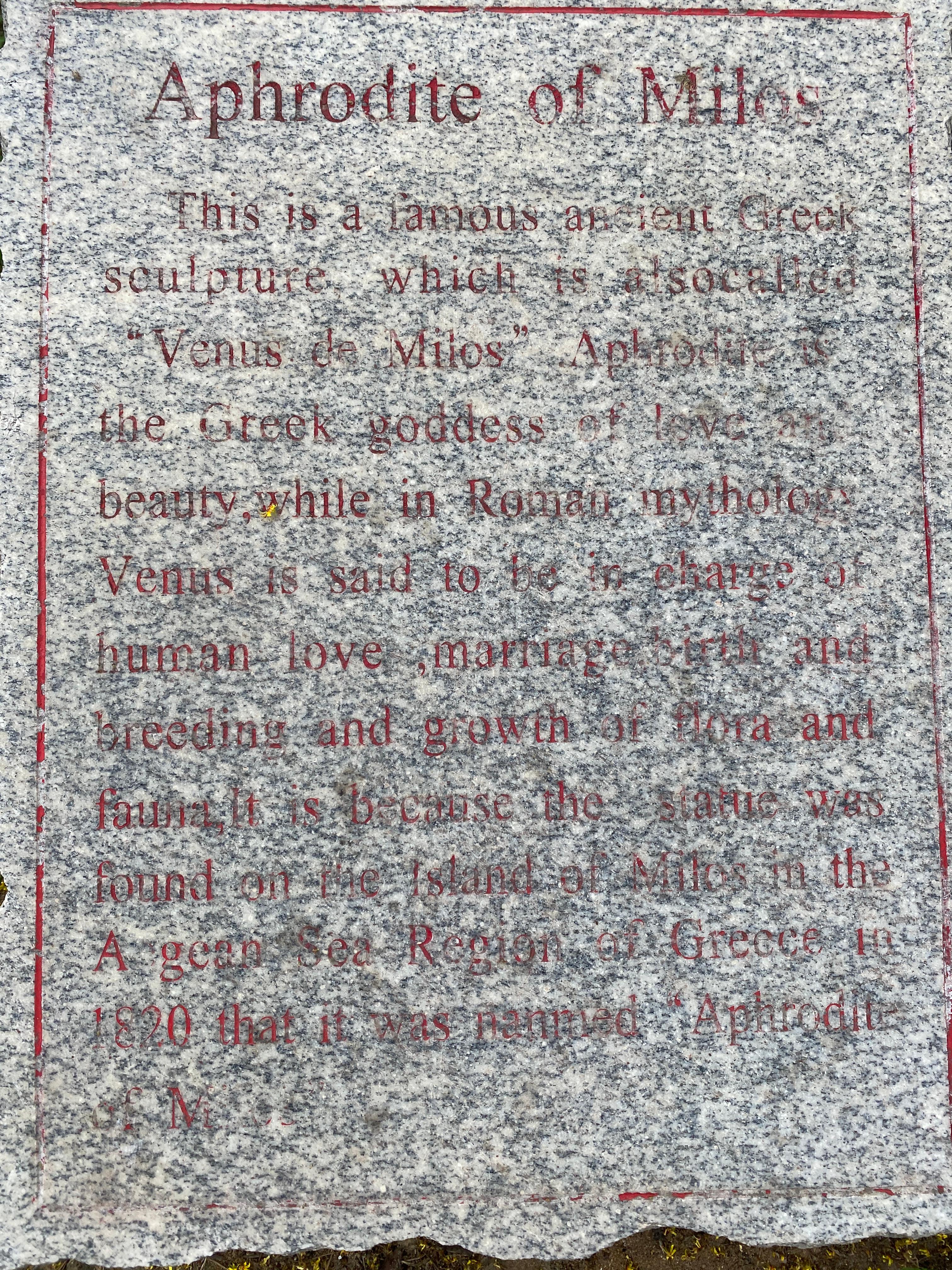 밀로 (Milo)의 비너스/아프로디테 (Venus/Aphrodite)는 당연히 프랑스 파리의 루브르 (Louvre) 박물관에서 봤던게 단번에 생각이 났다. 이건 확실하진 않지만 모양이 조금 다르다. 당연히 주물이 아니라서 원본 조각이랑 다를 수 밖에 없다.