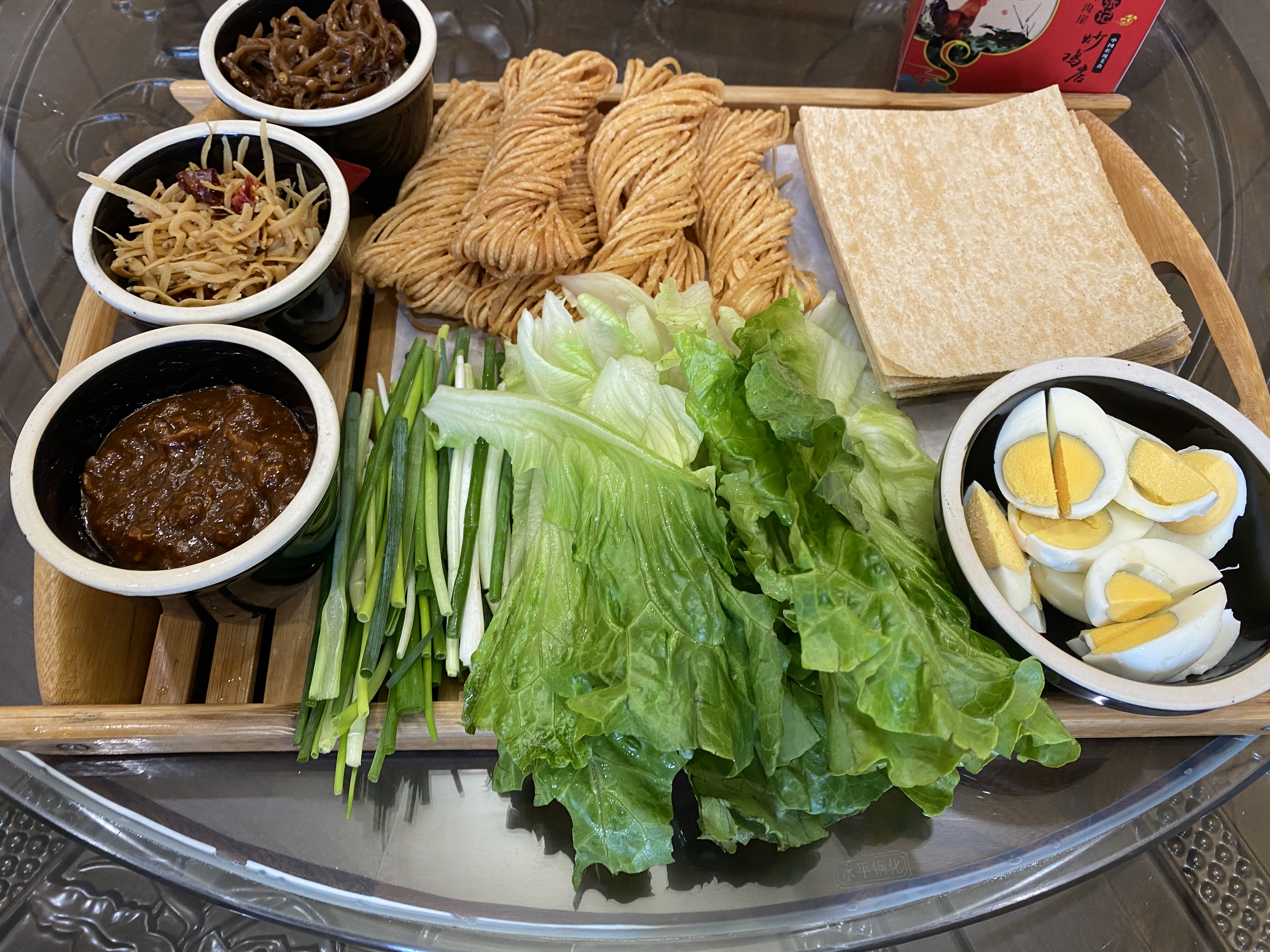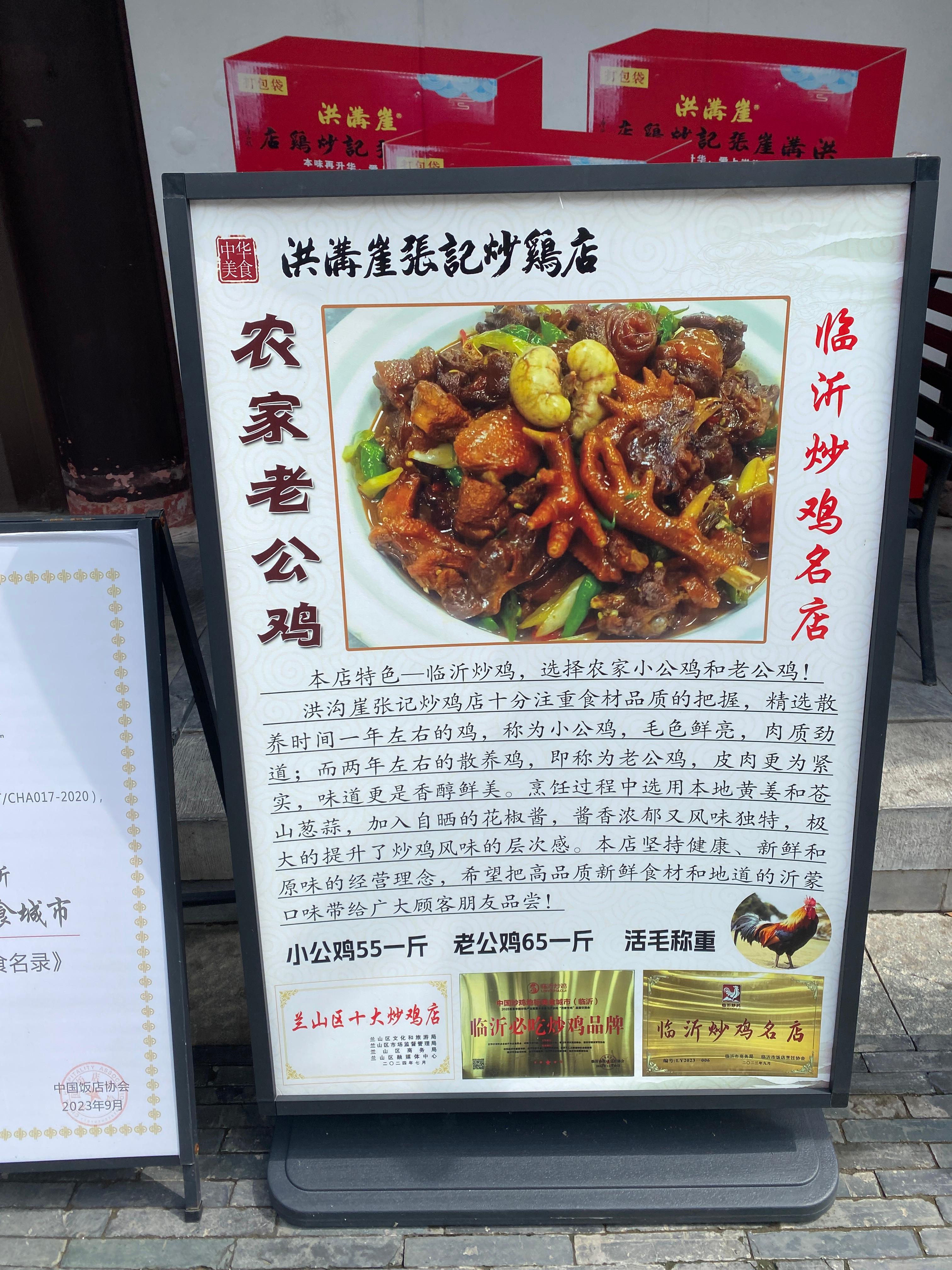이날은 린이의 관광지를 둘러보는 날이었기 때문에 여기저기를 본 후 점심은 린이지방의 대표요리라고 꼽히는 찜닭 비슷한 요리를 먹으러 갔다. 호텔에서 똑같은 요리를 봤기 때문에 망설일 일은 없었다. 꽤 유명한 요리라고 한다. 맛은 약간 "매워야" 하는데 매운맛에 좀 익숙한 나에게는 그닥 맵지는 않아서 오히려 더 좋았다. 이 식당에서 튀긴 국수를 쌈싸먹는 요리도 같이 나왔는데 이 요리도 연회에서 먹어본 요리여서 친숙했다. 바삭한 면이 촉감이 좋고 소스 중에 하나는 거의 쌈장과 비슷한 맛이어서 거부감이 전혀 없다.