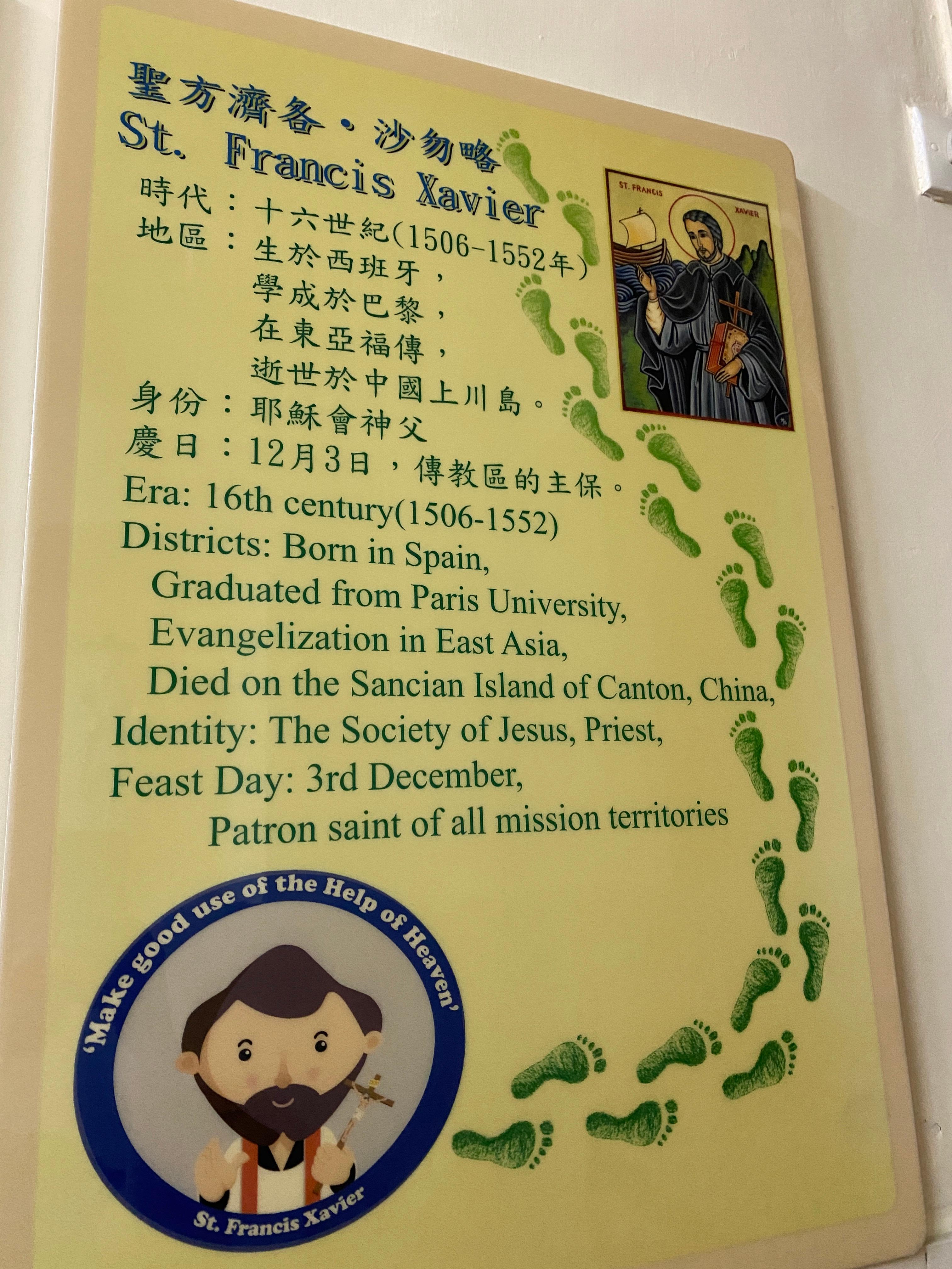 좀 더 걷다보면 카톨릭 성당이 하나 나온다. 이름이 성 프란시스코 사비에르 교회 (Chapel of St. Francis Xavier)라고 한다. 마카오 반도에 있는 성안토니오 성당과 함께 한국 최초의 천주교 사제였던 김대건 안드레아 신부와 연관이 깊다고 한다. 김대건 신부로 보이는 동상이 전시되어 있다.