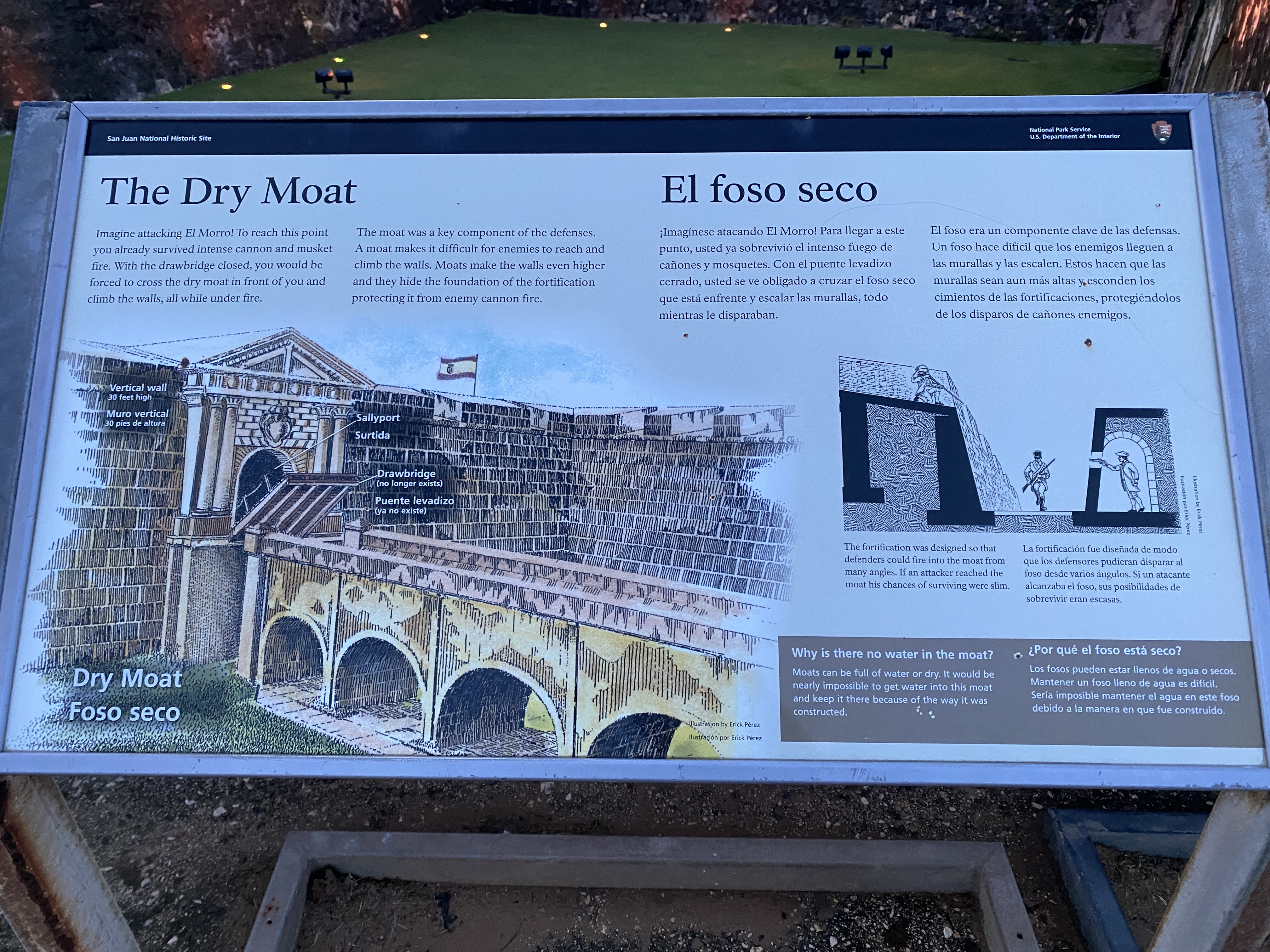 산책로가 막혀 있음에도 별로 개의치 않았던게 쓱 보니 넓은 잔디밭이 있는 넓은 공원이 있었기 때문이다. 올드산후안을 대표하는 곳인 산 펠리페 델 모로 성 (Castillo San Felipe del Morro)으로 가는 길이다. 사람들이 제법 모여있다.