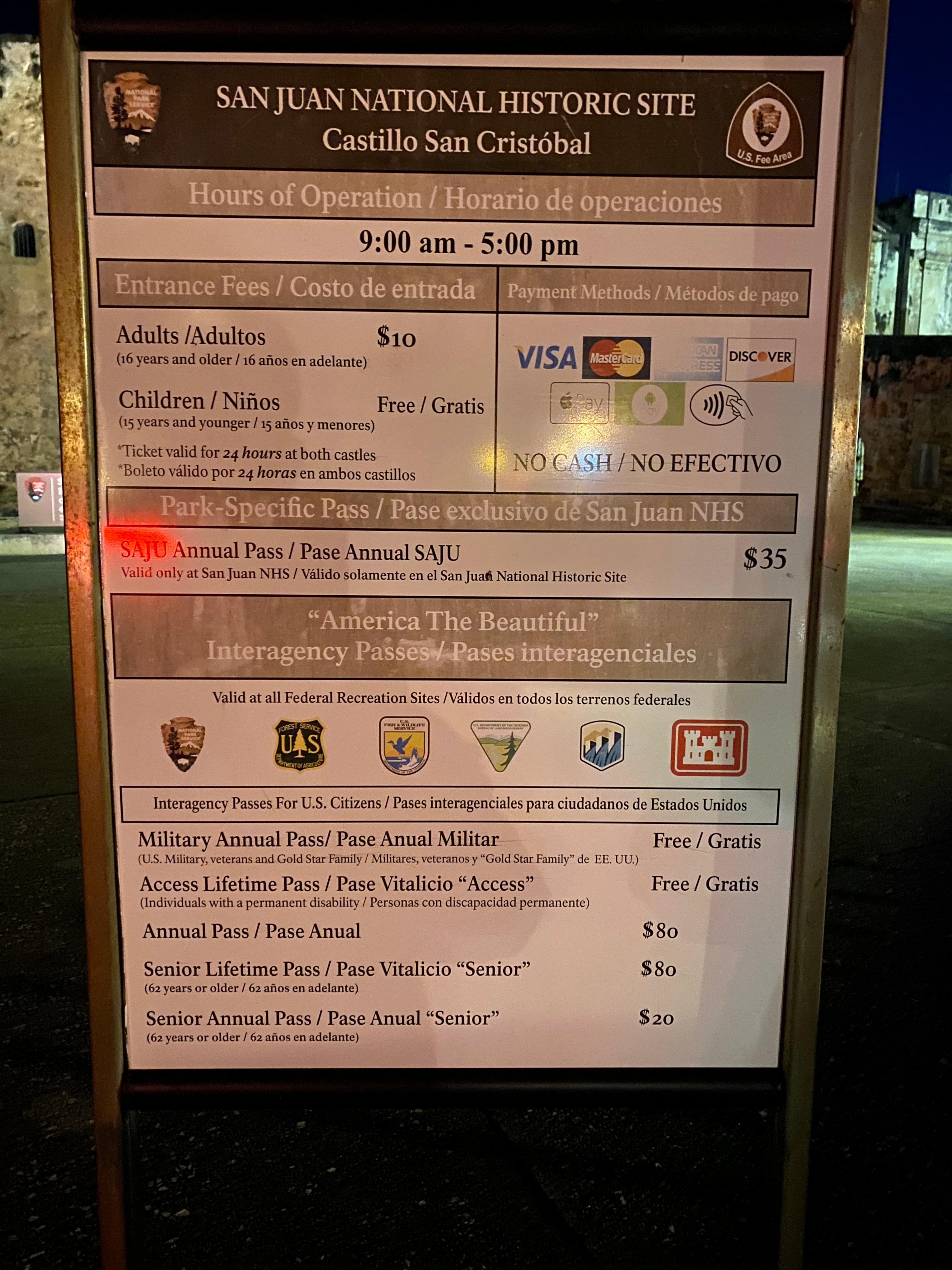 여기서 또 하나의 큰 성/요새인 산크리스토발 (San Cristobal)이 있는데 당연히 밤이라 문을 닫아놨다.