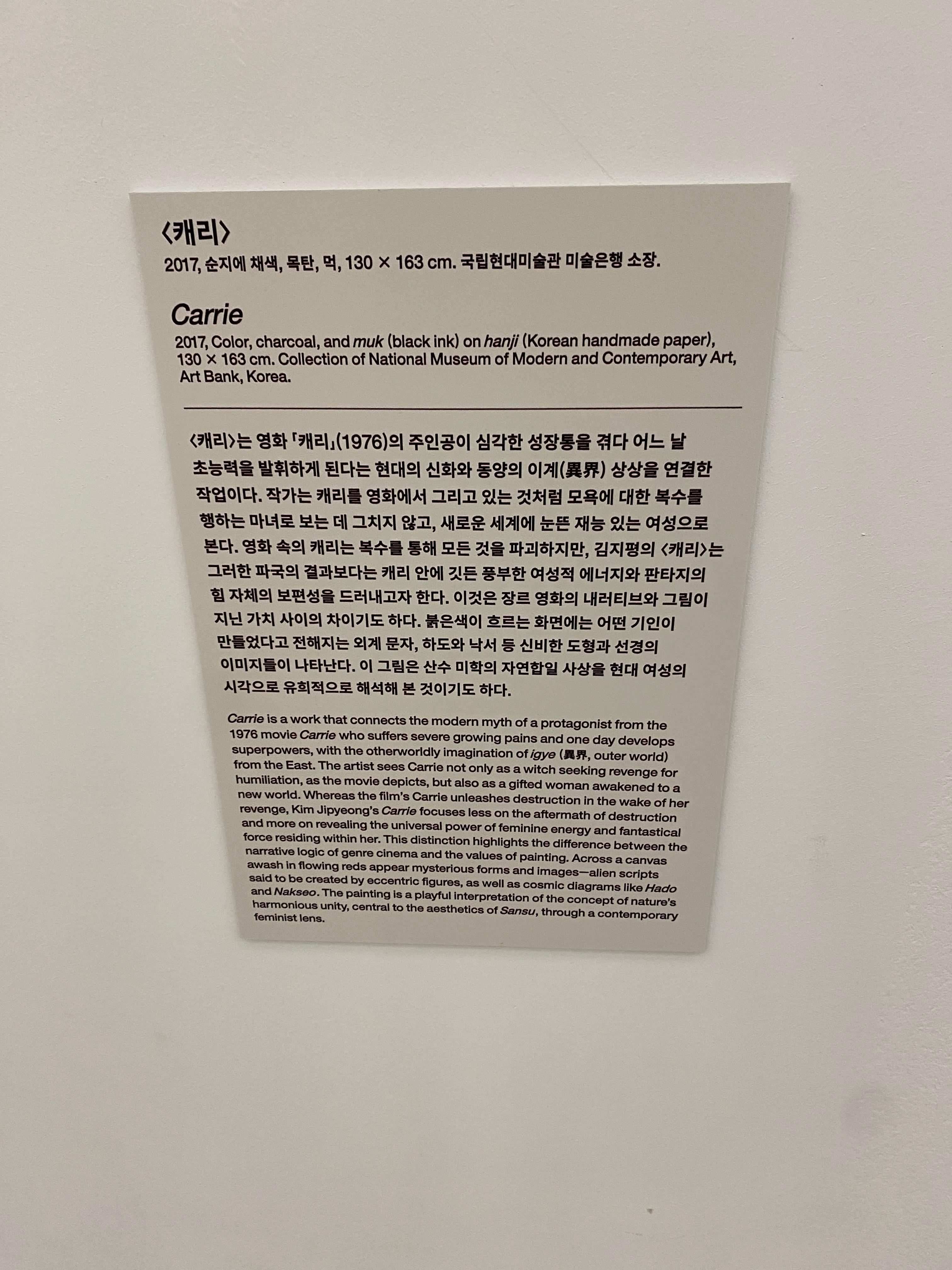 그래서 보면 이번에 처음 가봤지만 국립현대미술관은 영어로 National Museum of Modern and Contemporary Art인데 이름에 모던아트를 끼워놓았지만 정작 가보니 contemporary art중심이다. 그리고 permanent collection이 좀 부족하지 않나 하는 느낌이 들었다. modern art는 찾아보기가 힘들었다.