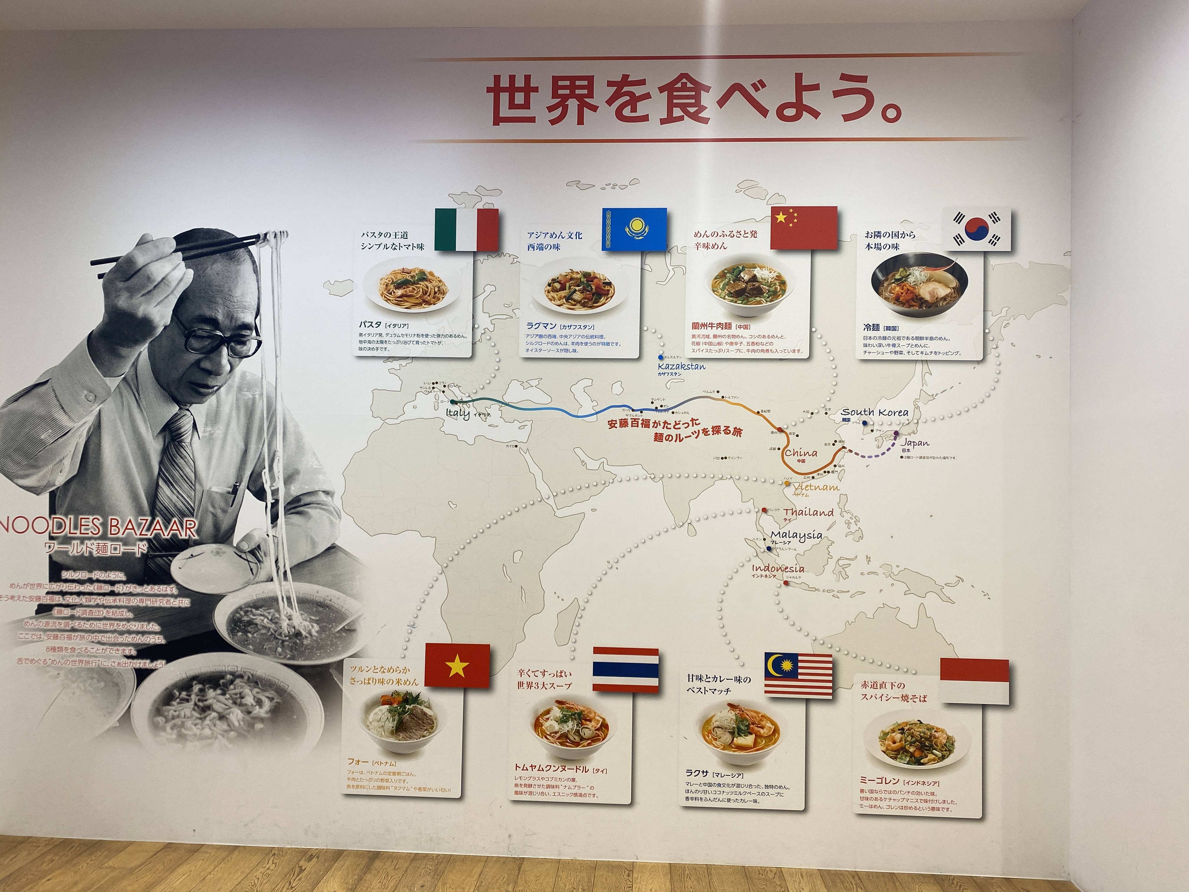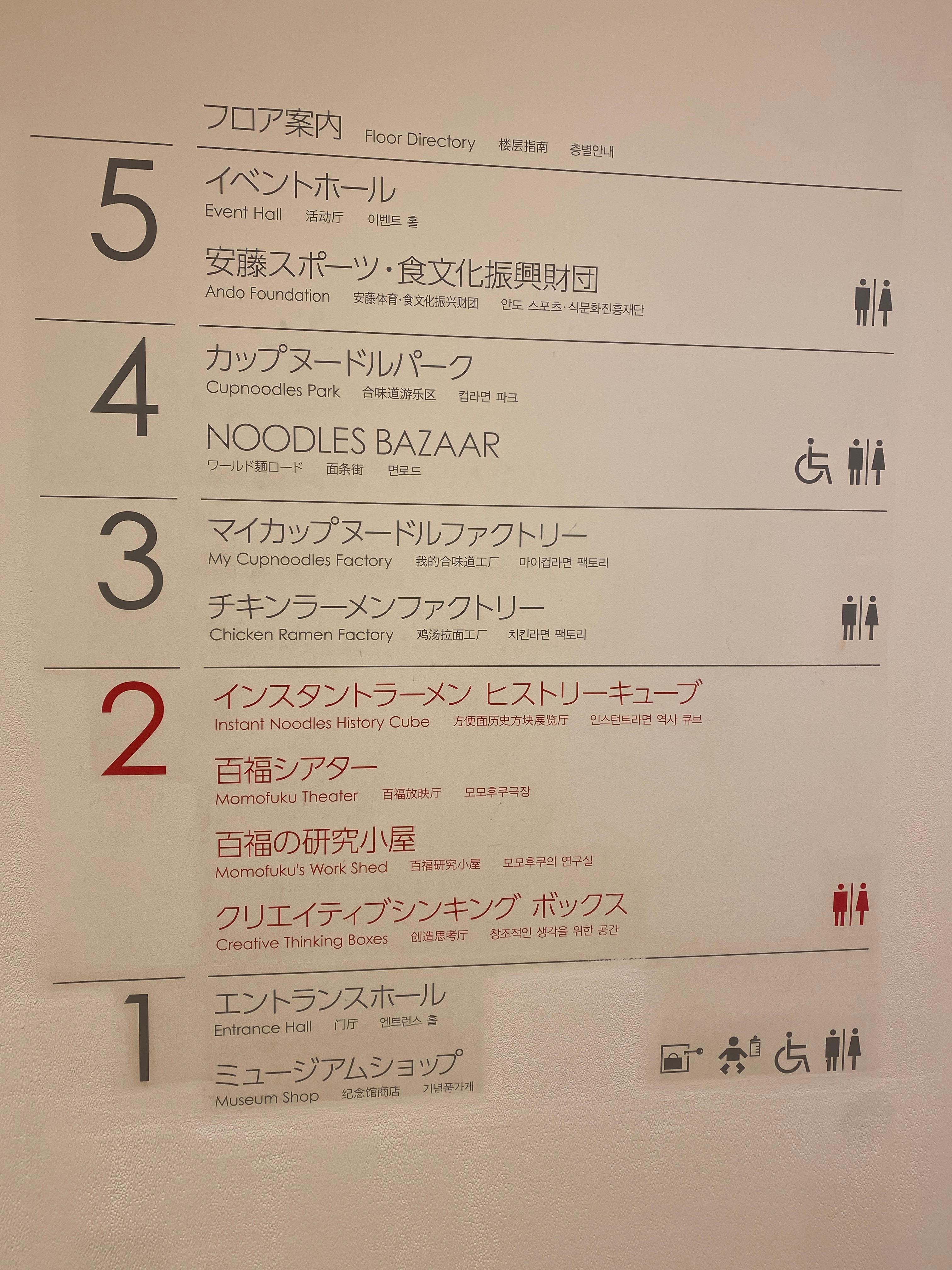 2층에 들어서면 메인 전시장이 눈에 들어오는데 굉장히 많은 라면을 전시해두었다. 안도 모모후쿠가 최초로 발명했다는 1958년에 나온 치킨라멘 (Chikin Ramen)을 필두로 정말로 많은 라면을 전시해두고 있다. 여기저기에 다른 나라의 라면들도 전시해 두고 있는데 당연히 한국라면도 많이 보인다.