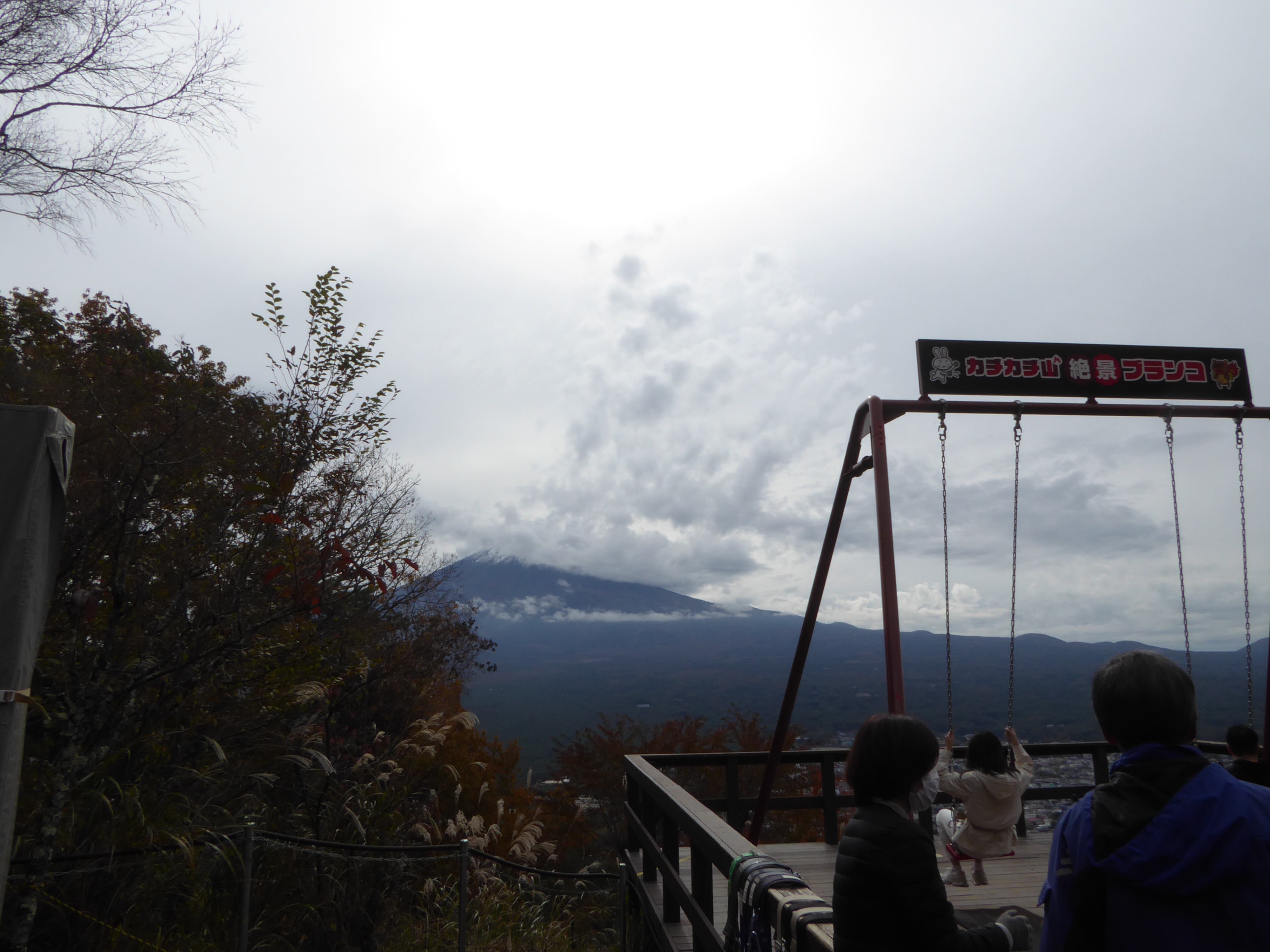 걸어서 조금 더 올라갈 수도 있는데 제일 먼제 눈에 들어온 것은 그네였다. 올라가보니 따로 요금을 받는 곳인데 후지산을 뒷배경으로 그네를 타고 있는 모습을 남길 수 있는 곳이다.