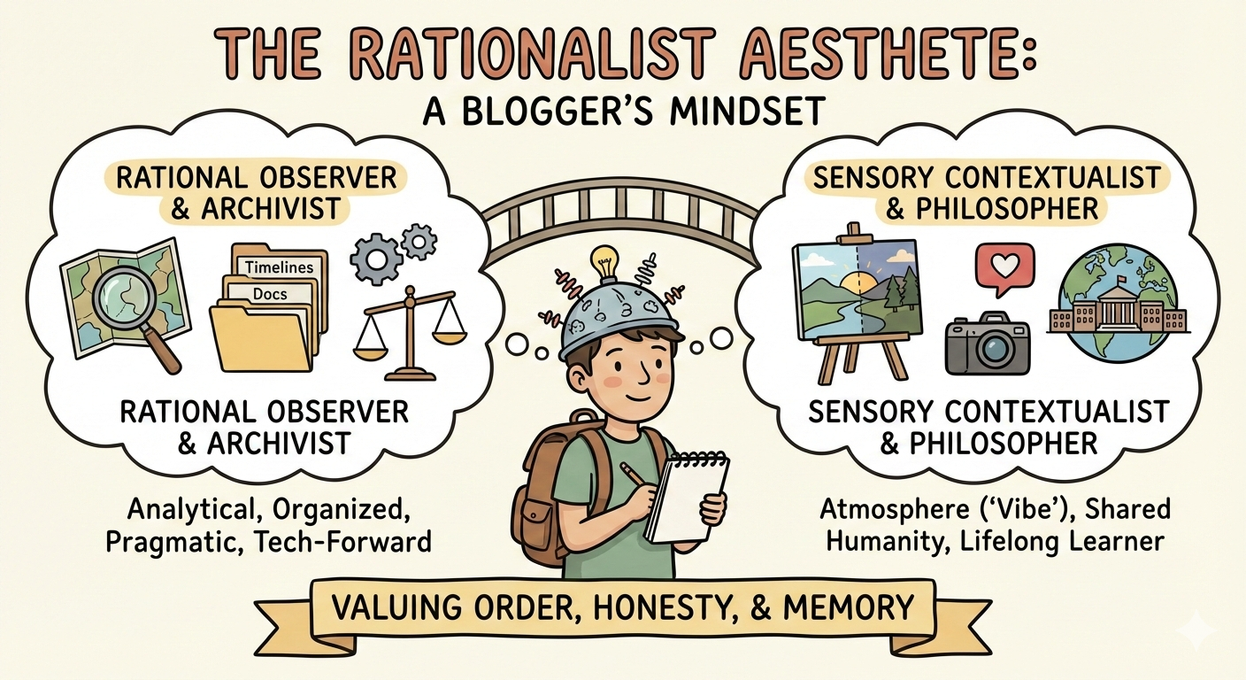 이 블로그의 필자는 차가운 이성으로 세상을 분석하고 정리하지만, 그 안에서 발견한 미묘한 색채와 예술적 가치에는 누구보다 따뜻하게 반응하는 **'이성적 탐미주의자'**라고 할 수 있습니다. 질서와 루틴을 사랑하면서도, 낯선 풍경이 주는 지적·감각적 자극을 즐기는 입체적인 인물로 보입니다.